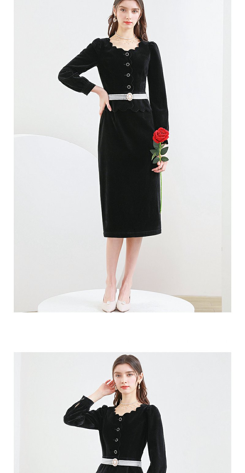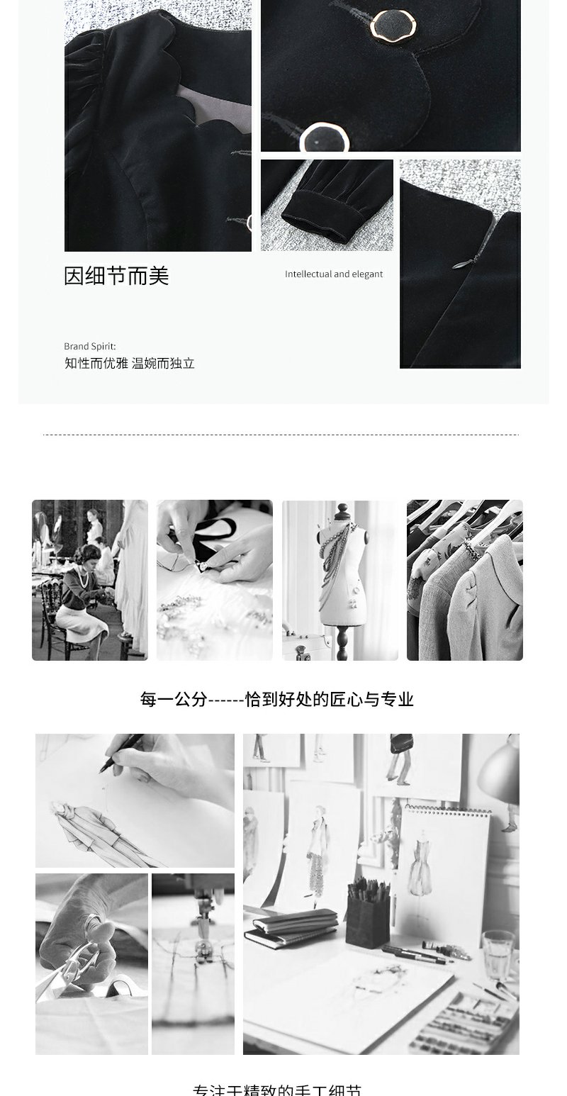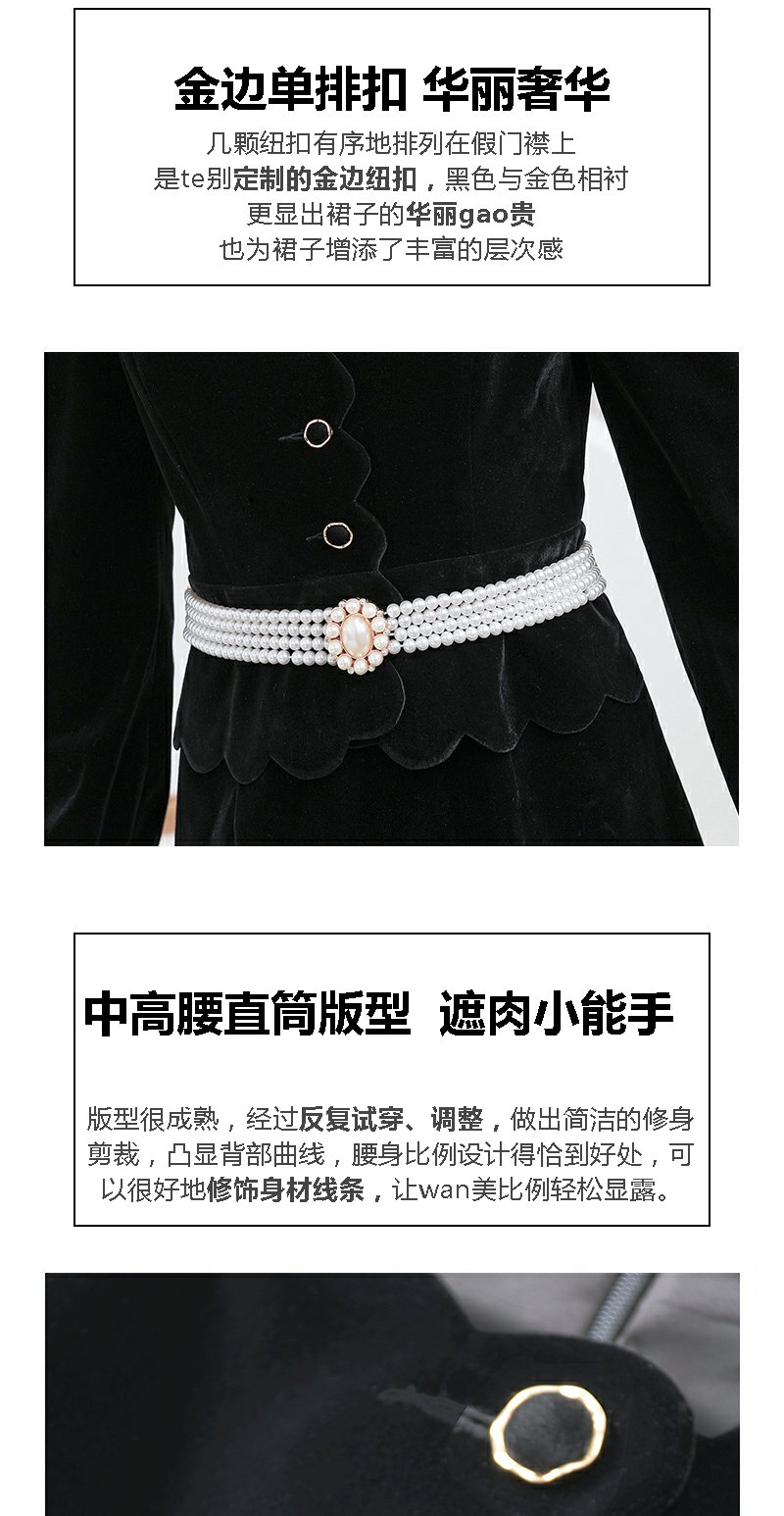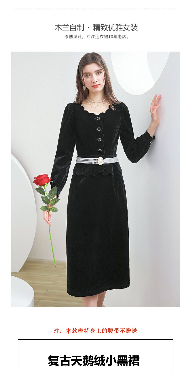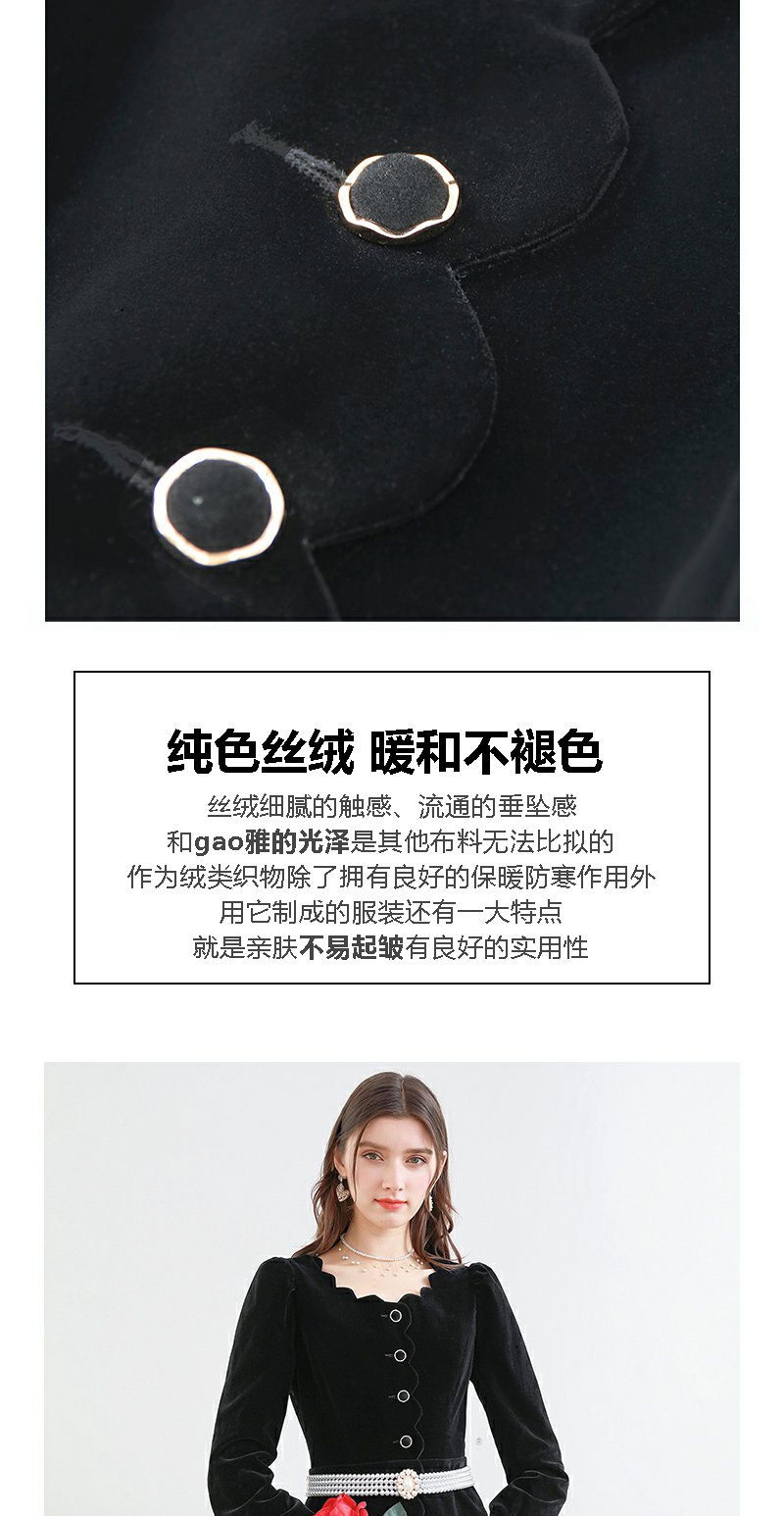 未风黑色丝绒连衣裙女秋季2025春季新款女装气质名媛女装显瘦裙子