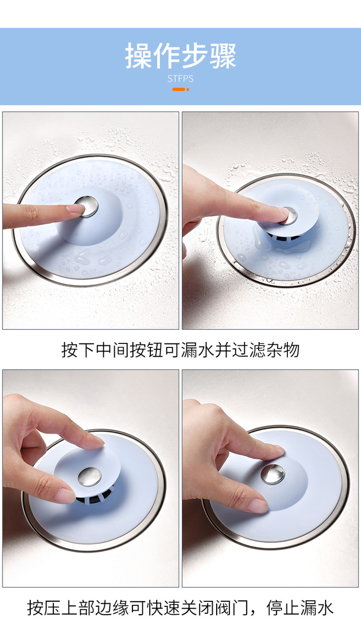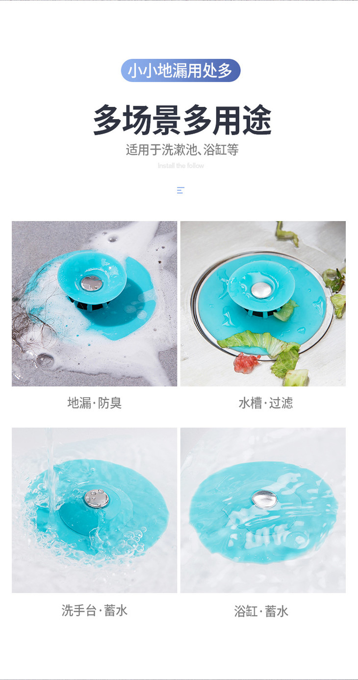 12个超值!【买一次用三年!按压式地漏】适用大部分下水口,告别堵塞!厨房水槽过滤,下水道防臭盖,防止头发异味堵住,卫生间洗脸盆水池漏塞子