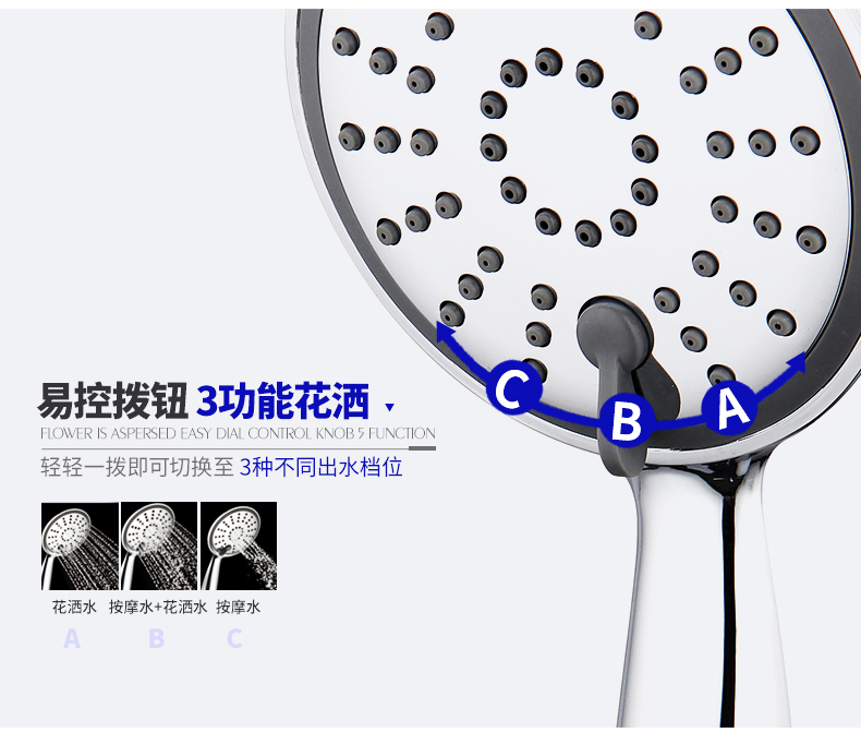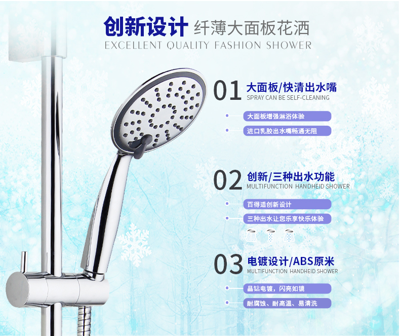 百得适三功能手持花洒黑2TF013401CBL