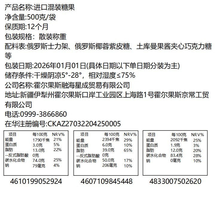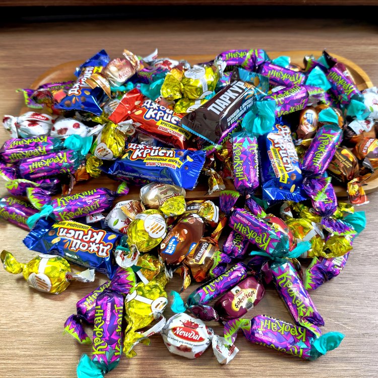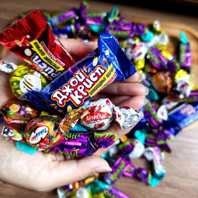 混合糖果:俄罗斯士力架、俄罗斯椰蓉紫皮糖、土库曼果酱夹心巧克力糖等