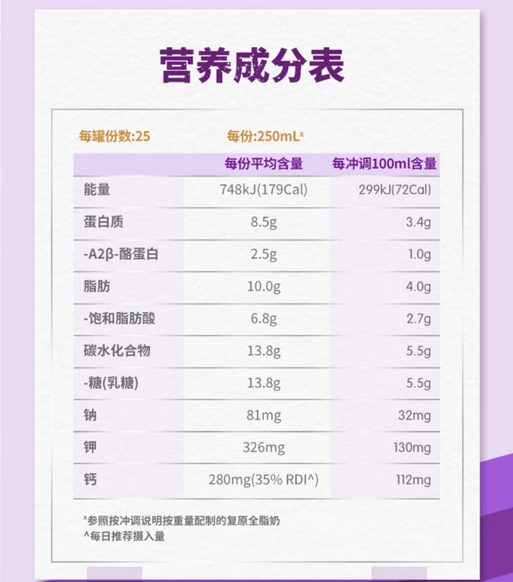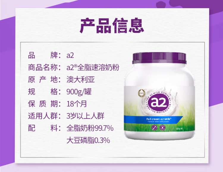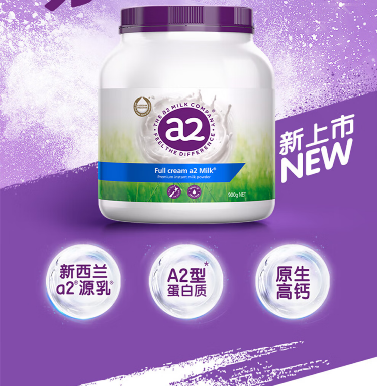 【跨境】a2紫吨吨紫胖子成人全脂速溶奶粉 900g/罐