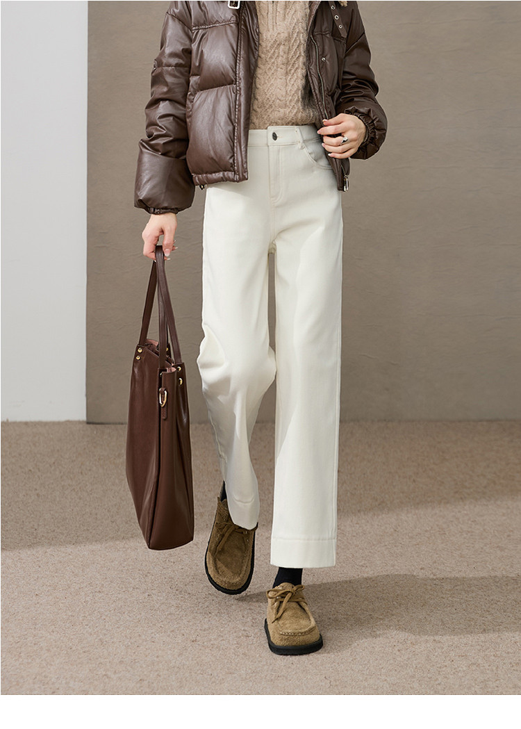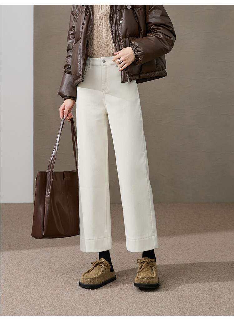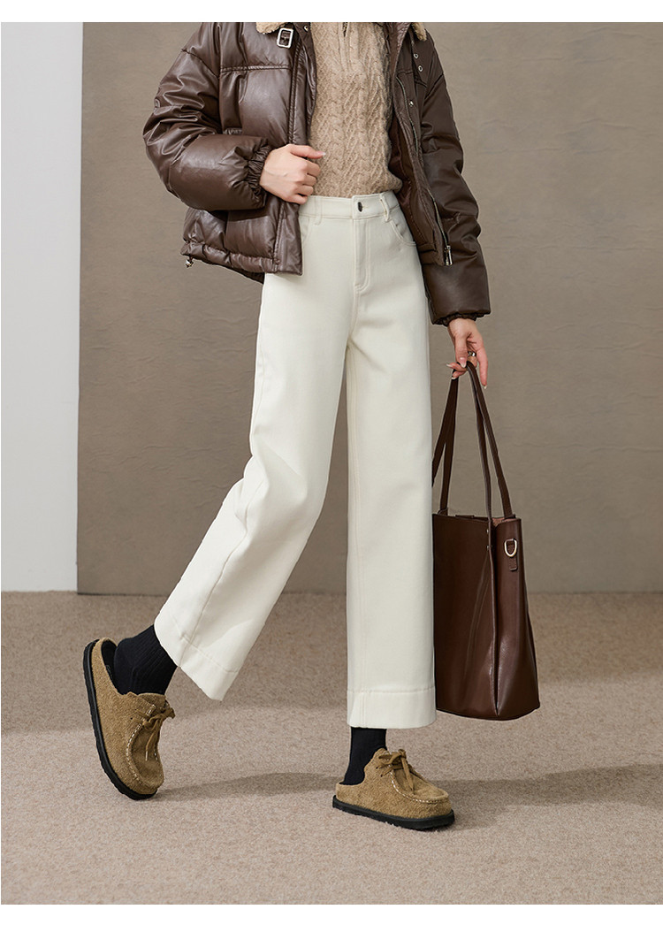 【加绒-九分-宽直筒】逸阳冬新品加绒加厚高弹小个子窄版阔腿牛仔裤4911V