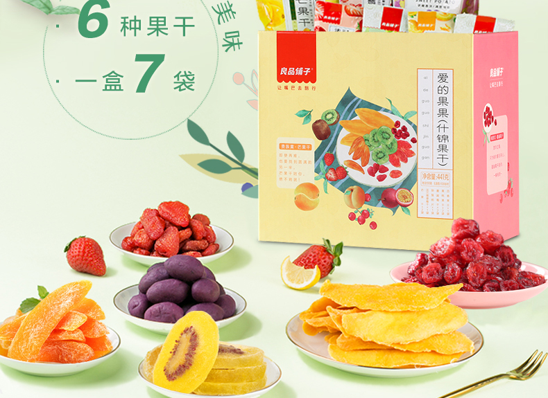 良品铺子 休闲零食水果干大礼包7袋装 蜜饯果干芒果干草莓干猕猴桃干 什锦果干年货礼盒 441g/451g(随机发货)