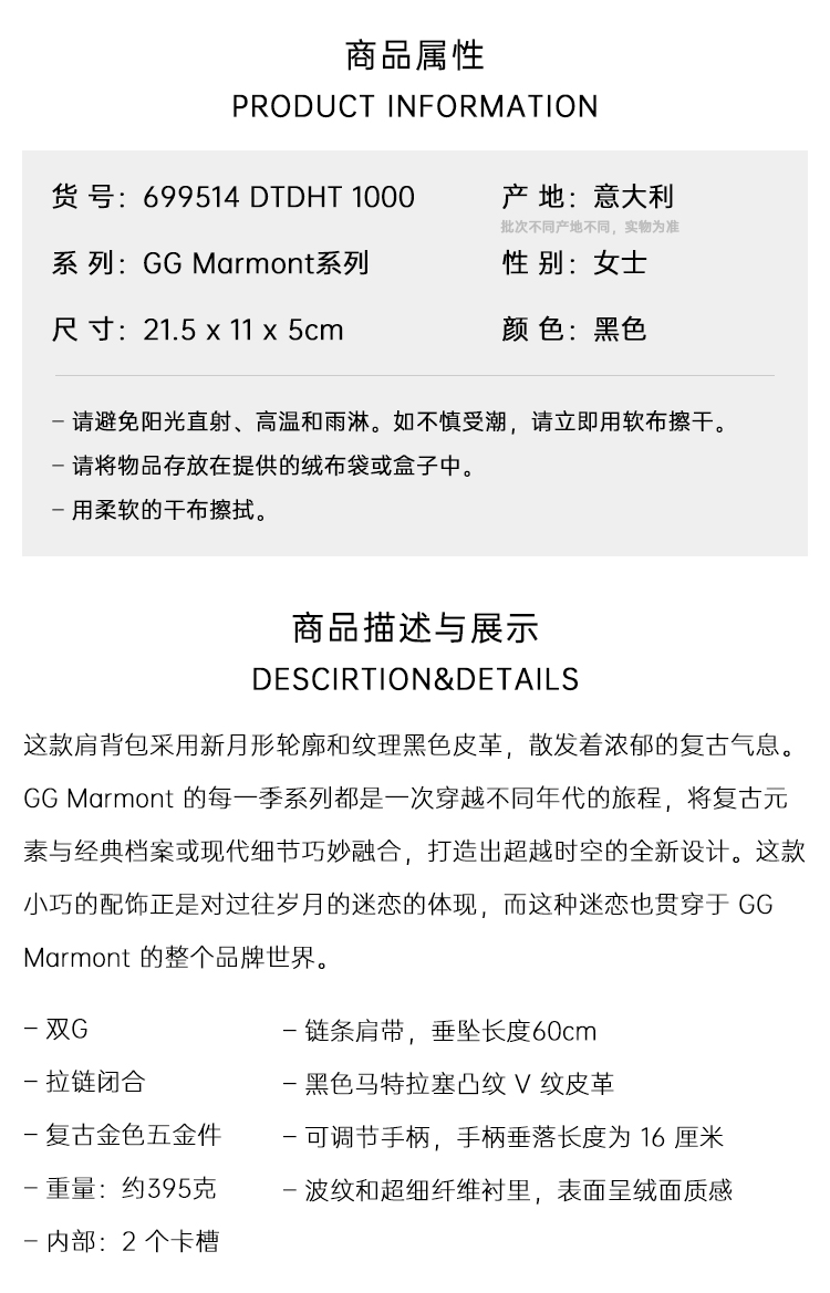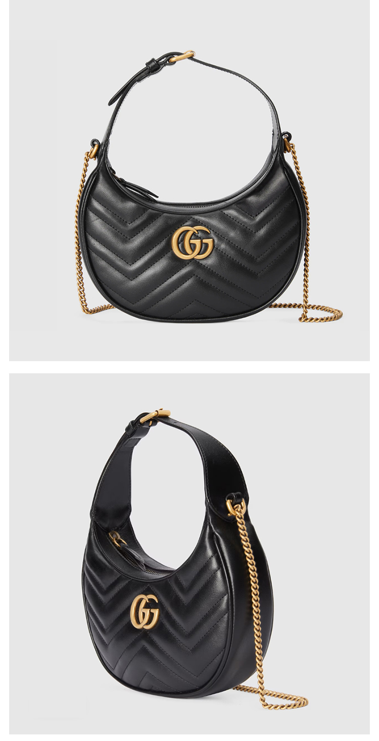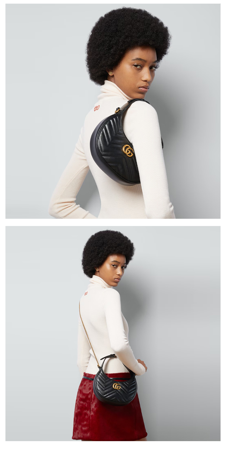 【一】GUCCI 古驰 女士 GG Marmont系列 半月造型迷你手提包 黑色 699514 DTDHT 1000