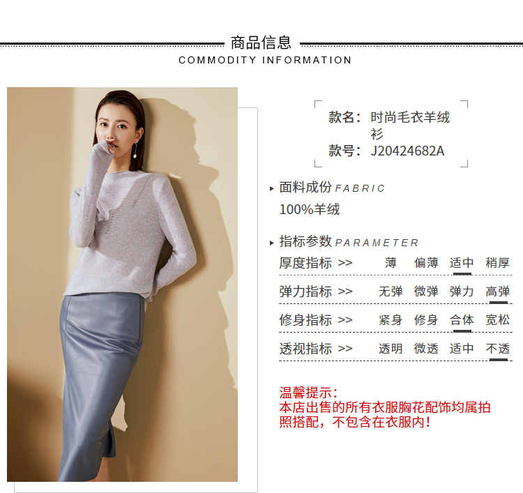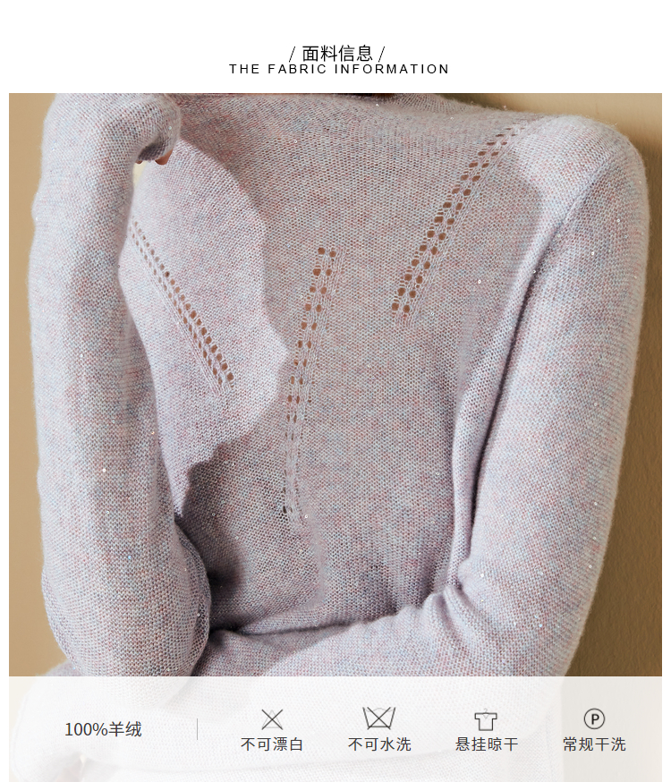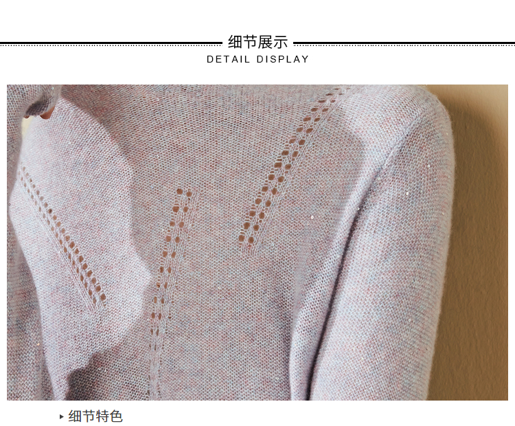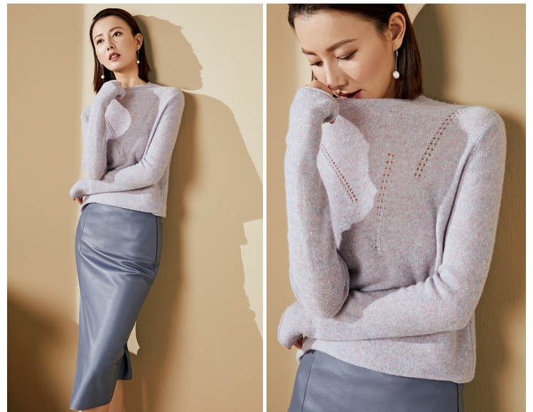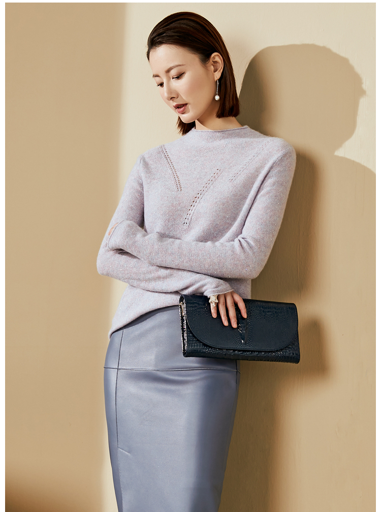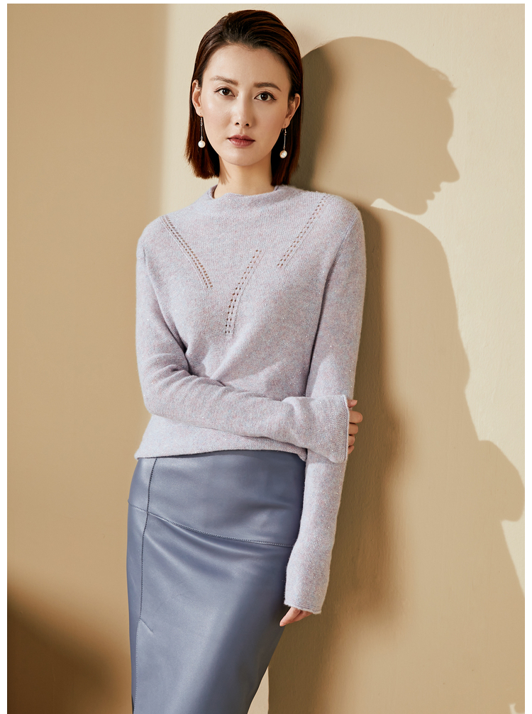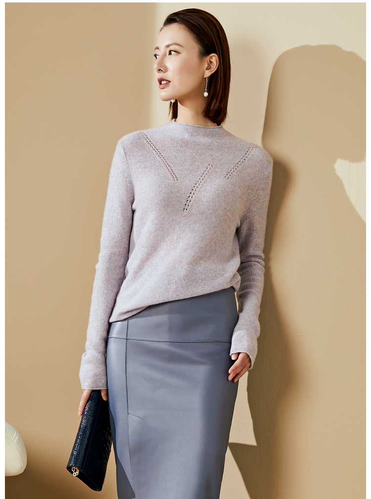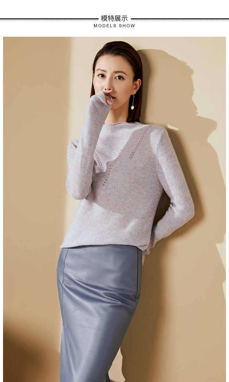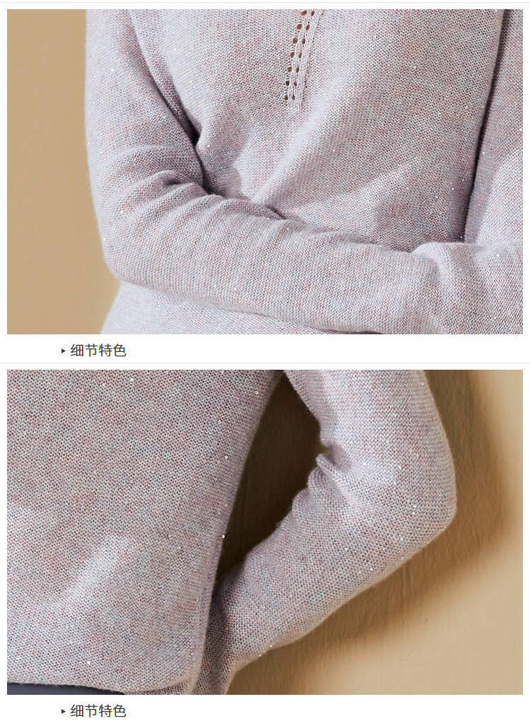 “烟雾紫”闪闪羊绒衫J20424682A 颈袖添香品牌秋冬OL女中长款羊绒毛衣长袖冬季套头