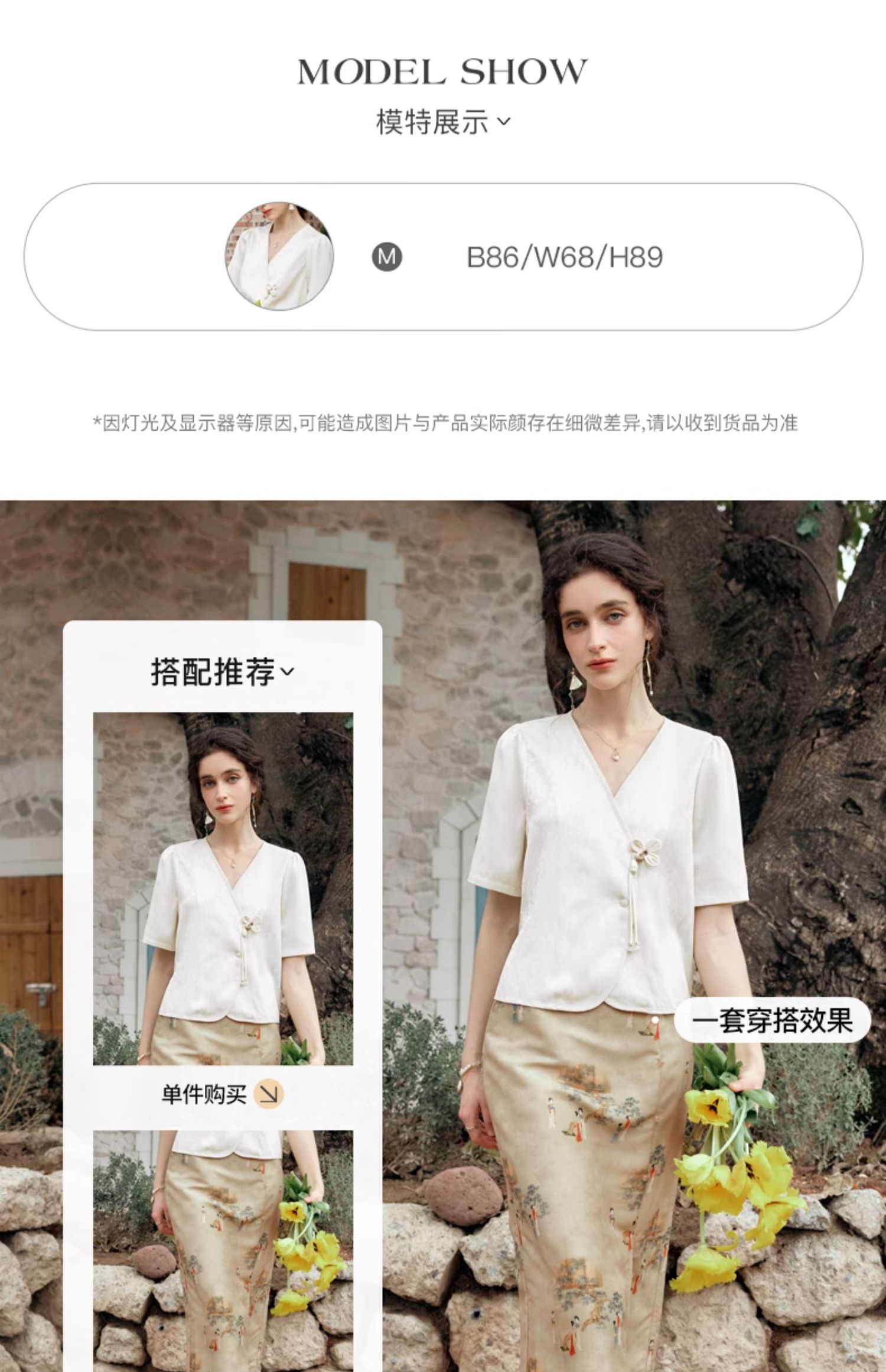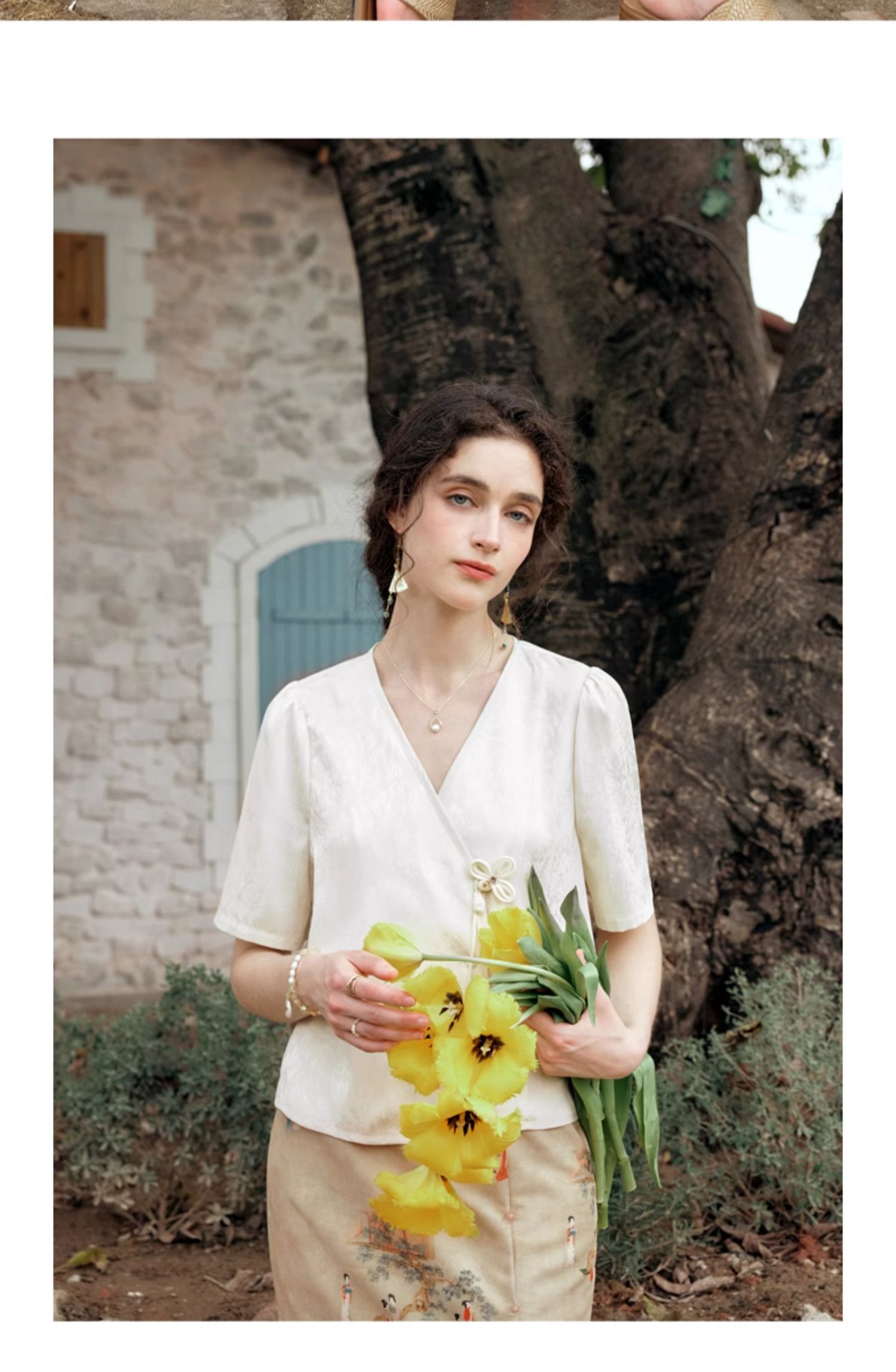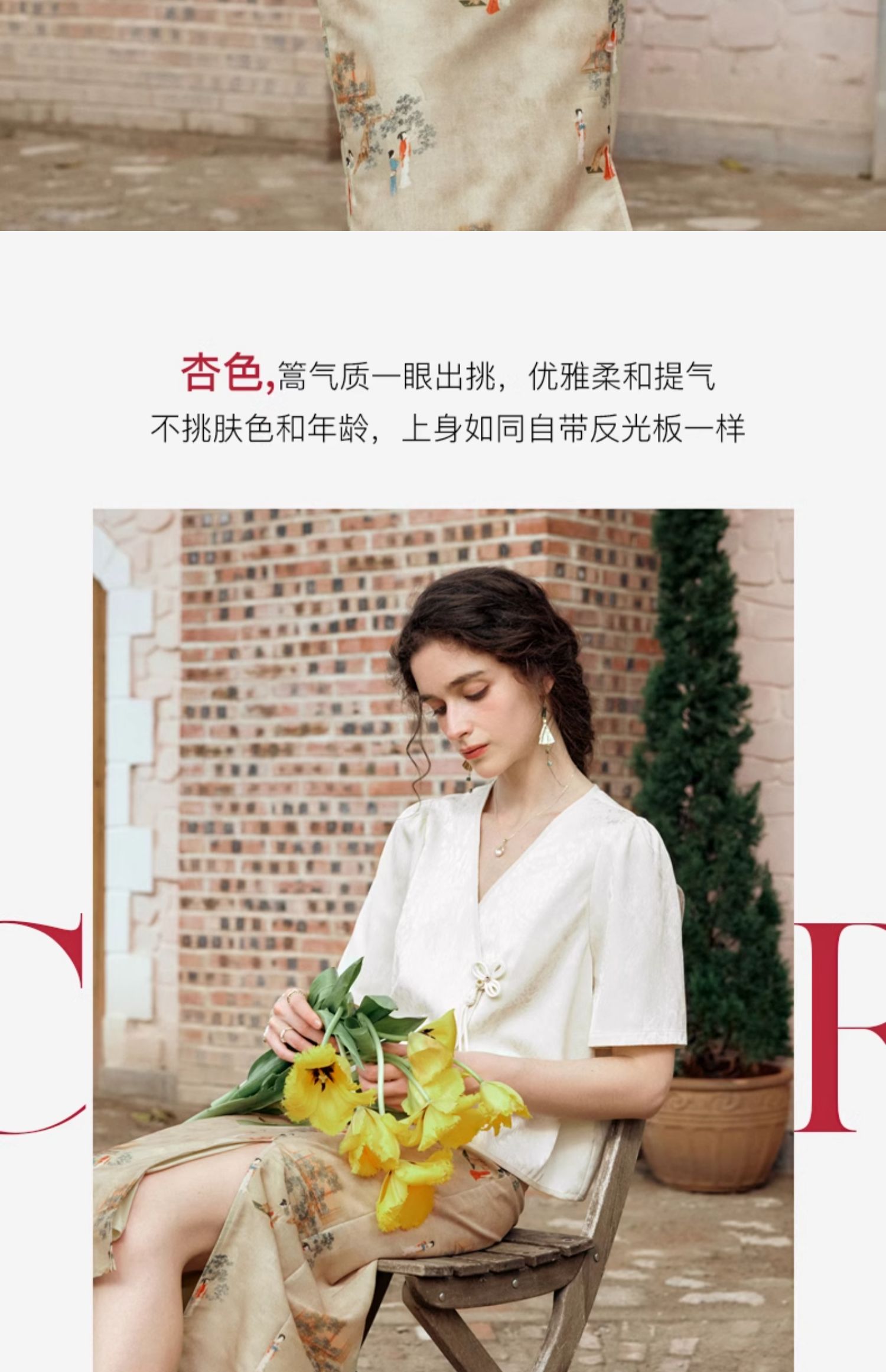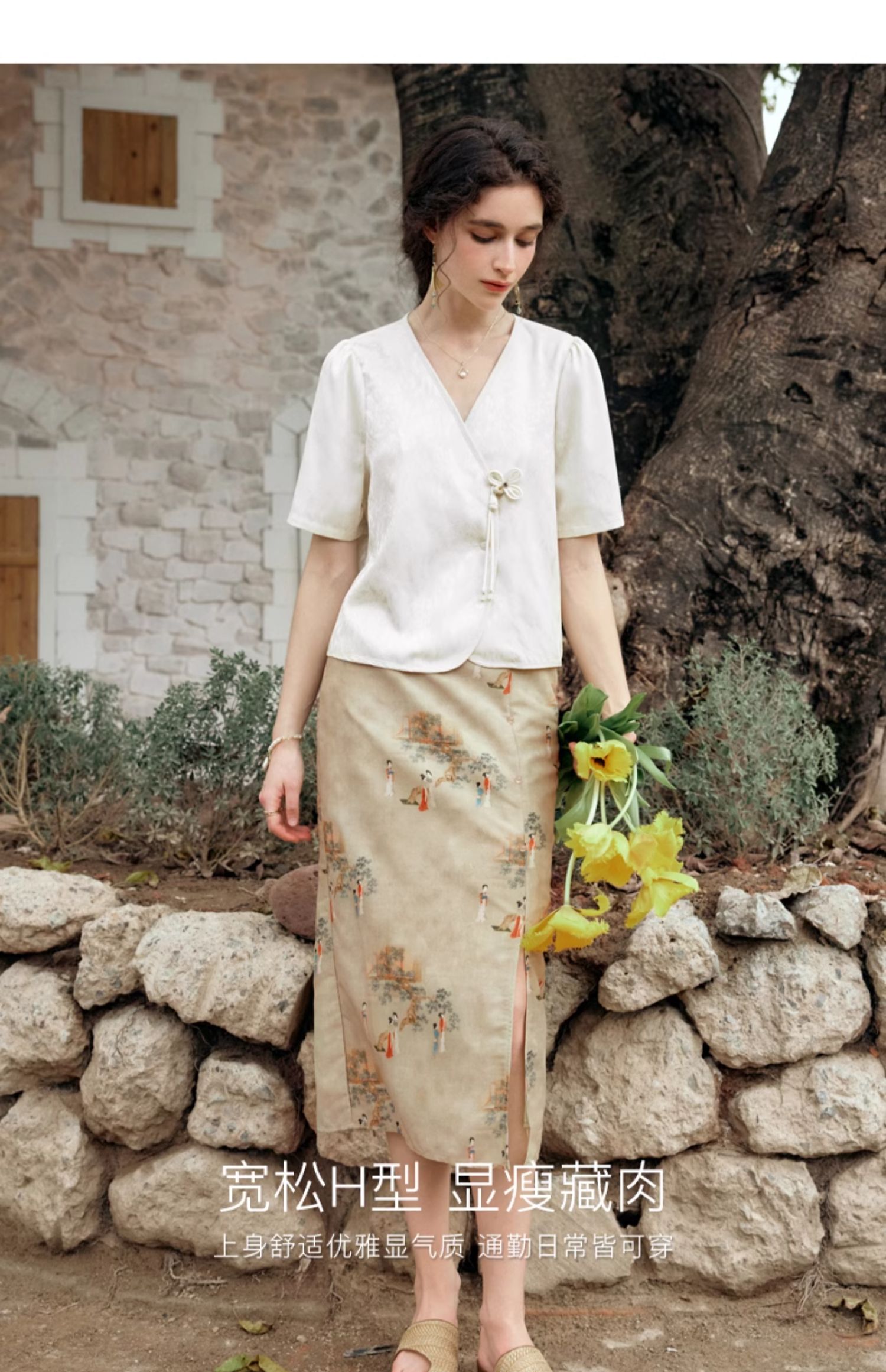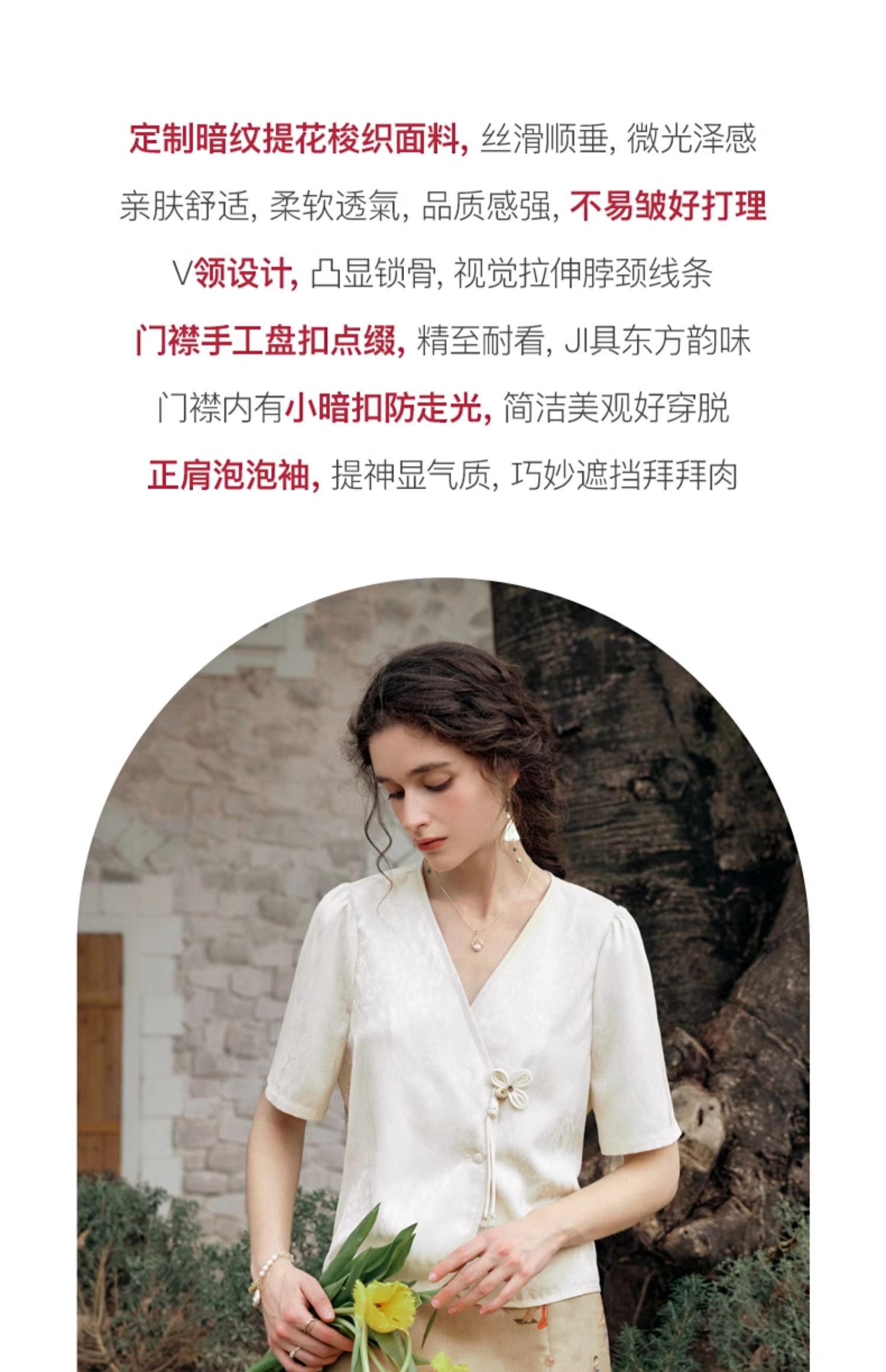 OLrain欧芮儿杏色V领雪纺衫女夏季2024新款气质高级感新中式上衣