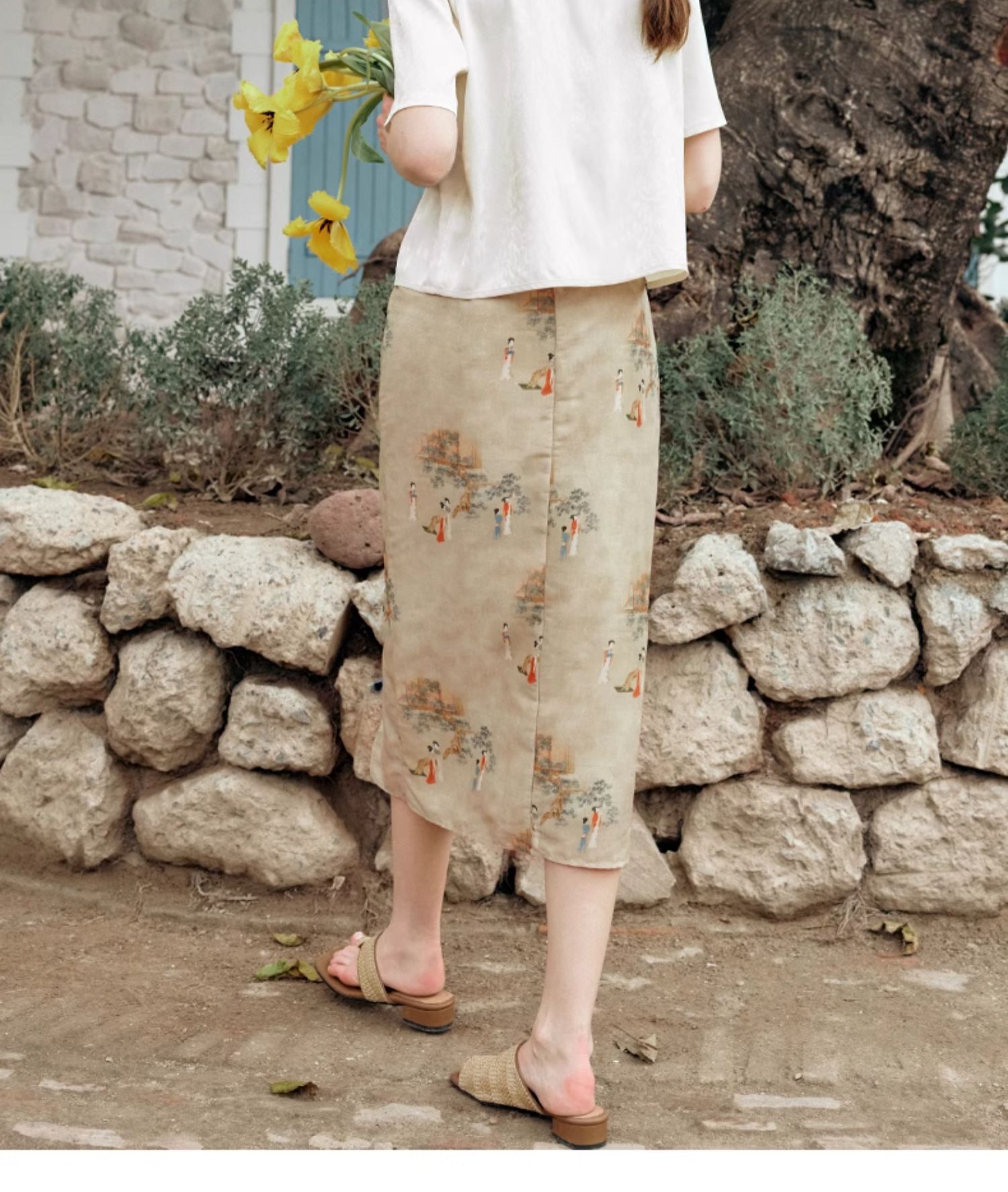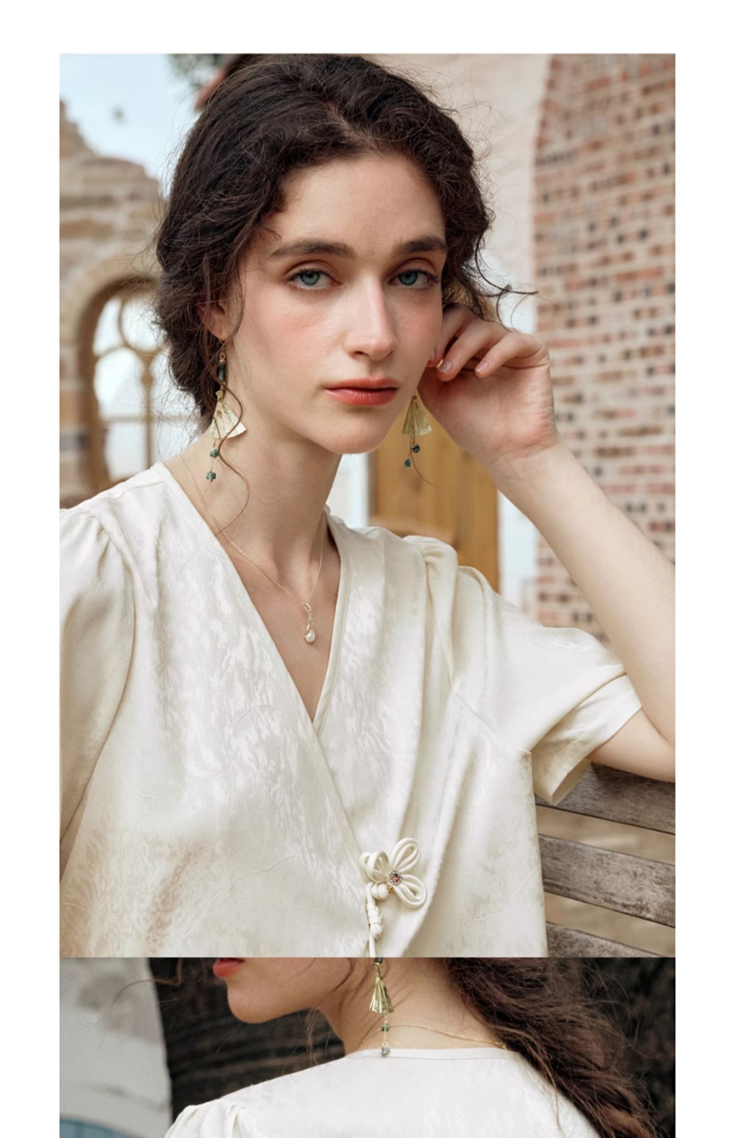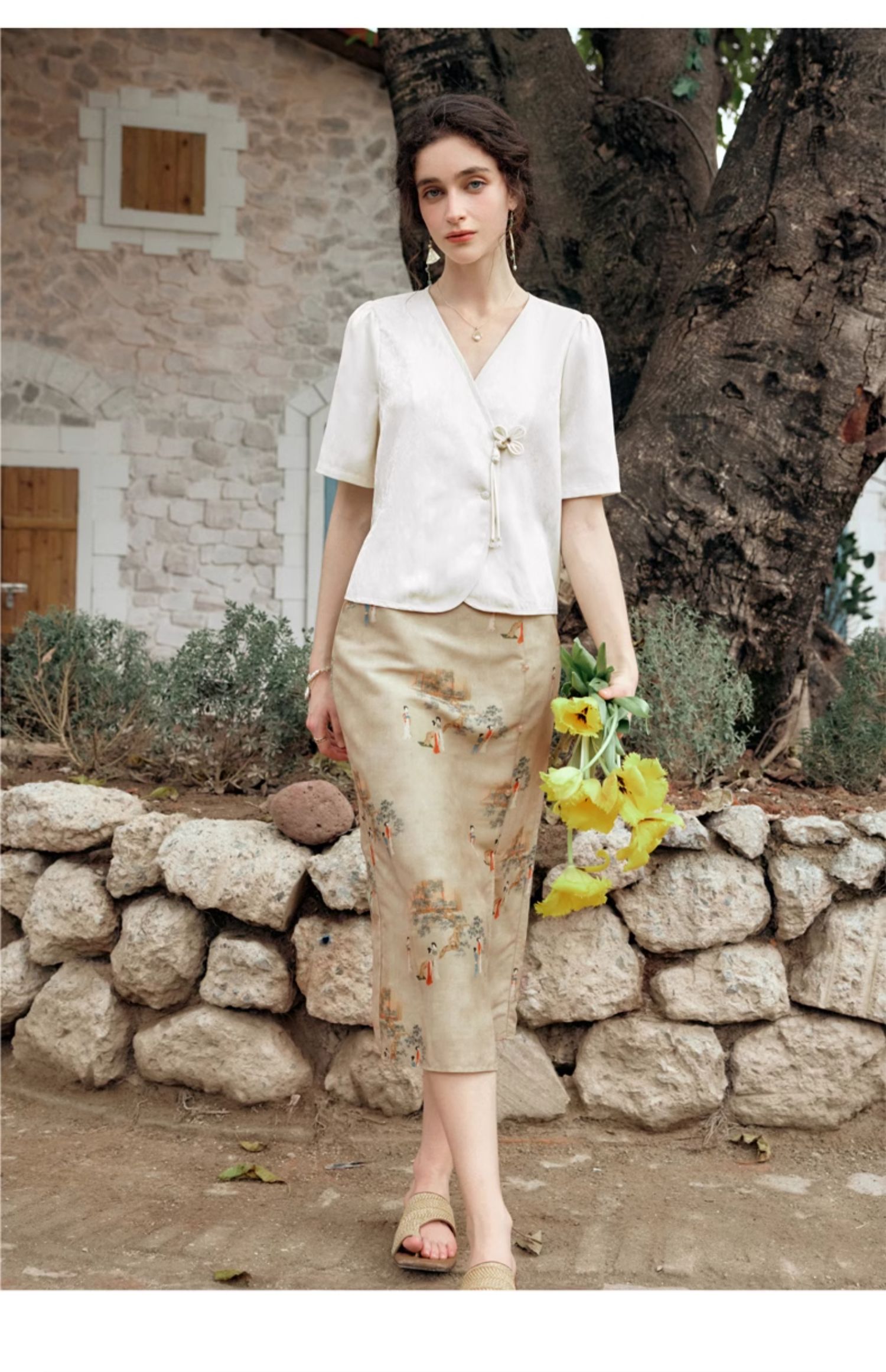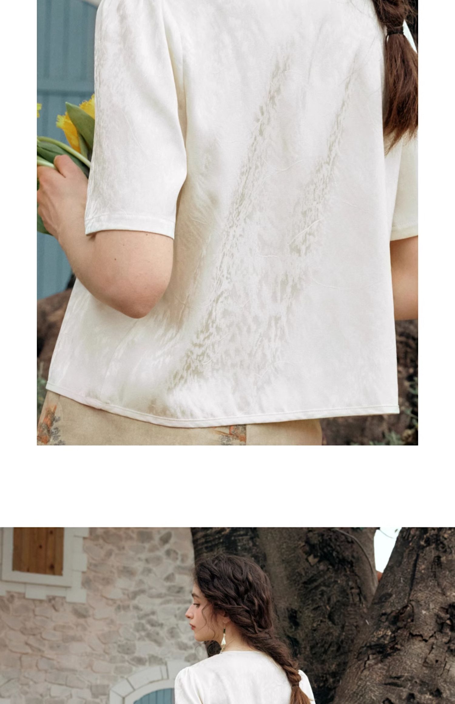 OLrain欧芮儿杏色V领雪纺衫女夏季2024新款气质高级感新中式上衣