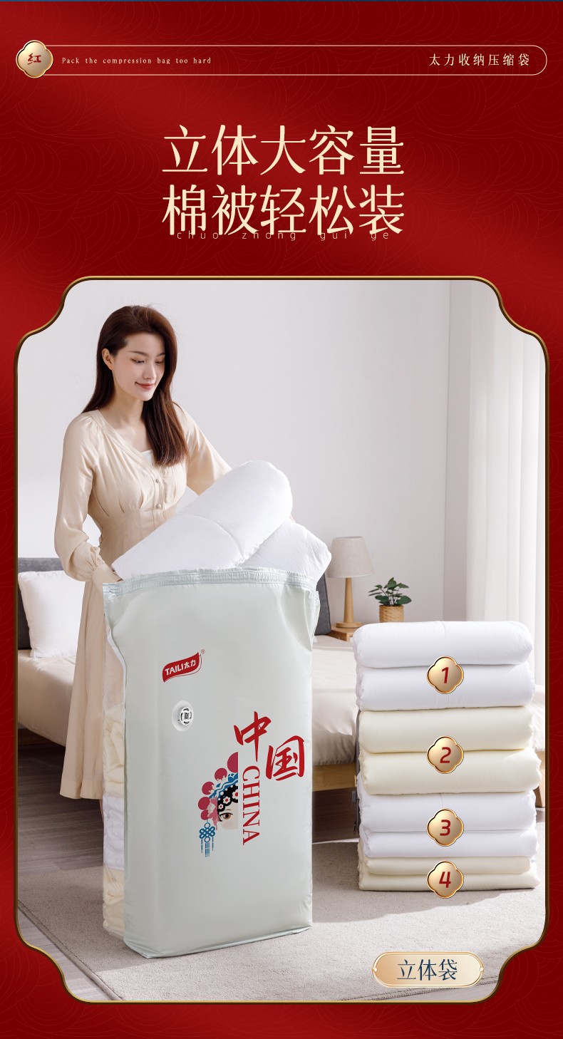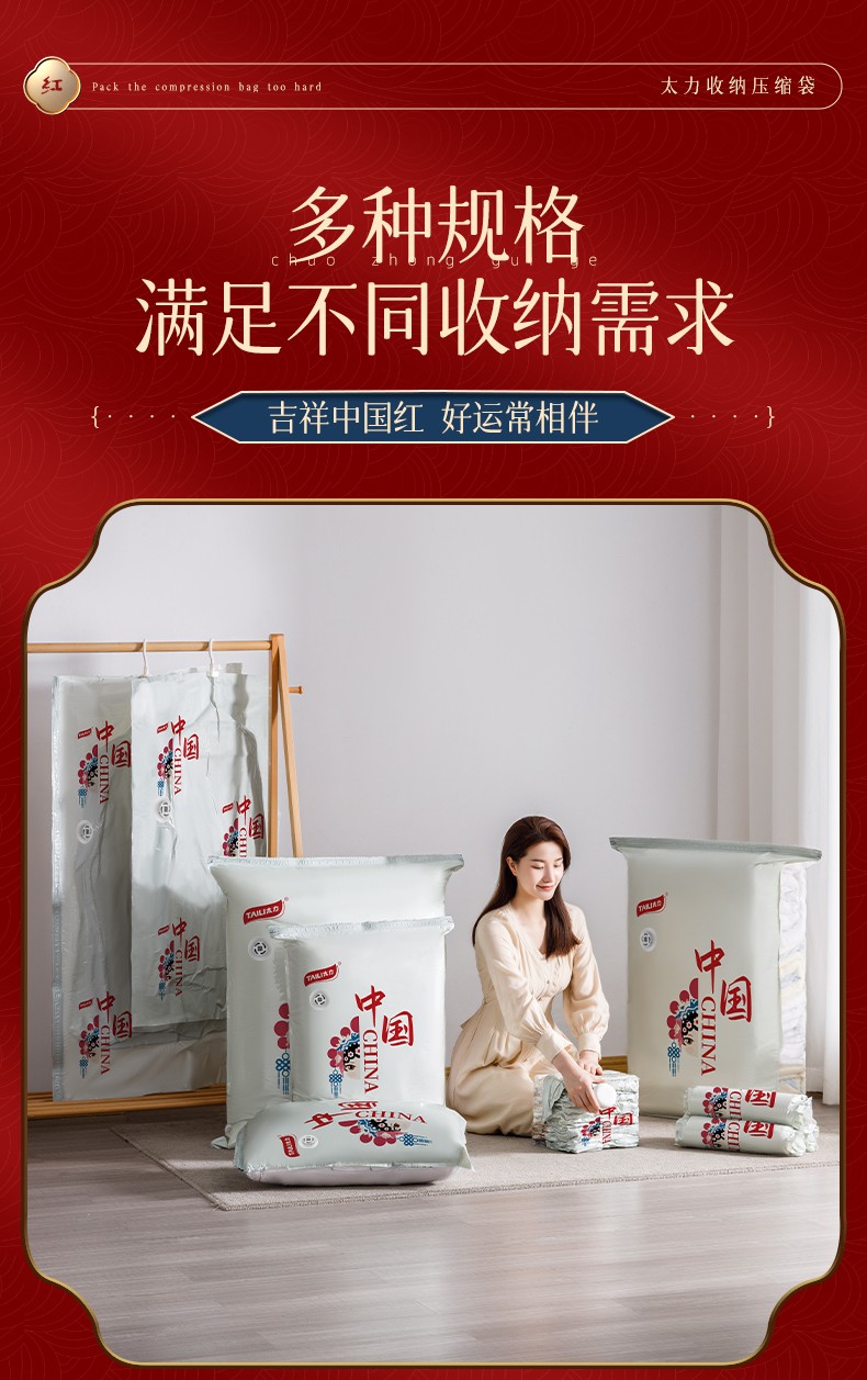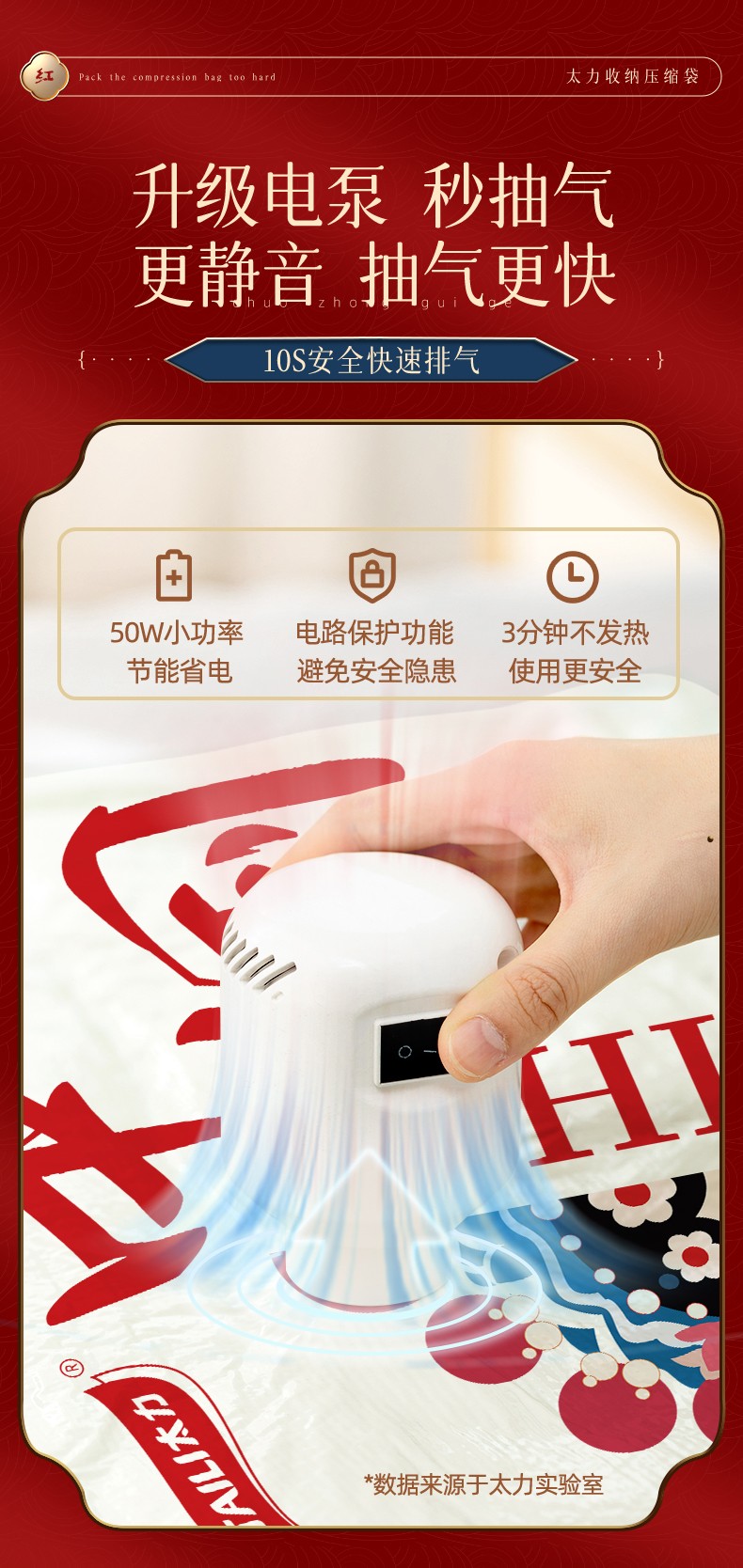太力(TAILI)中国红真空压缩收纳袋组合5件套4特大立体+电泵AZ485