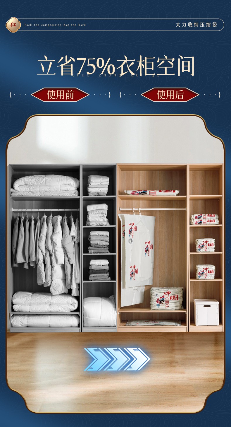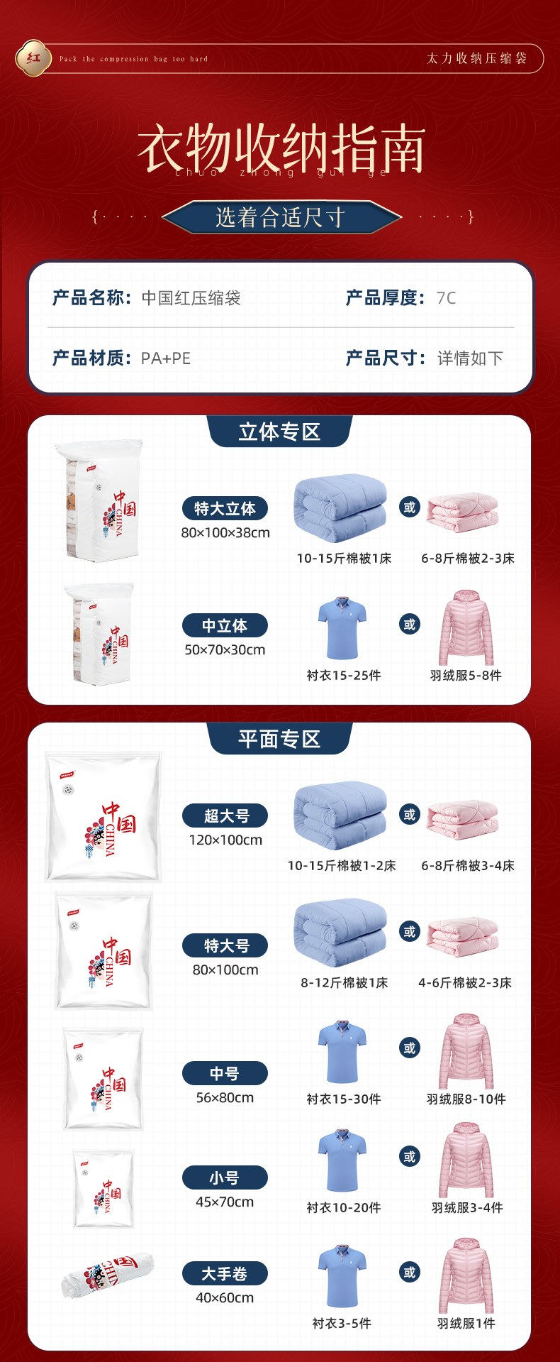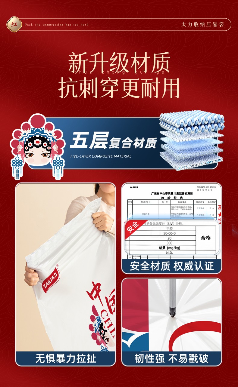 太力(TAILI)中国红真空压缩收纳袋组合5件套4特大立体+电泵AZ485
