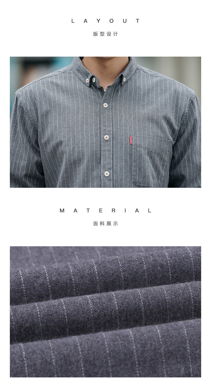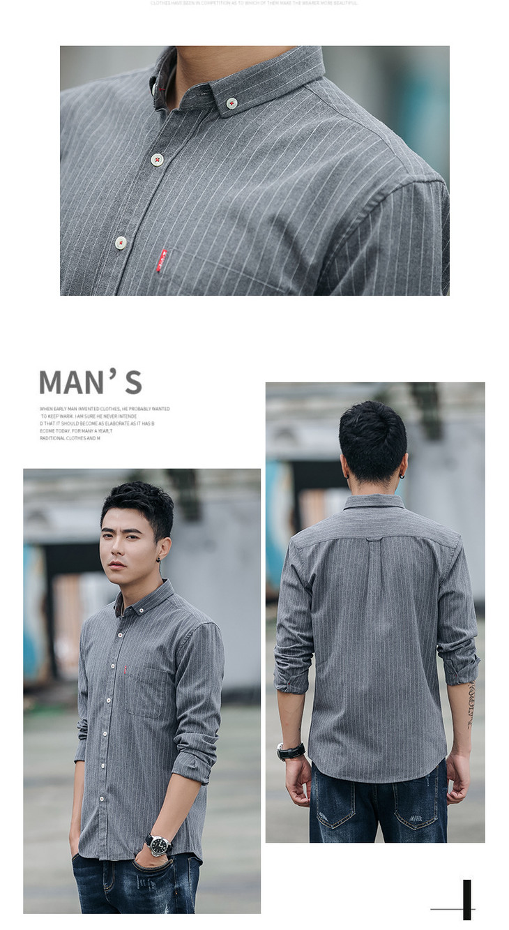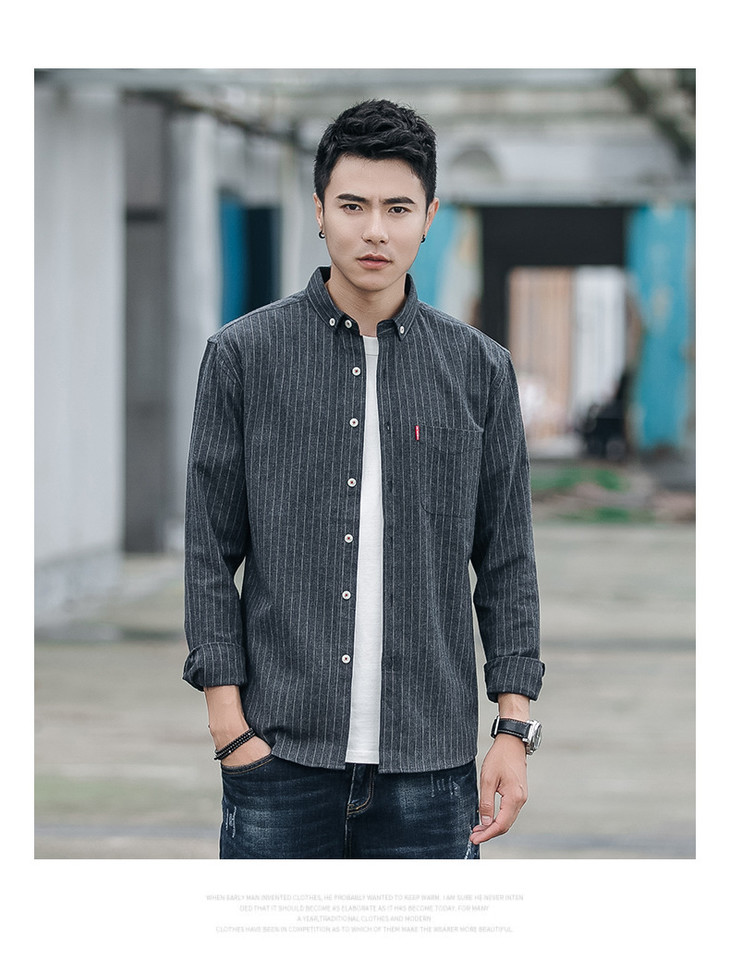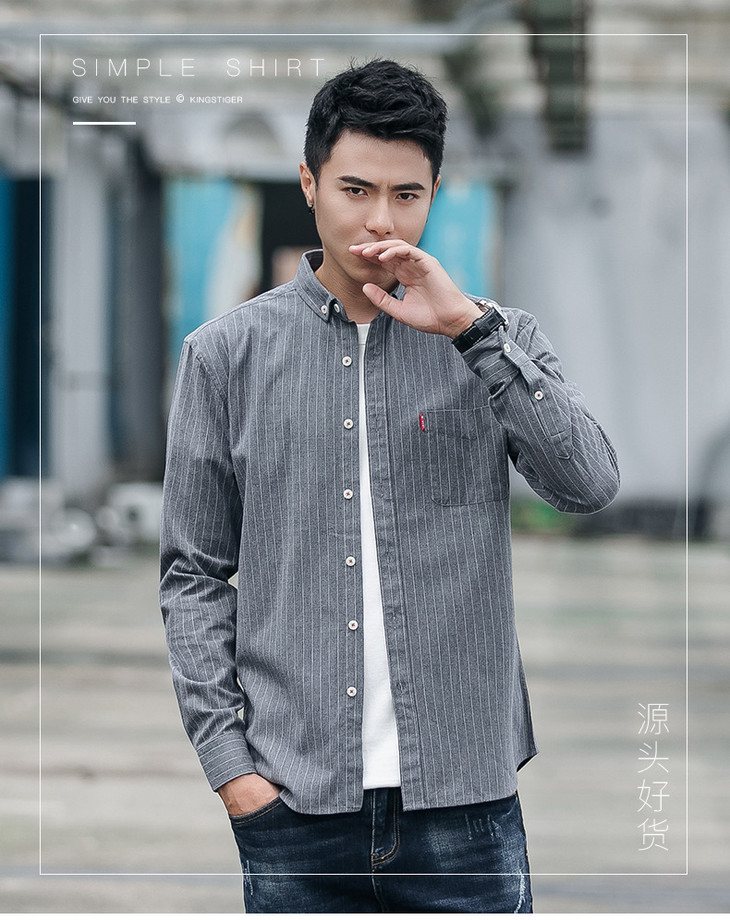 男装秋 火条纹男士休闲长袖衬衫翻领修身衬衣开衫