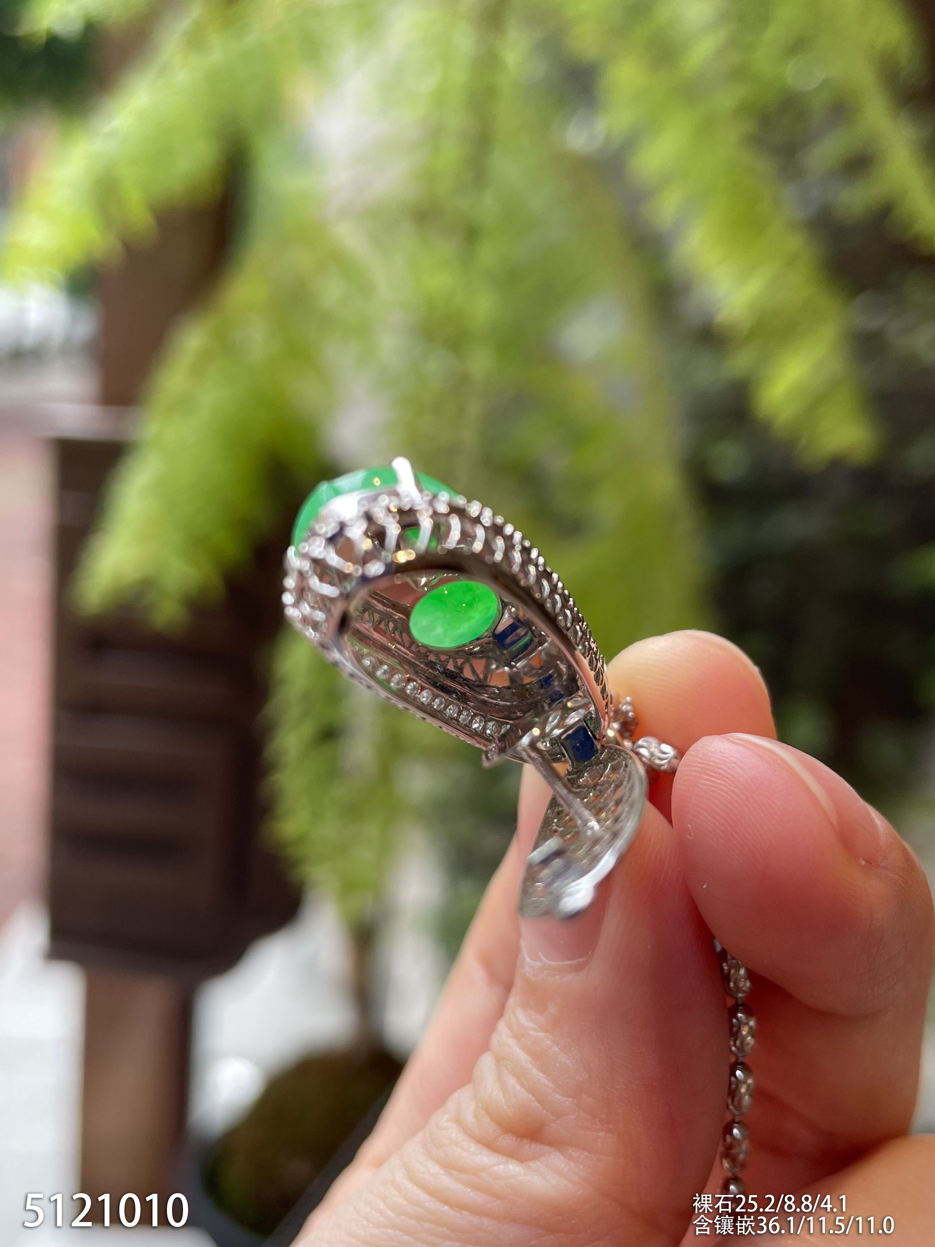 120-1232908,玻璃种木那艳绿蛋面戒指,具体价格微信咨询
