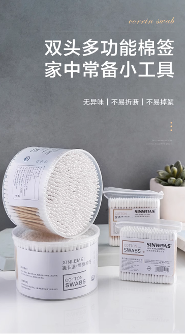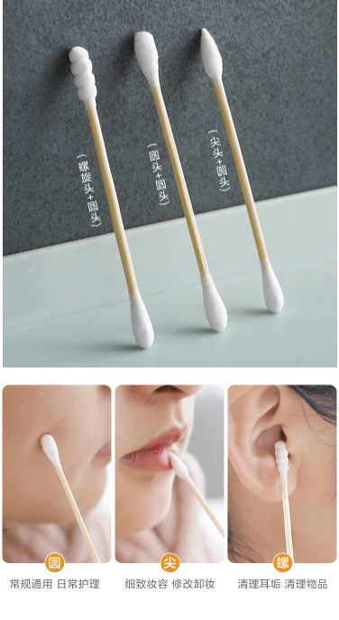 双头棉签 掏耳化妆家用棉花棒木棒一次性小头细尖头耳朵勺清洁棉棒
