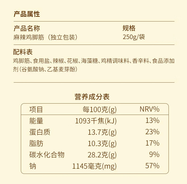 【分仓直发包邮】农香森麻辣鸡脚筋250g/罐
