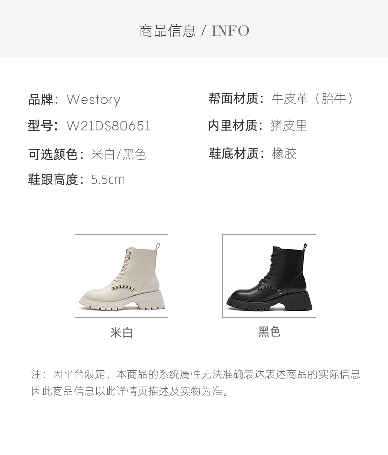 westory2021新品朋克风厚底马丁女靴W21DS80651