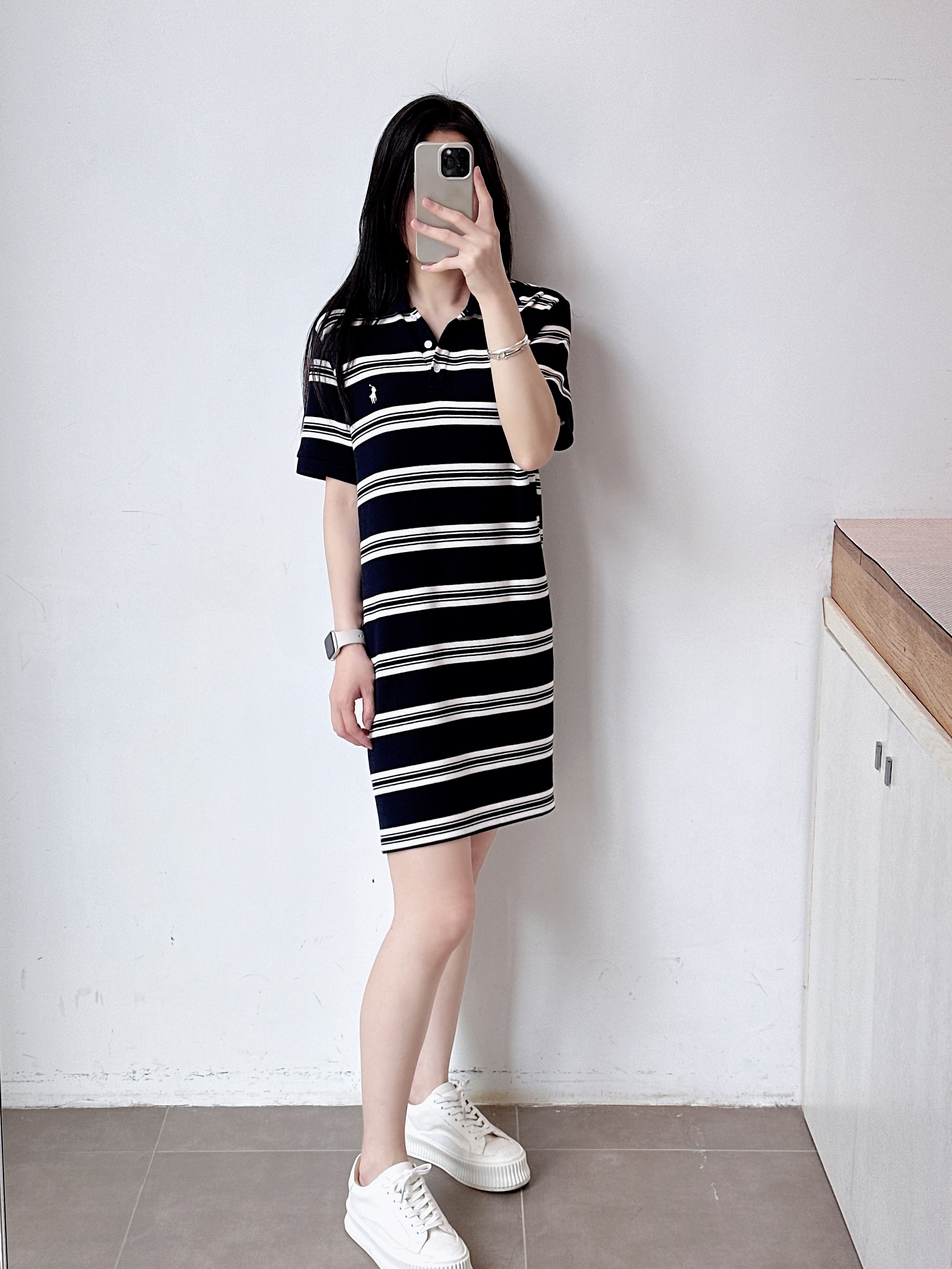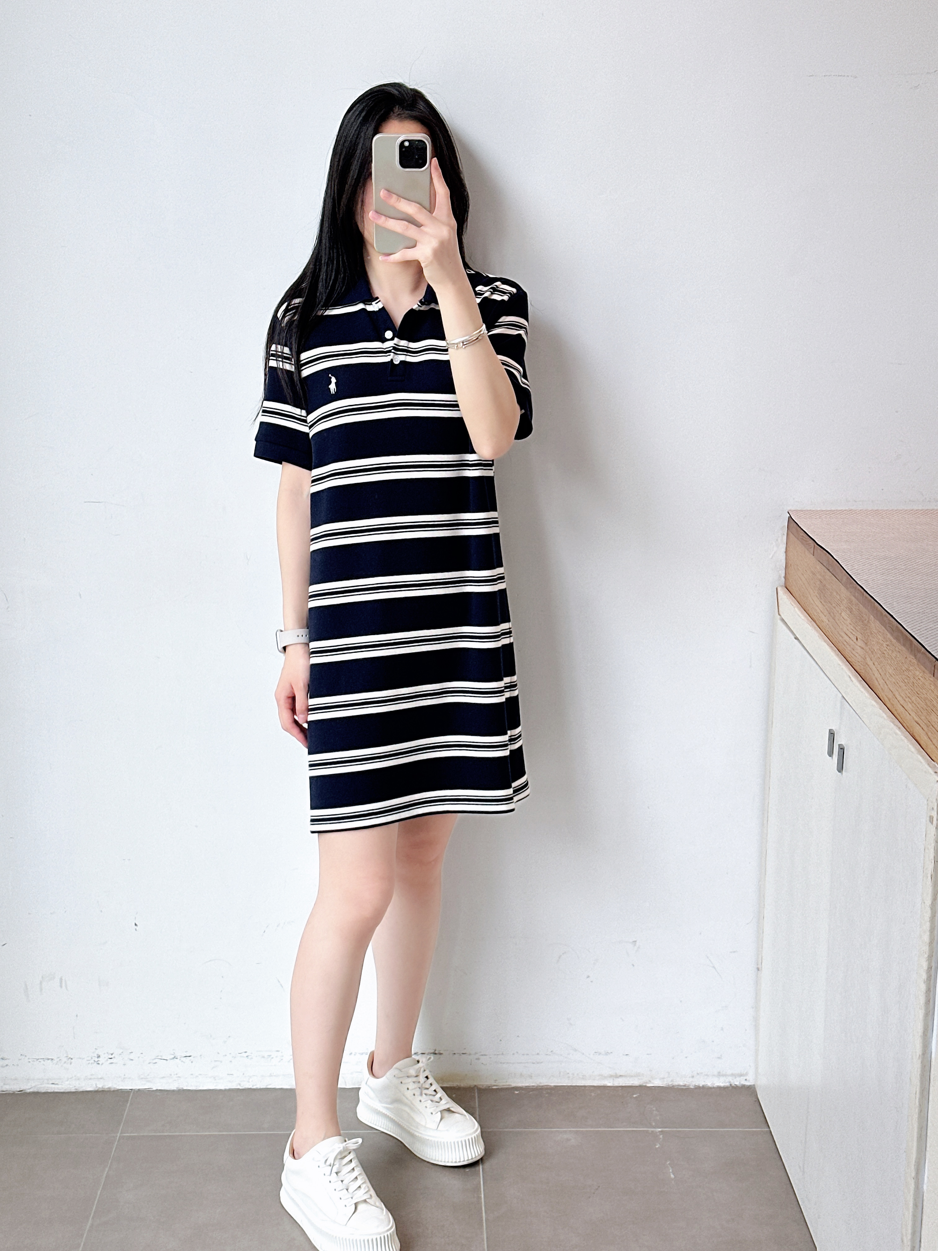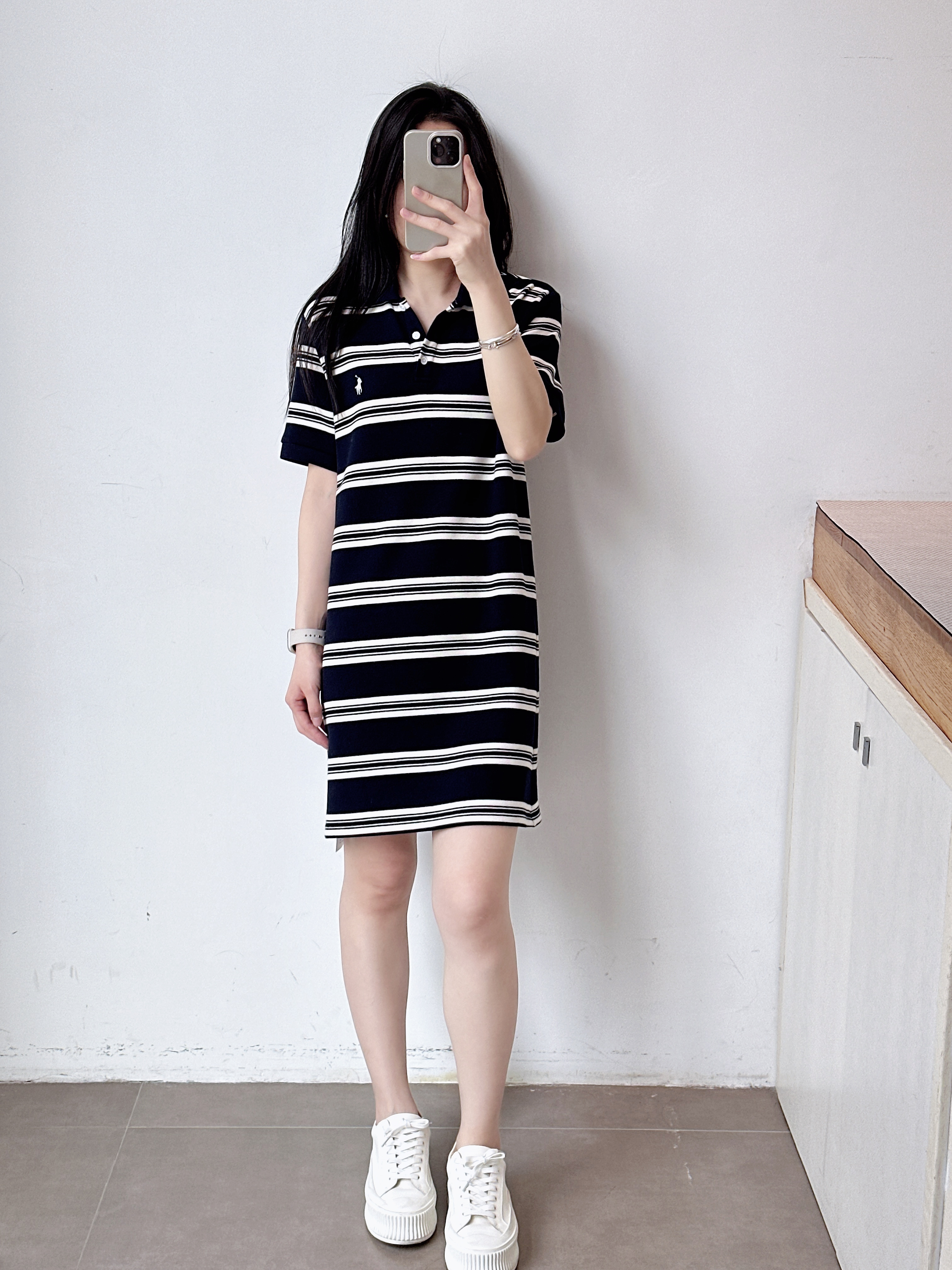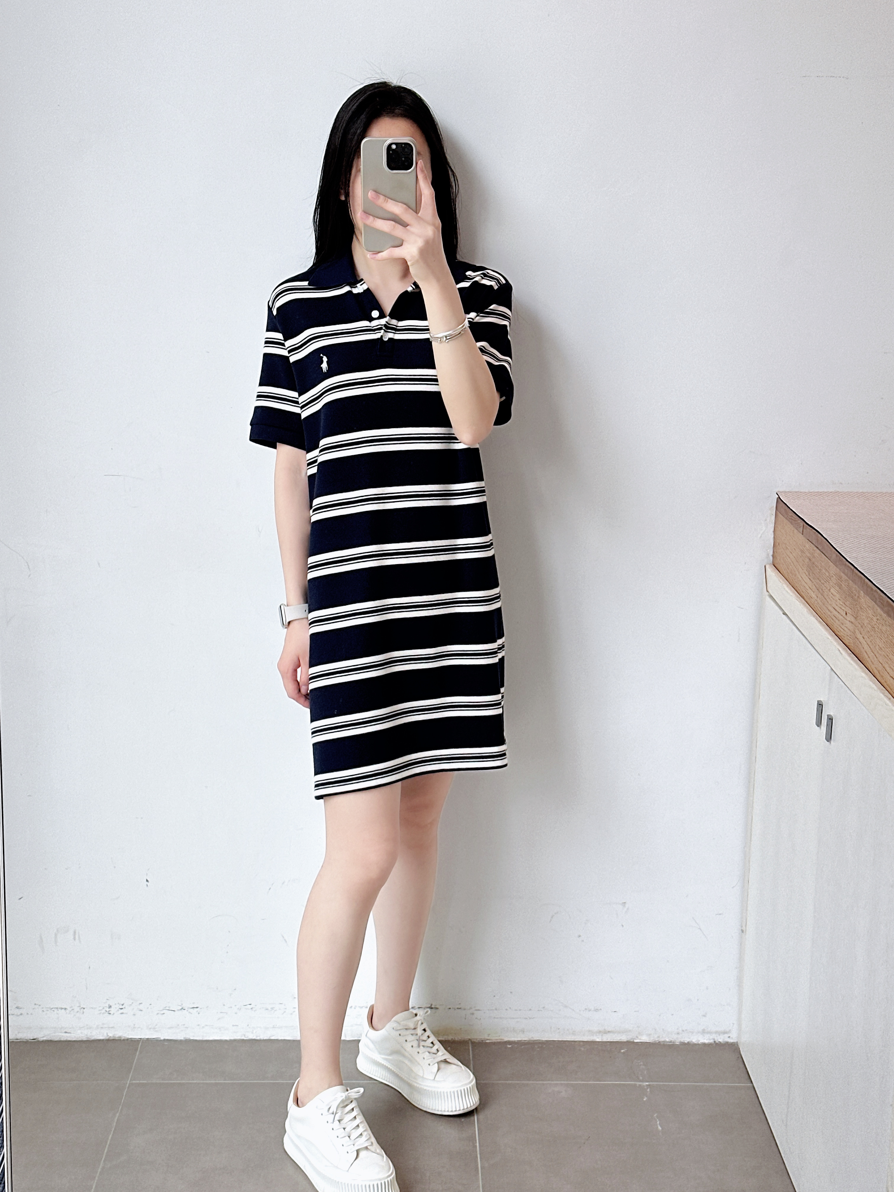 条纹短袖polo领连衣裙女长裙显瘦时尚