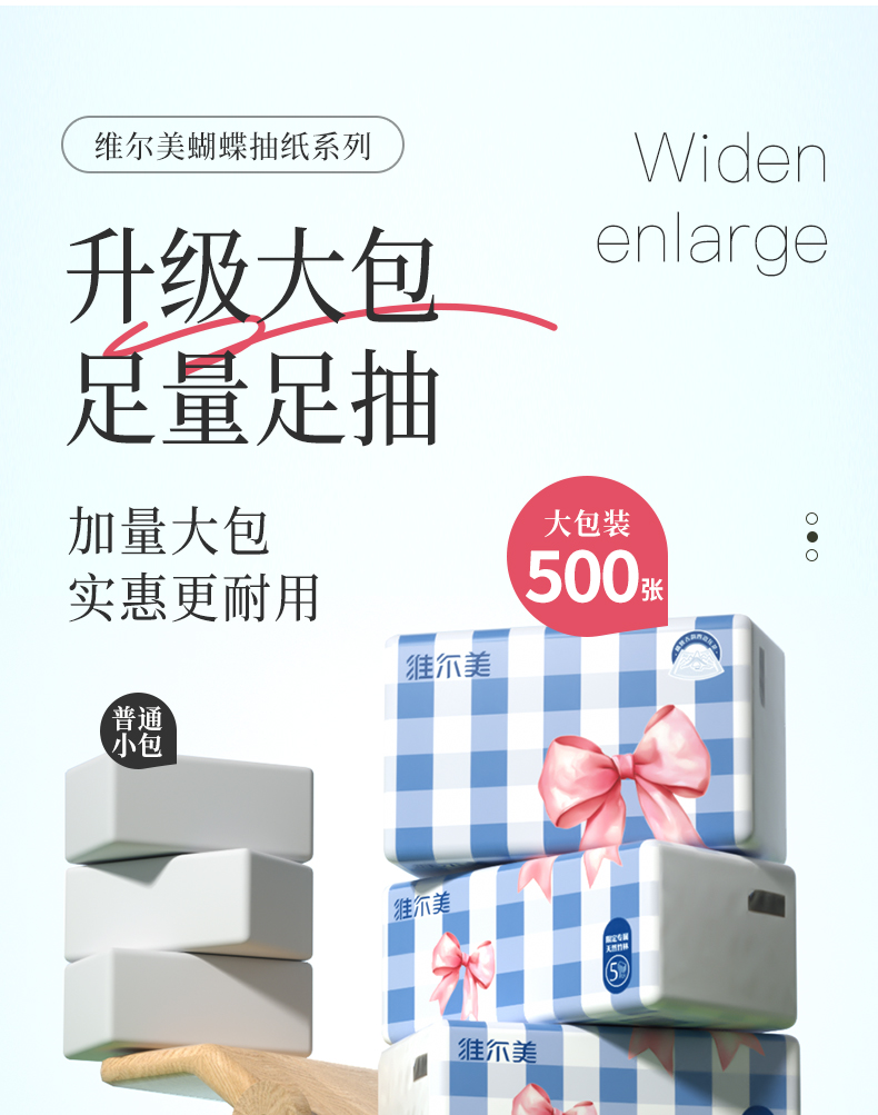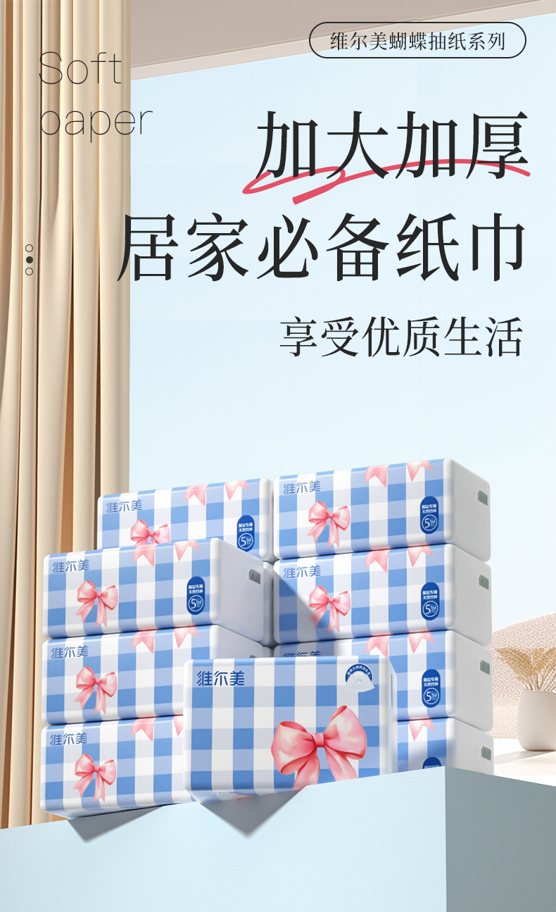 清仓—维尔美软抽纸面巾5层100抽20包(5包*4提)快递袋装(EWRA55M1)发两个快递