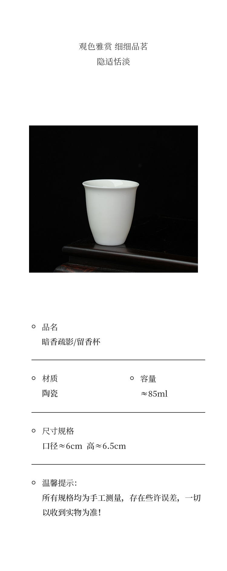 暗香疏影 留香杯白瓷单杯闻香杯个人专用陶瓷茶杯品茗杯瓷杯