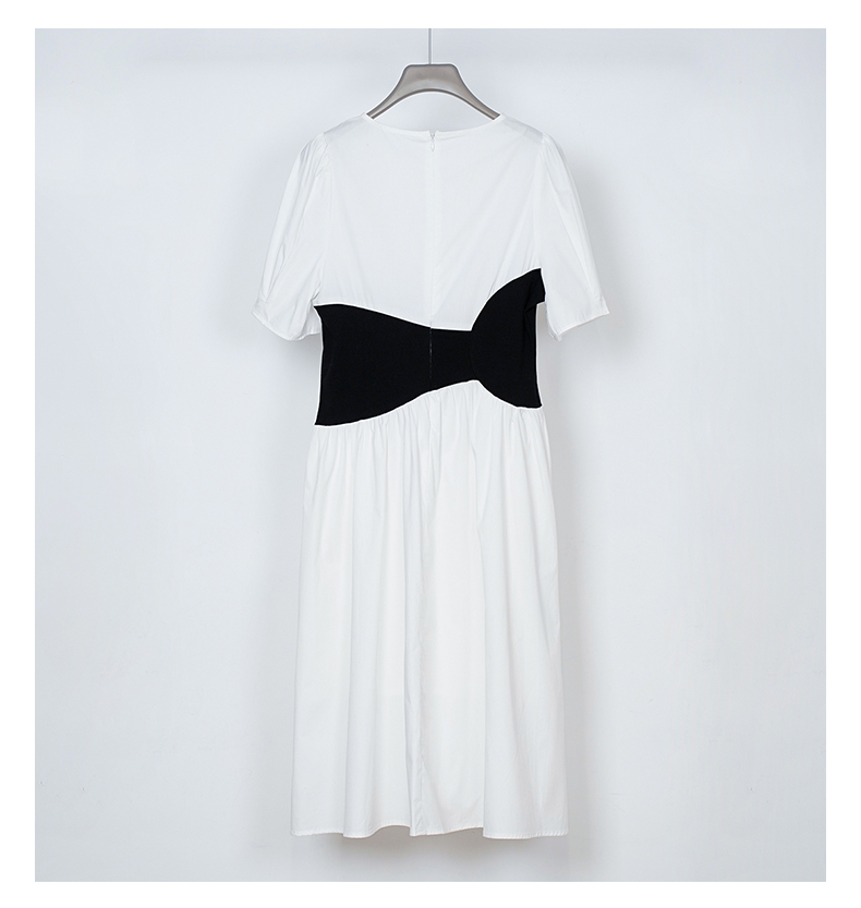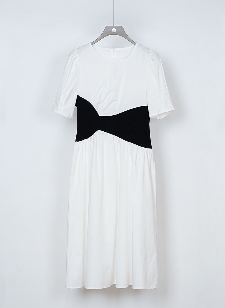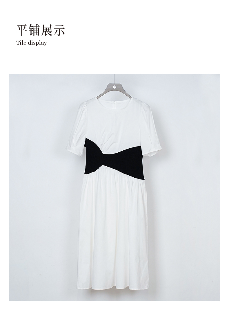 NUTS秋季新款法式收腰显瘦黑白撞色甜酷气质短袖连衣裙