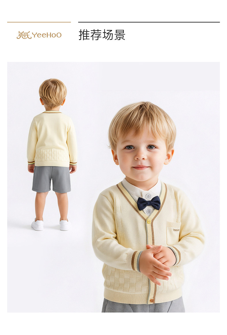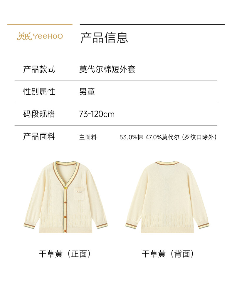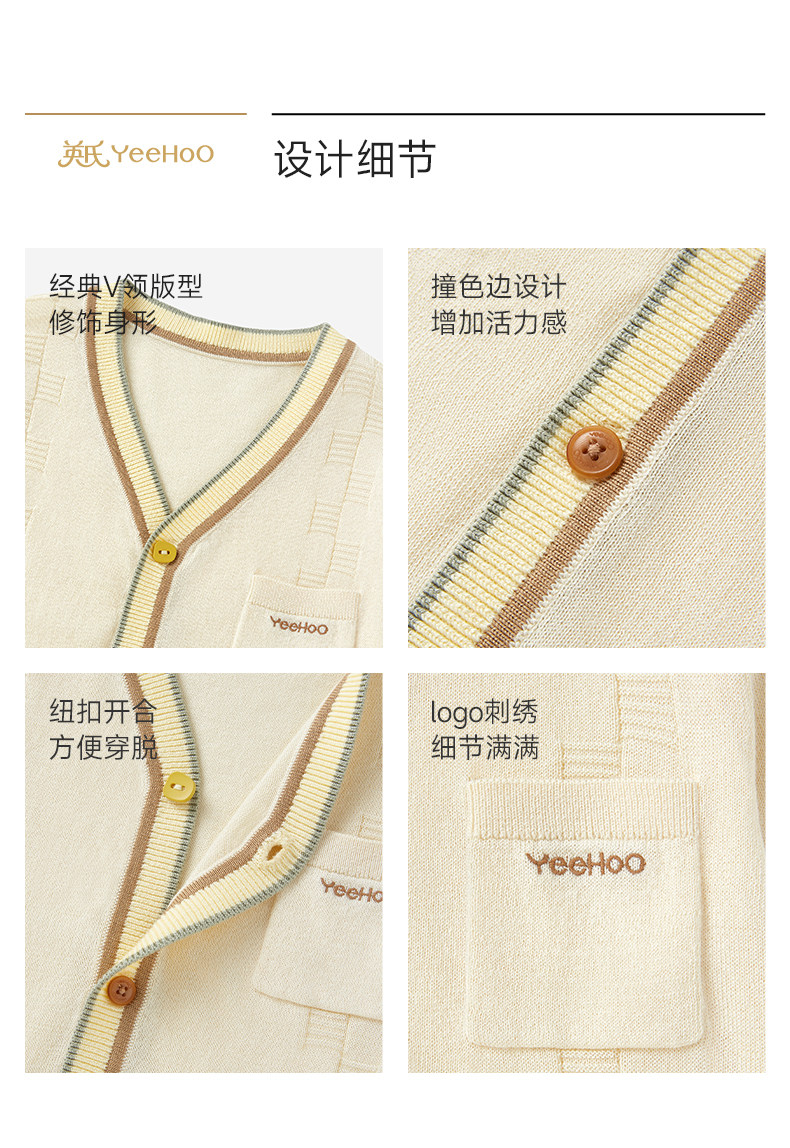 英氏儿童外套男女童春秋毛衫空调房休闲撞色针织开衫YRWWJ2S030A