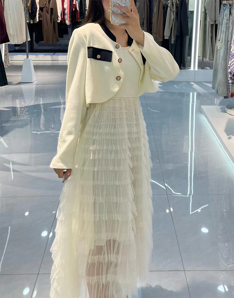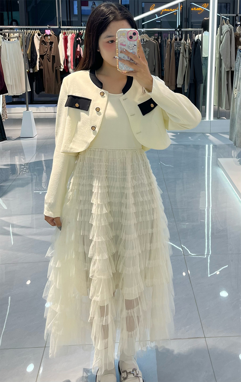P&X设计师女装秋季新款温柔小香风名媛套装长裙 824314190 杏色