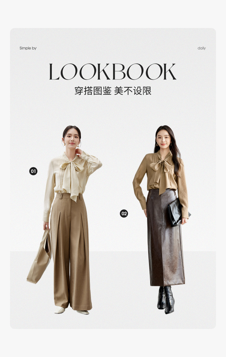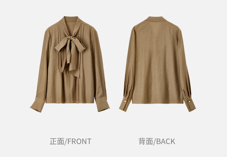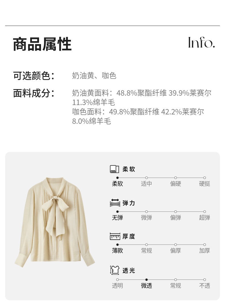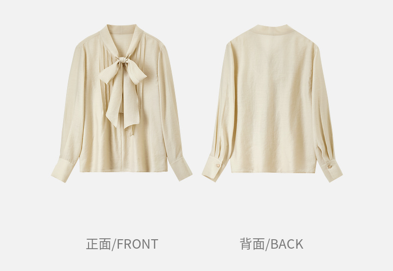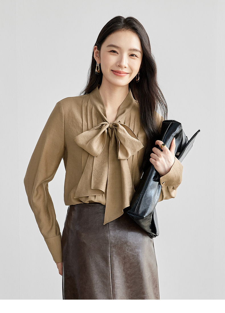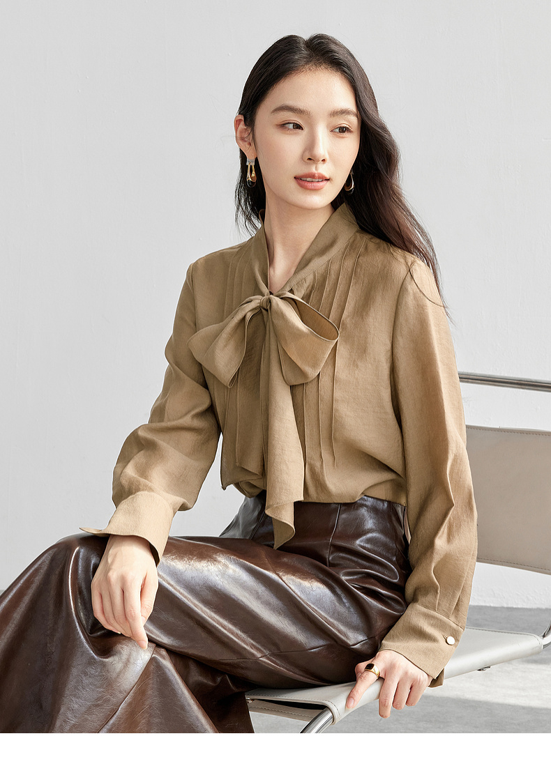【内购】莱赛尔羊毛气质职场通勤塔克褶衬衫新款女装风琴褶飘带上衣-57000