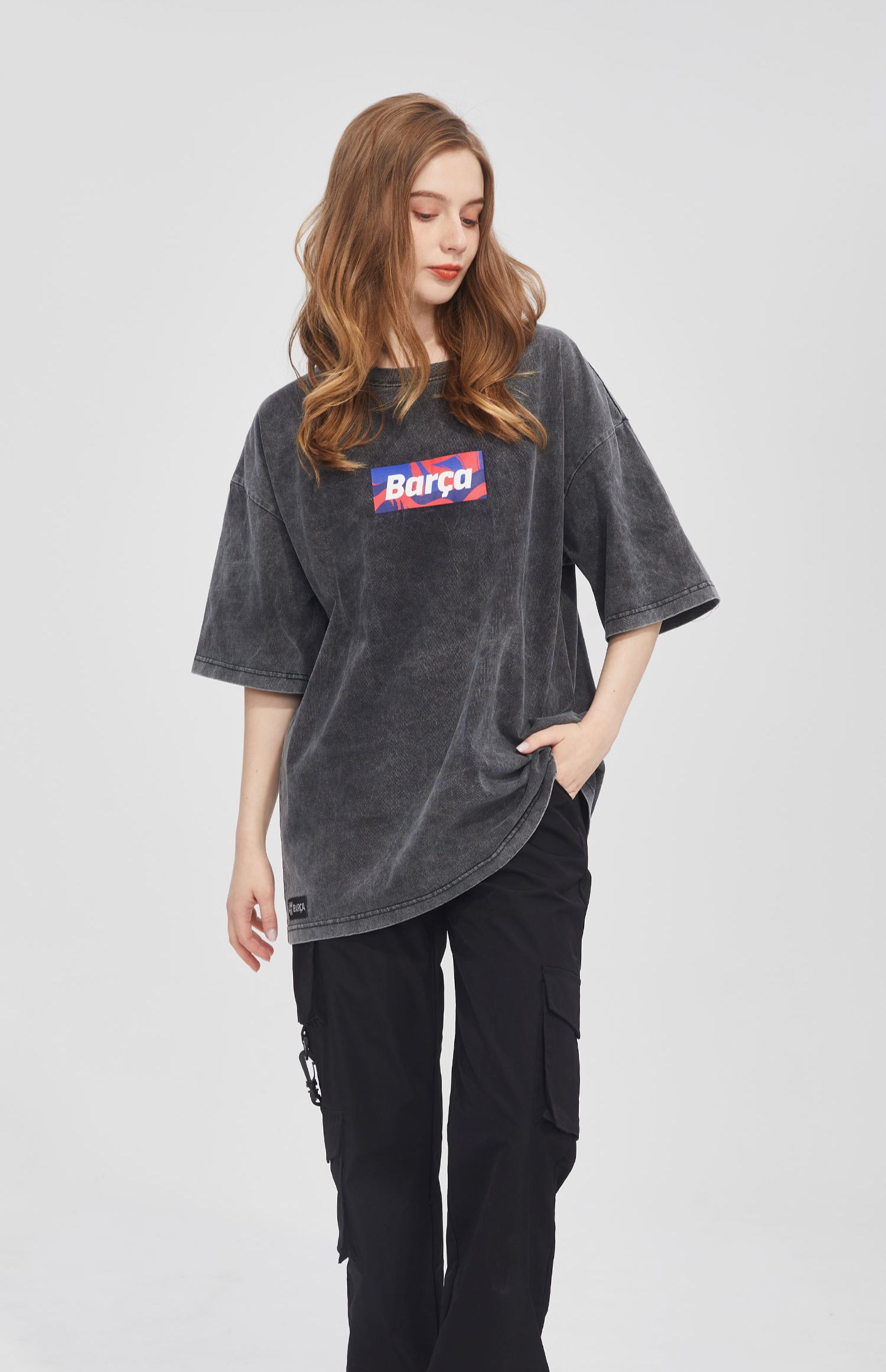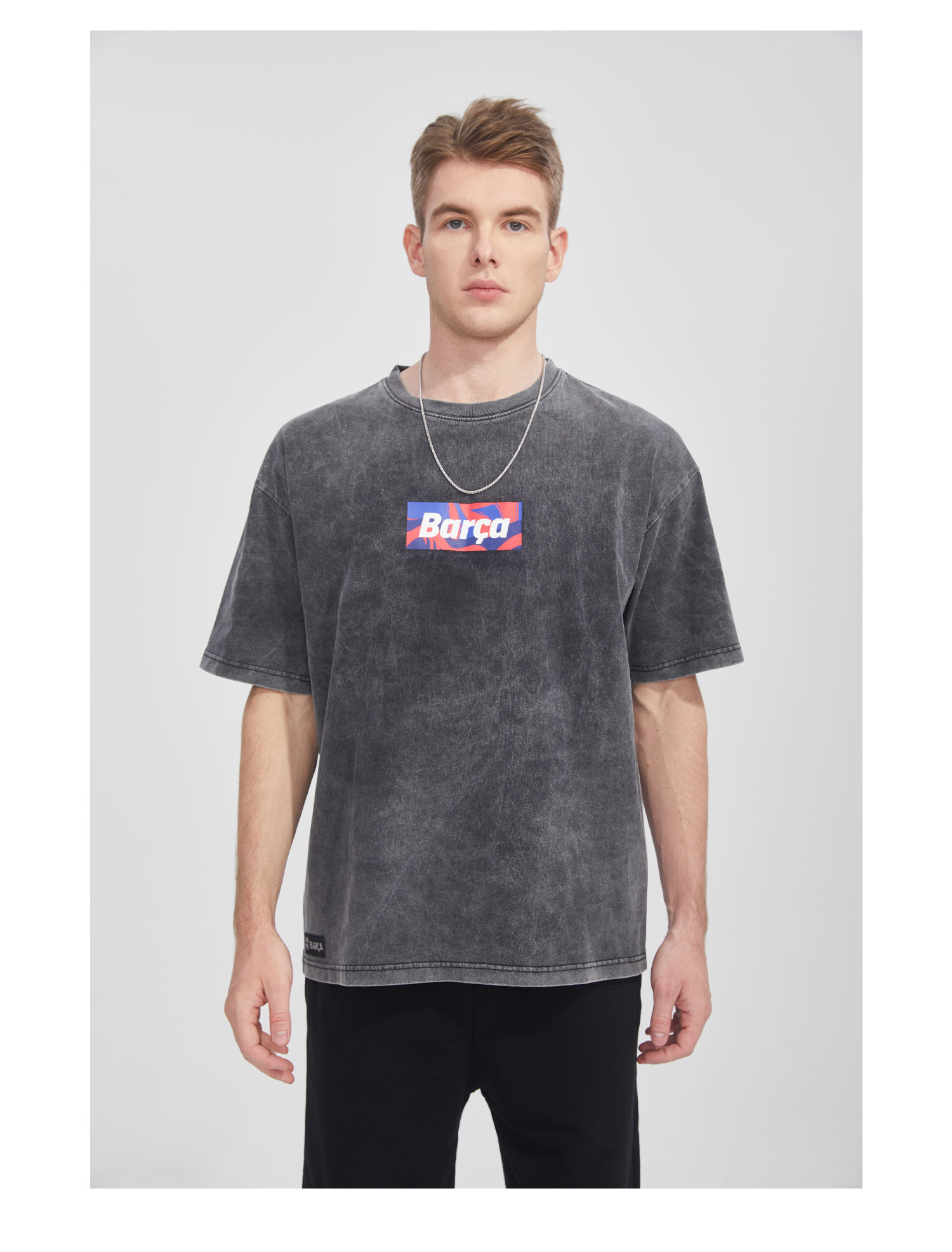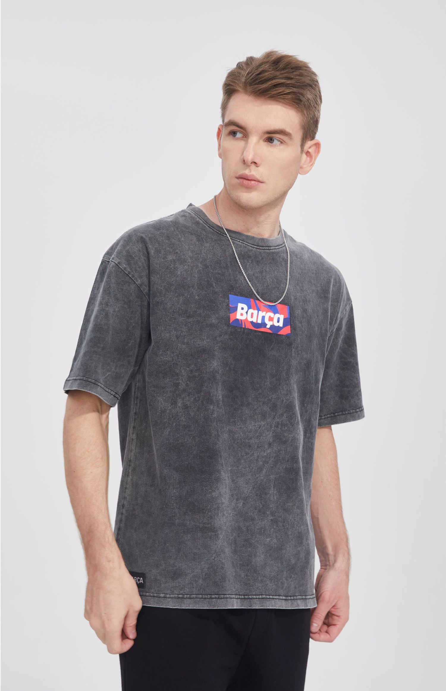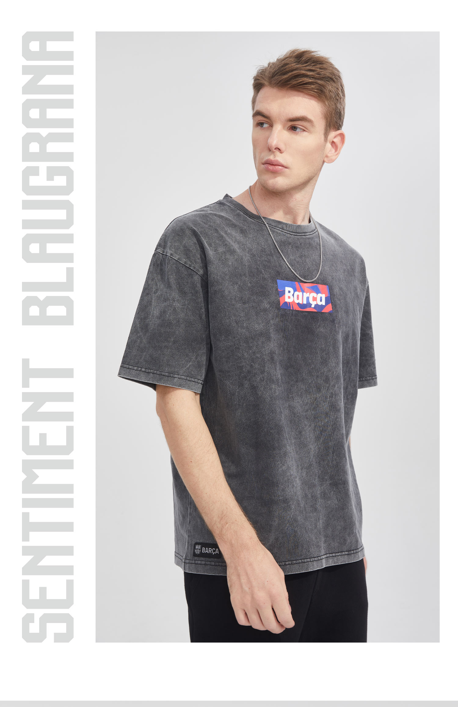 巴塞罗那俱乐部官方商品丨巴萨夏季新潮宽松水洗灰短袖t恤足球迷