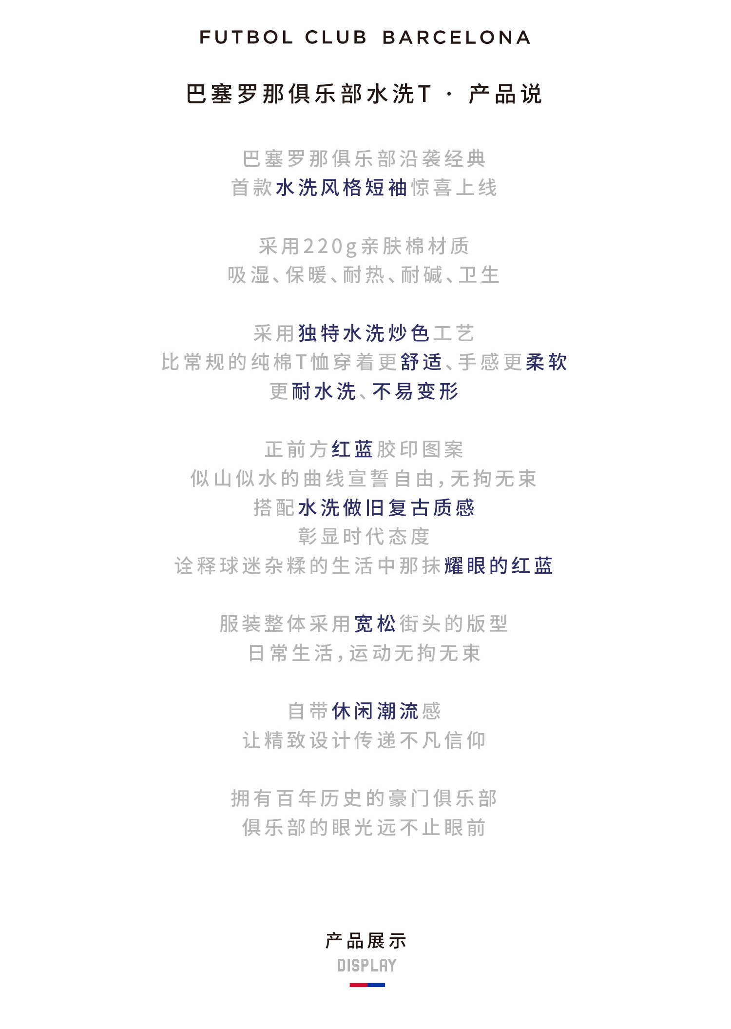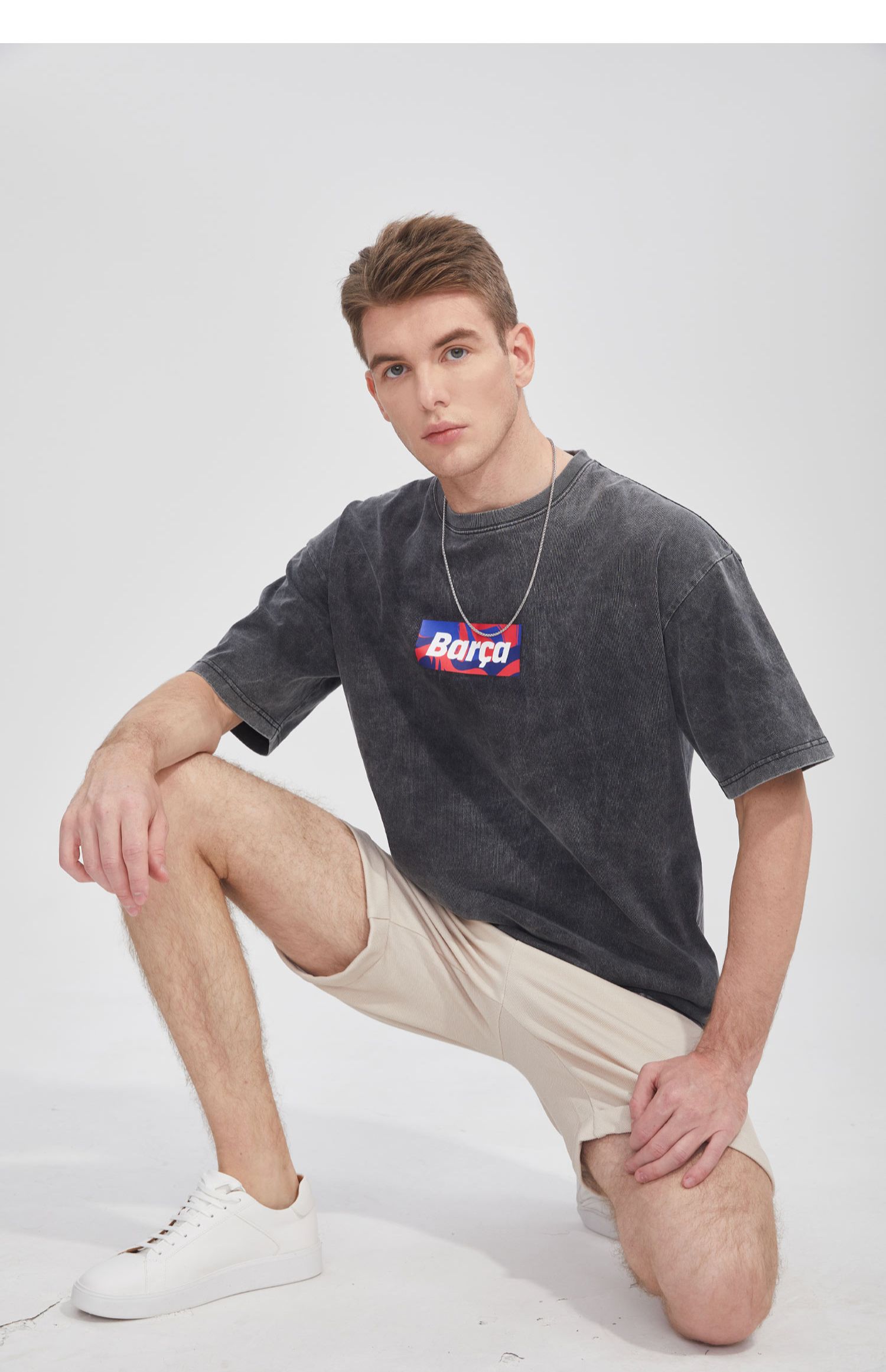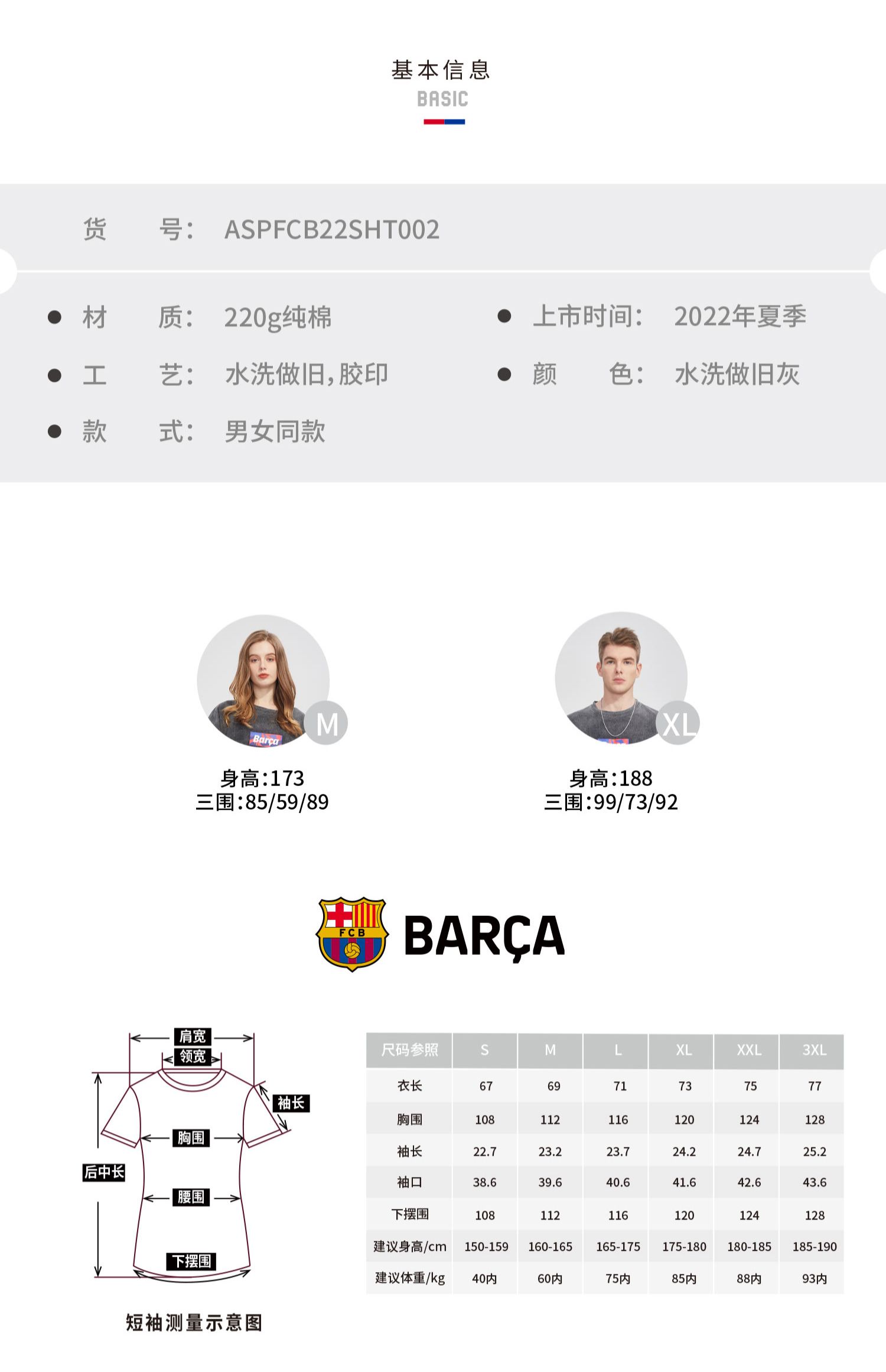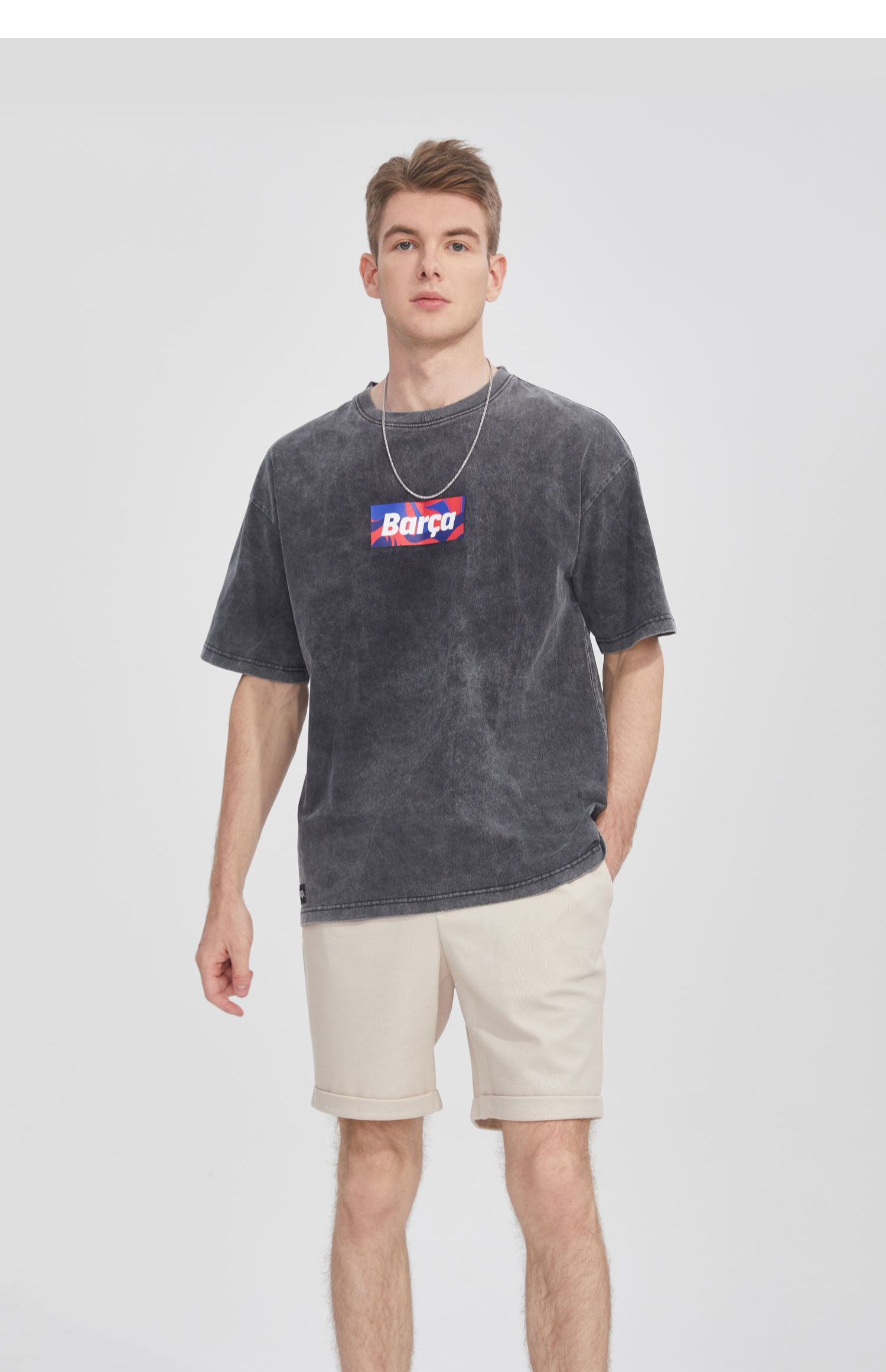 巴塞罗那俱乐部官方商品丨巴萨夏季新潮宽松水洗灰短袖t恤足球迷