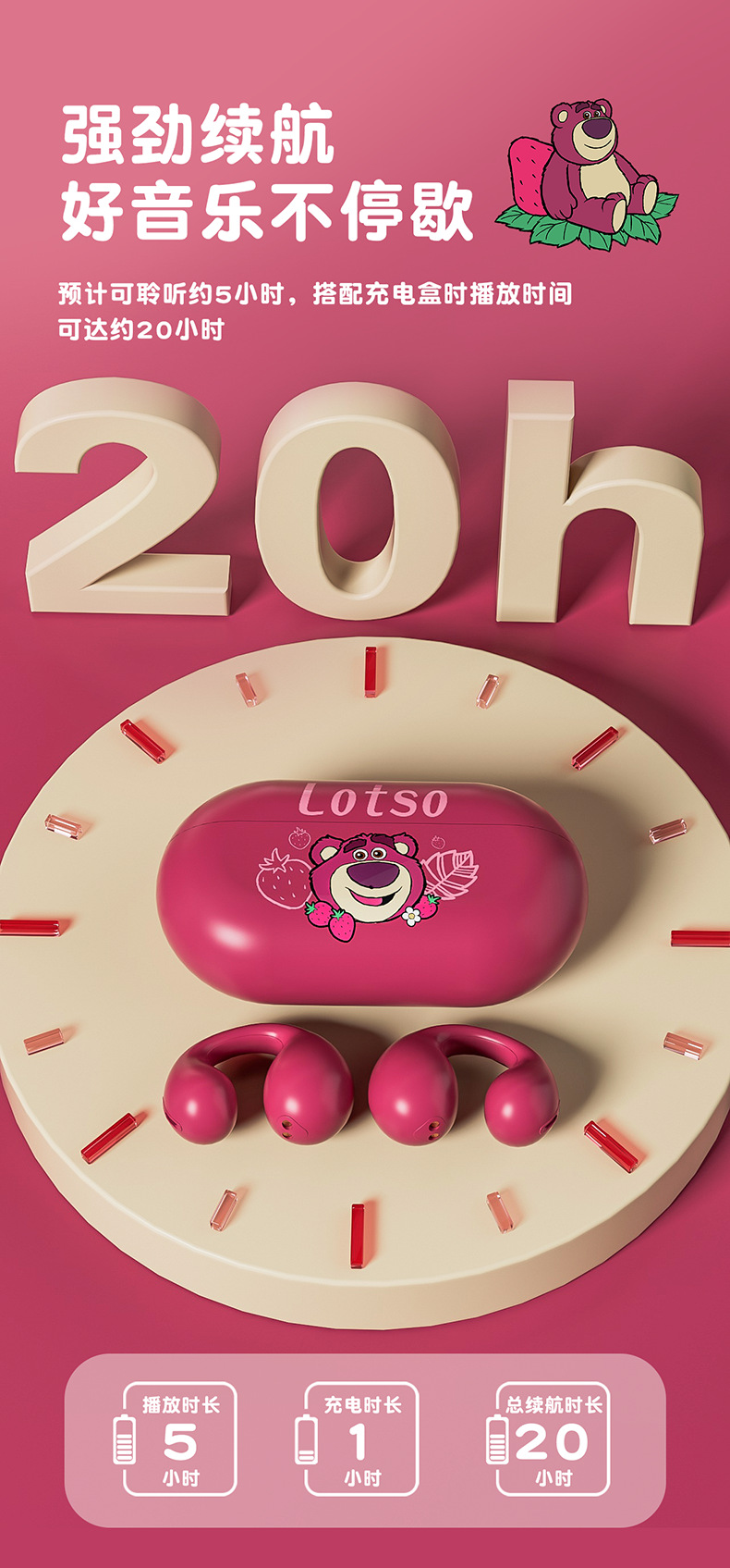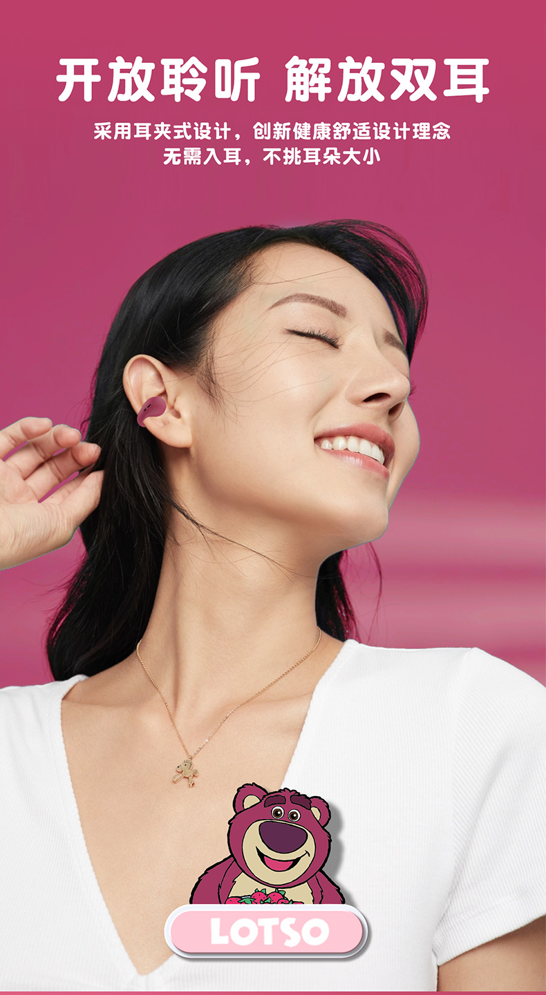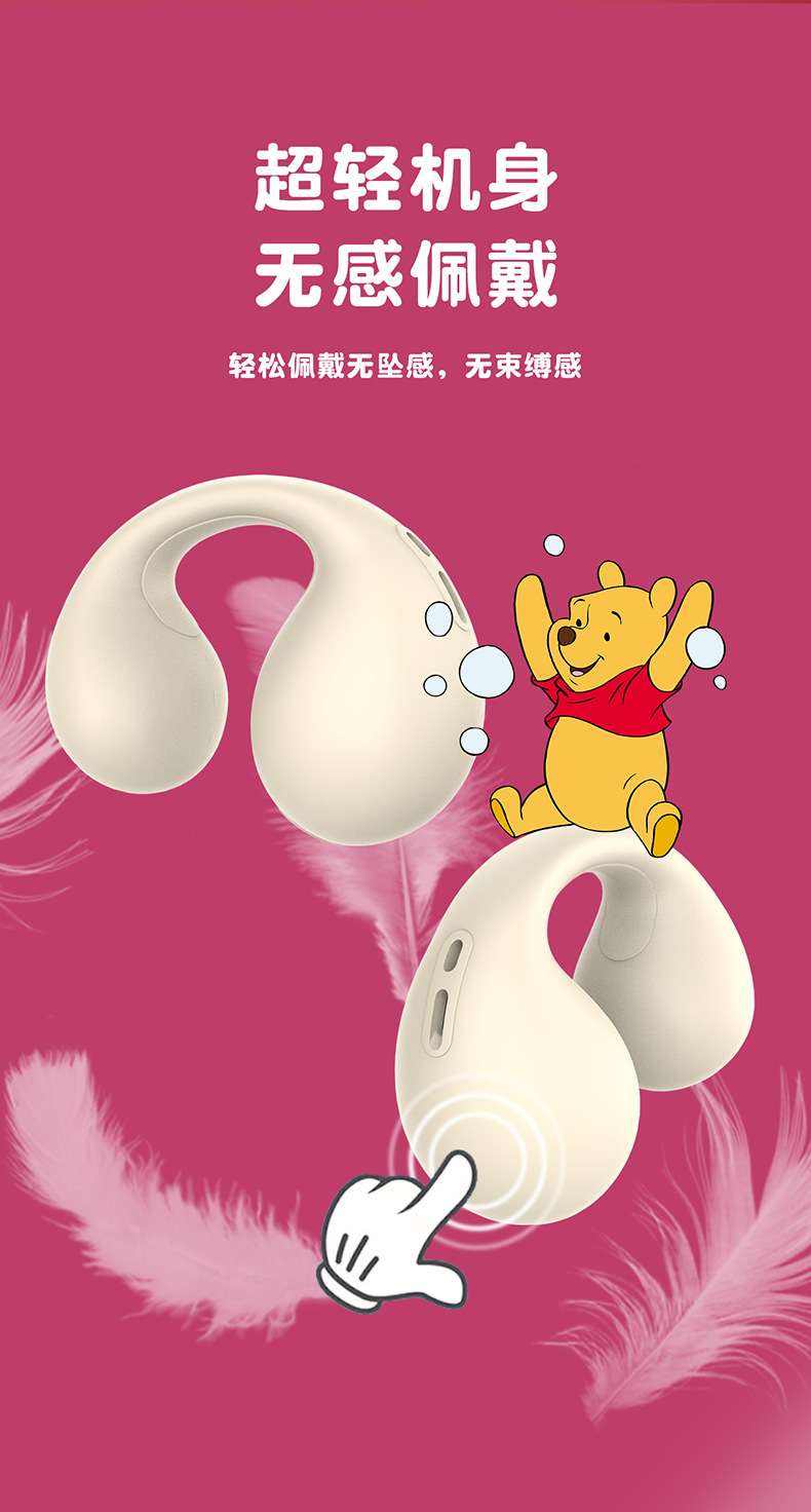 迪士尼新款真骨传导蓝牙耳机无线运动不入耳夹挂耳式超长续航耳机