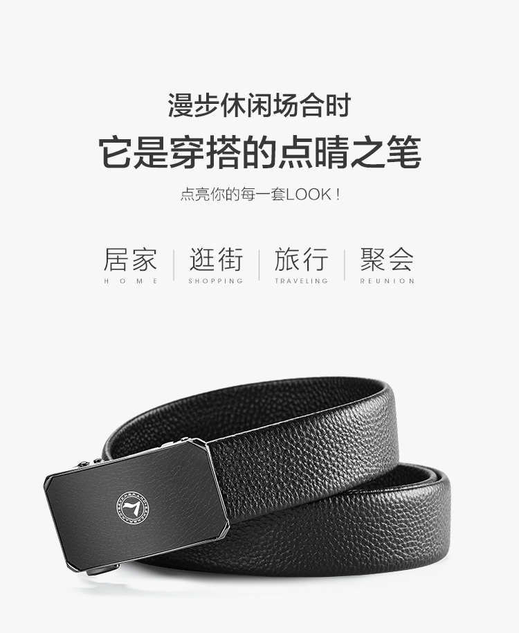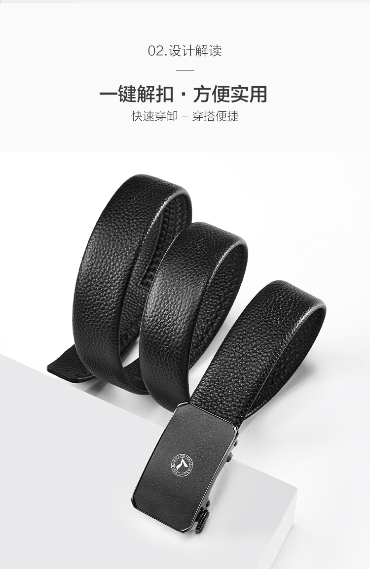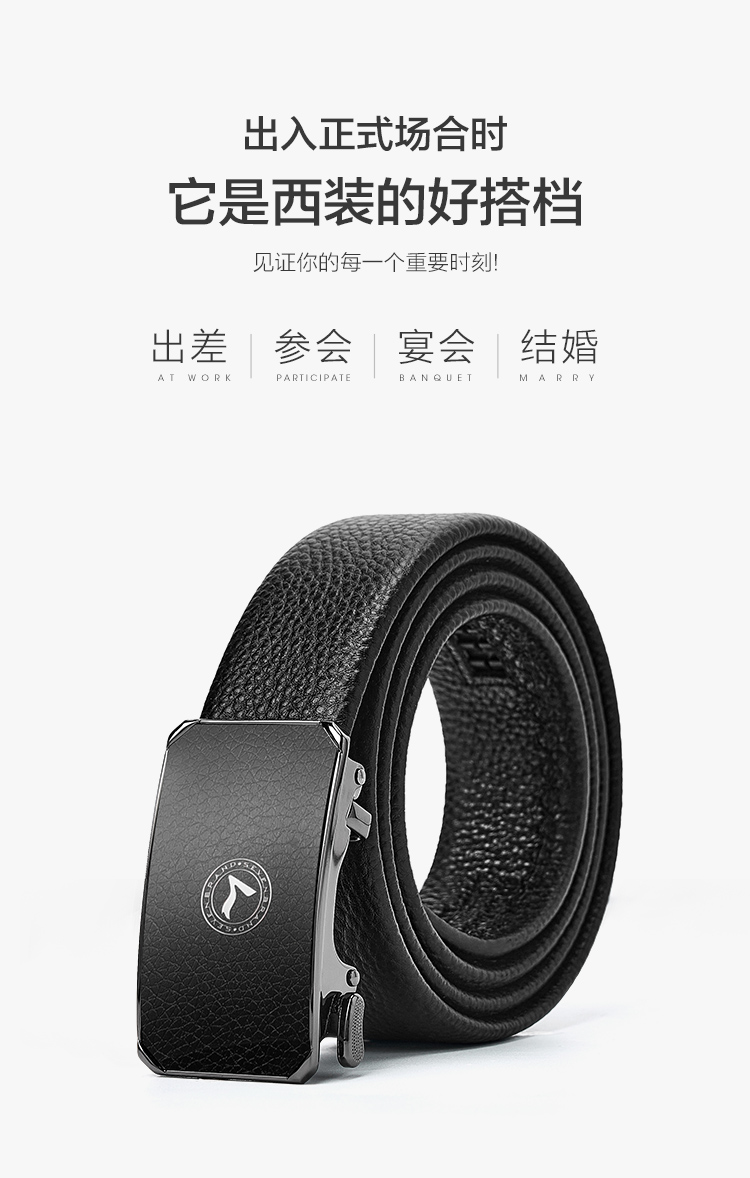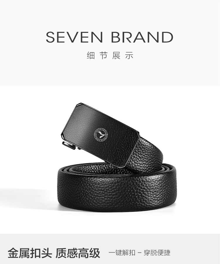 【婚礼季】柒牌2025新款男士皮带头层牛皮真皮自动扣时尚商务休闲荔枝纹腰带129P70140