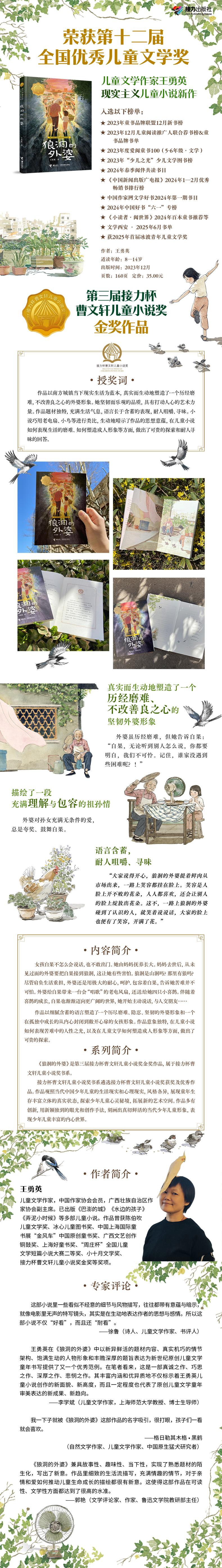 作品以细腻含蓄的语言塑造了一个历尽磨难、隐忍、坚韧的外婆形象和一个在孤独中成长的从内心封闭到敞开心扉的女孩形象。作品意象独特,在儿童小说如何表现苦难中的人性之光,以及在儿童文学如何塑造成人形象等方面,做出了可贵的探索。