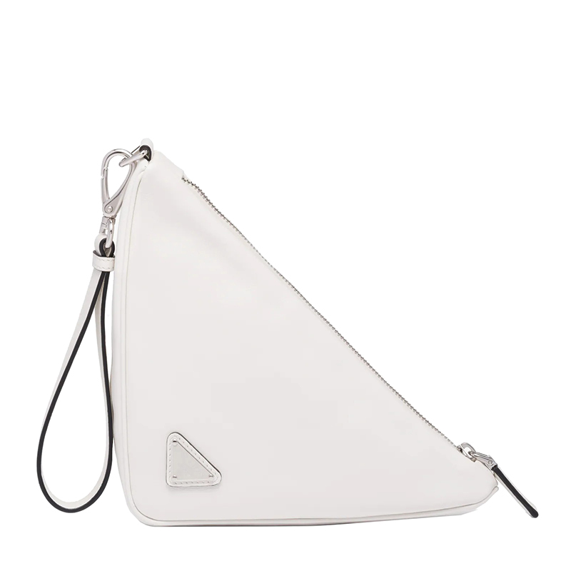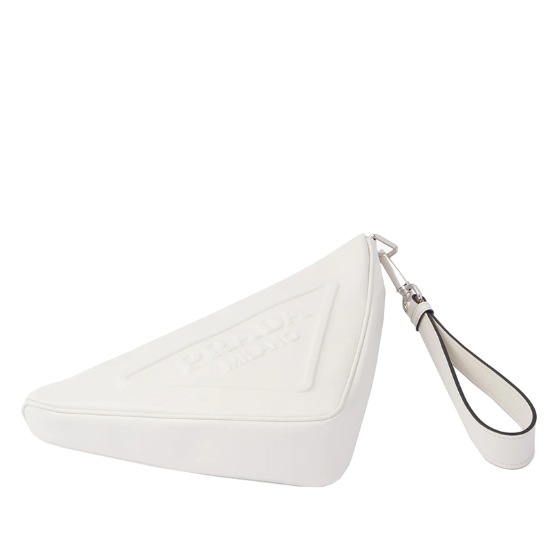 【包税】PRADA/普拉达 21年秋冬新款 女士白色皮革拉链开合徽标附腕带三角形手袋手拿包1NE039_2BYA_F0009