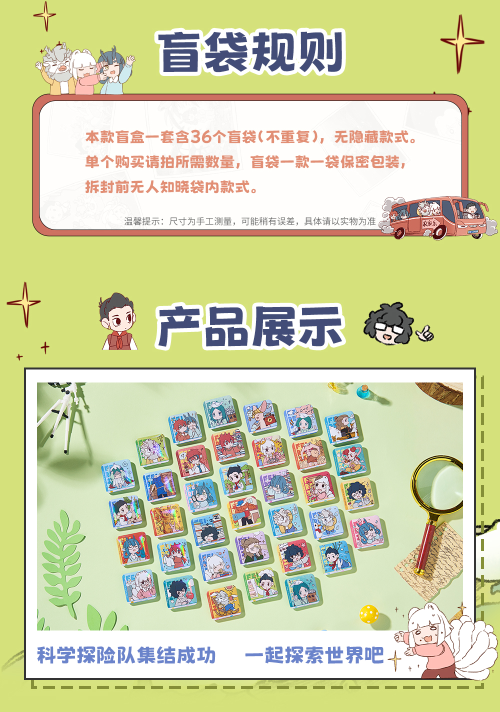 《非人哉官方店》科学探险队马口铁徽章盲盒单人款动漫周边吧唧胸针