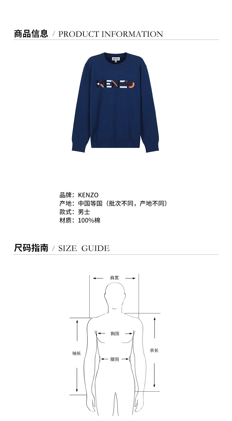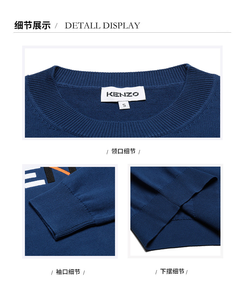 KENZO/高田贤三【22春夏新款】男士棉质圆领长袖针织衫毛衣LOGO刺绣 5PU694 3LA