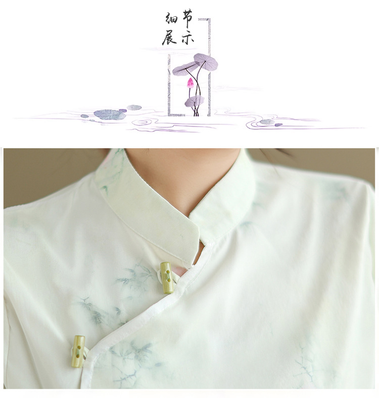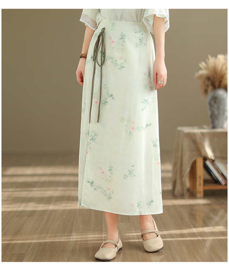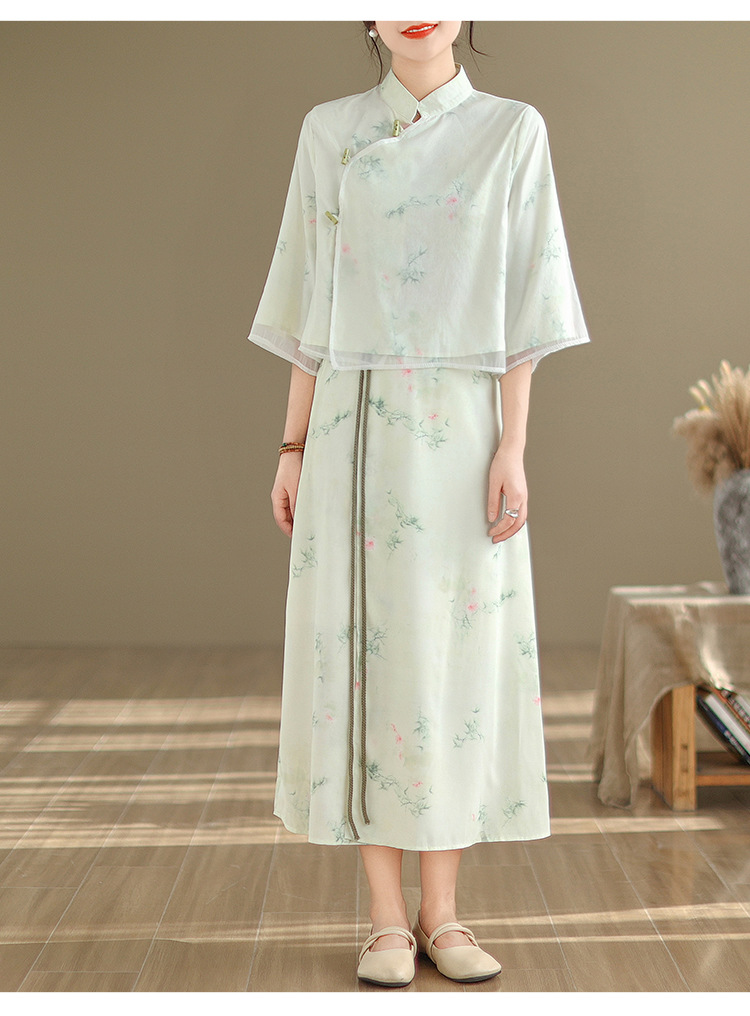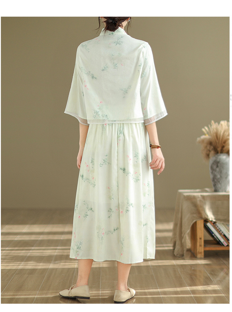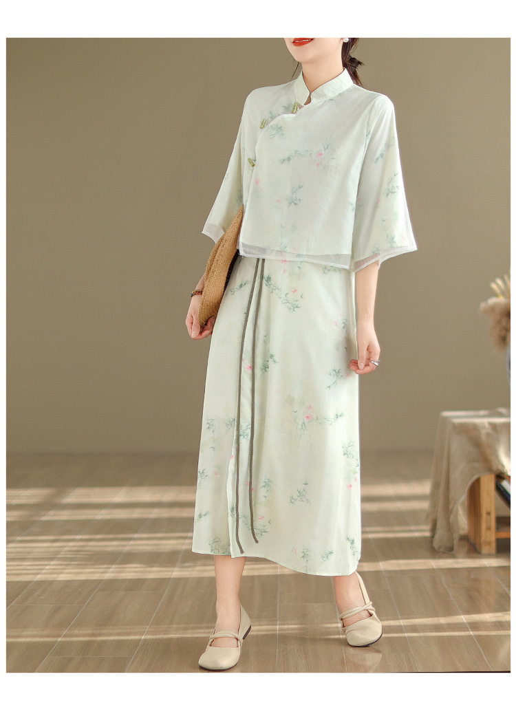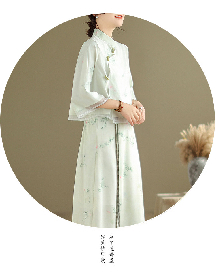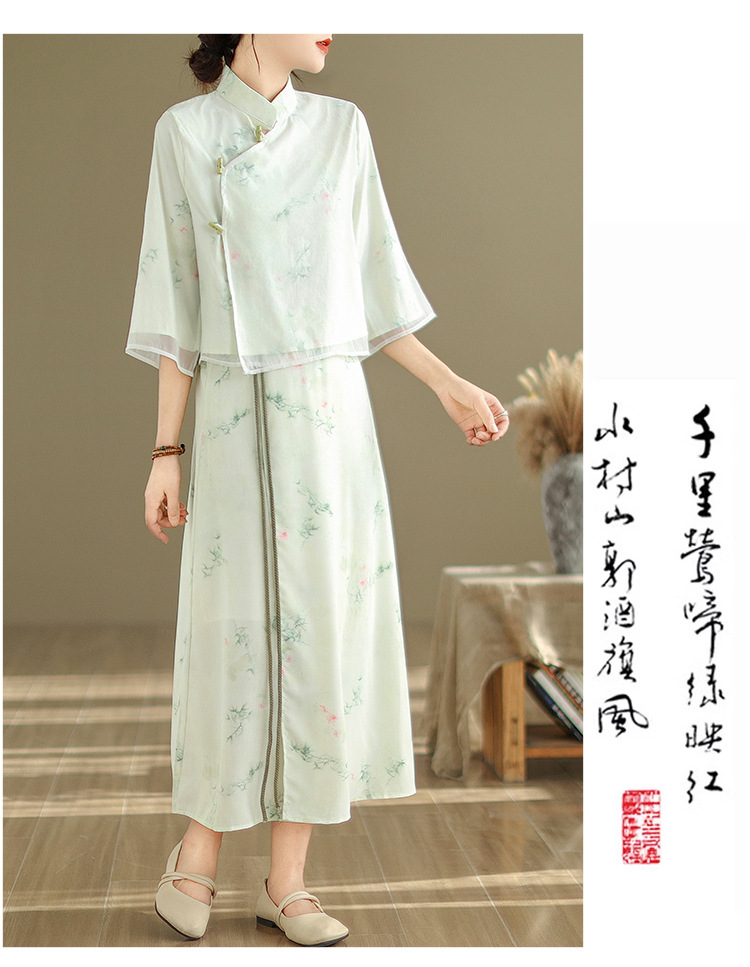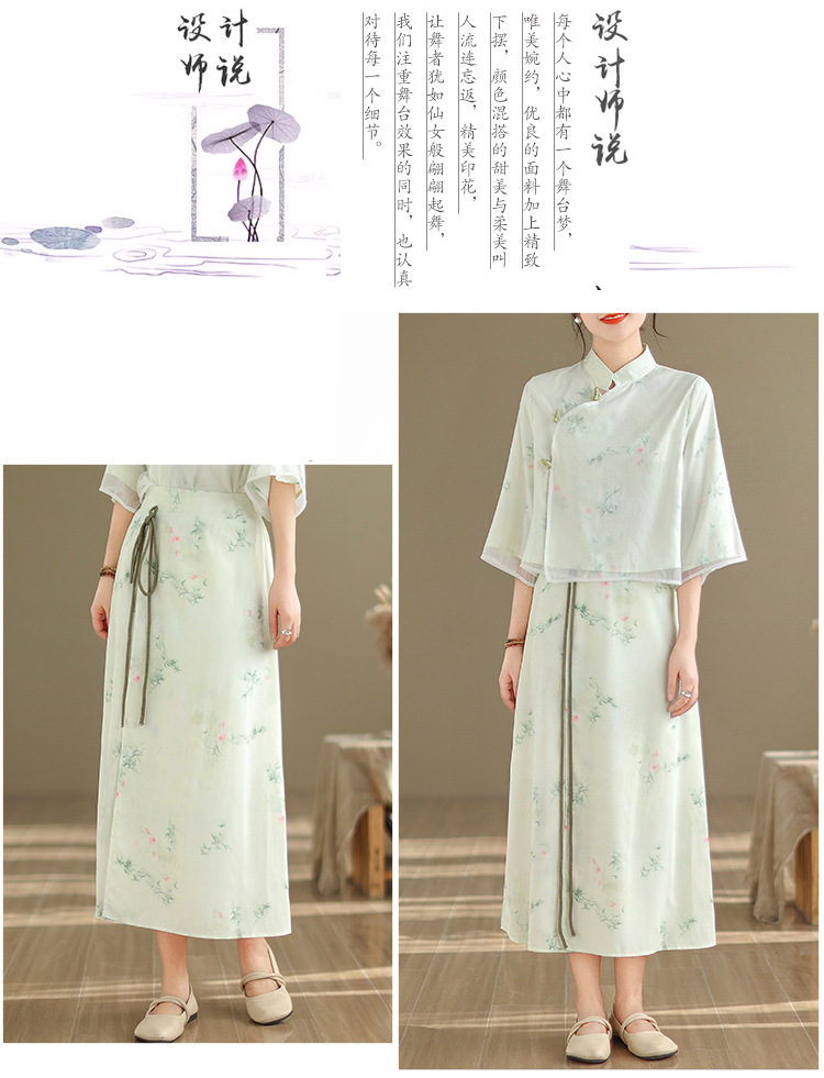 夏季新款,国风印花改良旗袍上衣+半身裙新中式汉服裙两件套装SJ-6632
