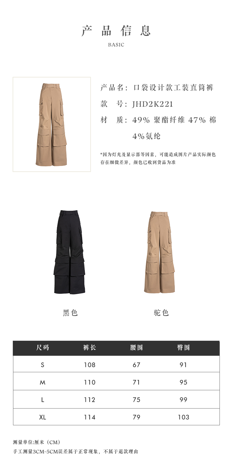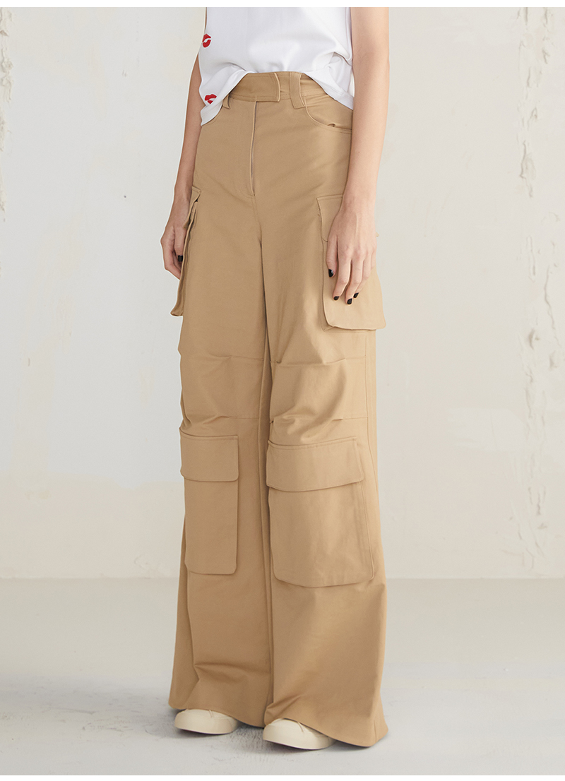 JUDYHUA 口袋设计款工装直筒裤
