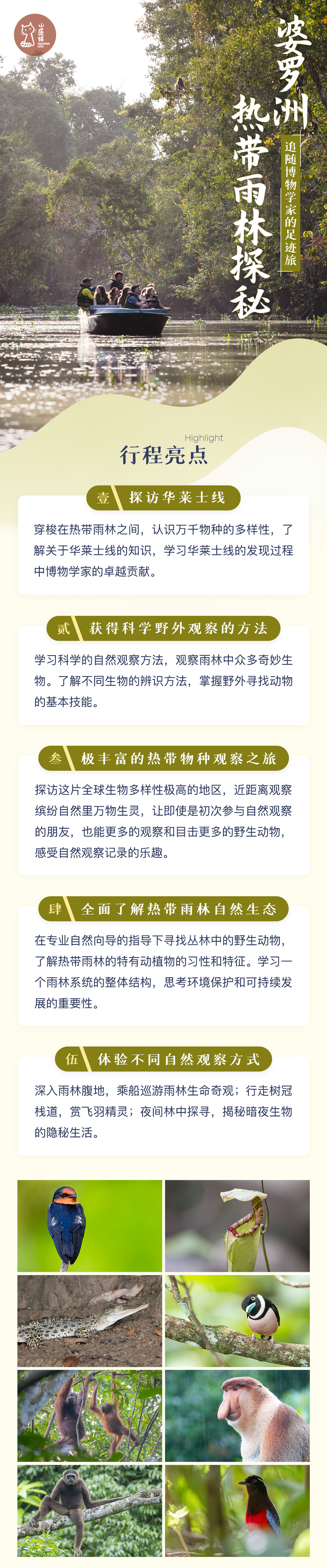 长鼻猴、东婆罗洲灰长臂猿、马来犀鸟等物种