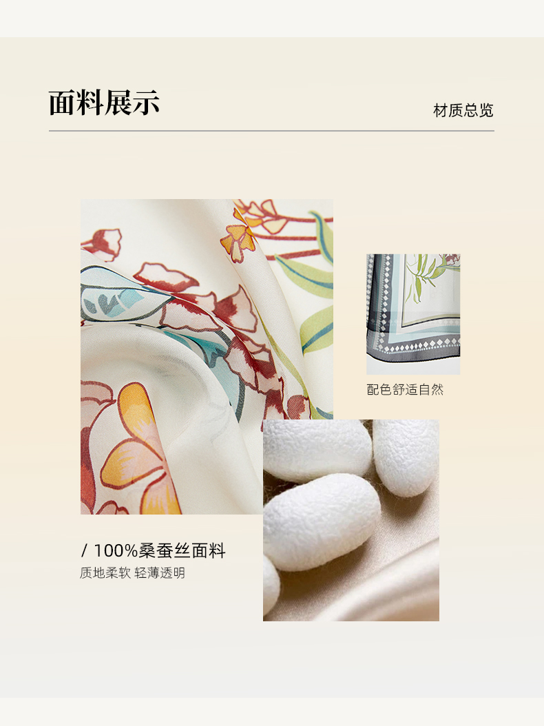 万事利“玉兰赋”63厘米双面印花真丝中方巾