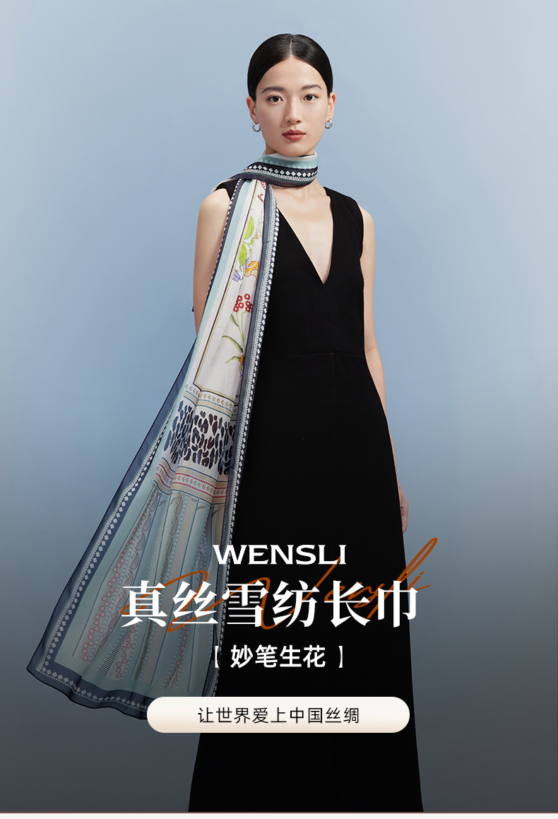 万事利“妙笔生花”真丝长巾纱巾