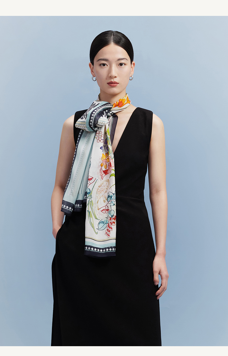 万事利“倾城时代”88厘米双面印花真丝大方巾
