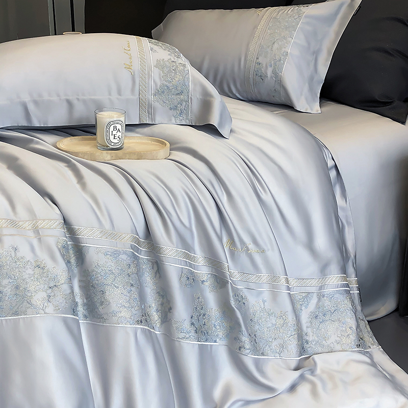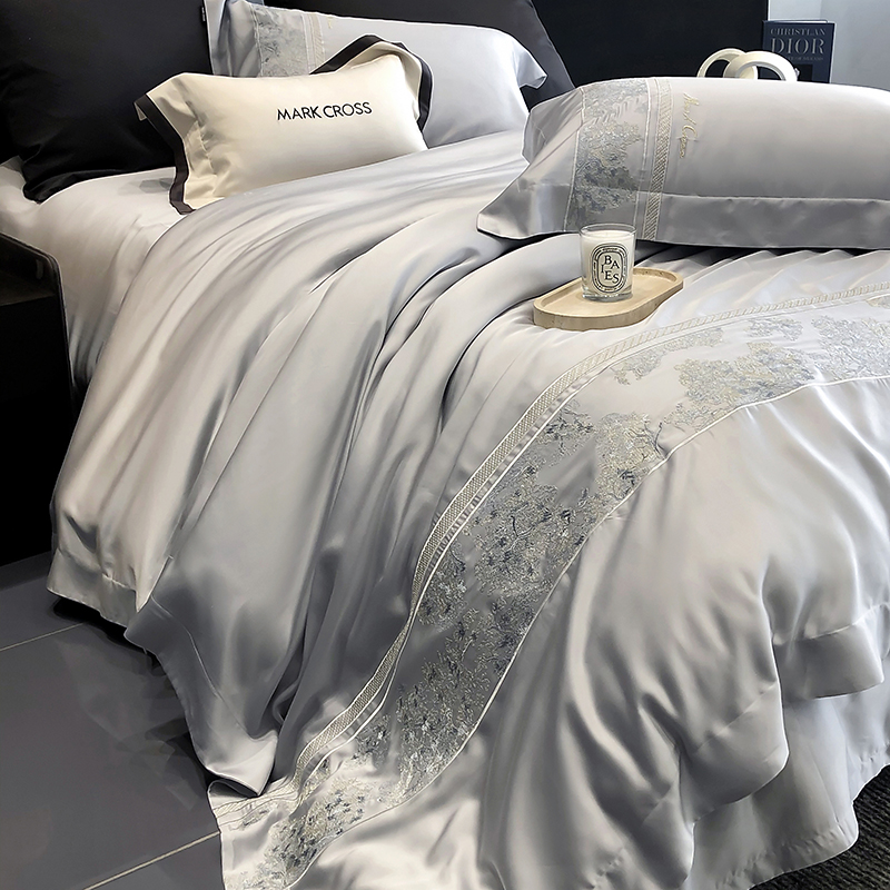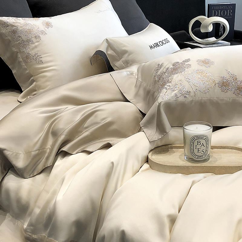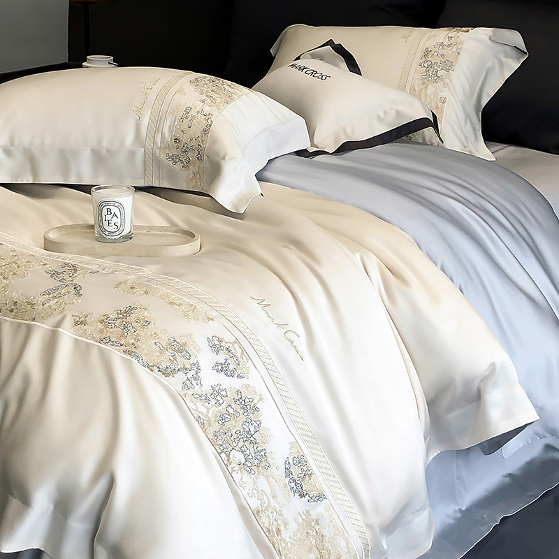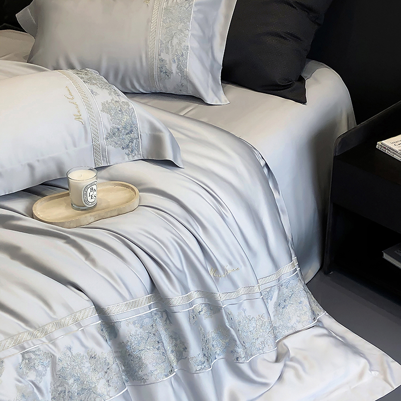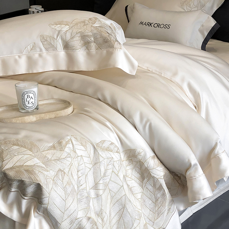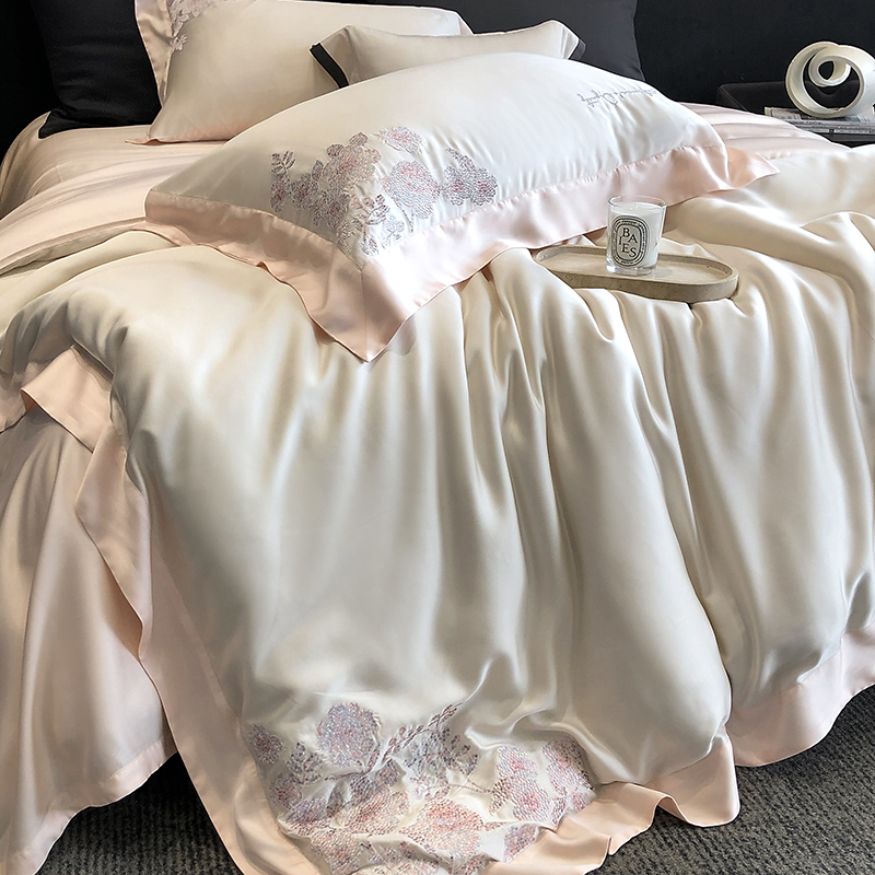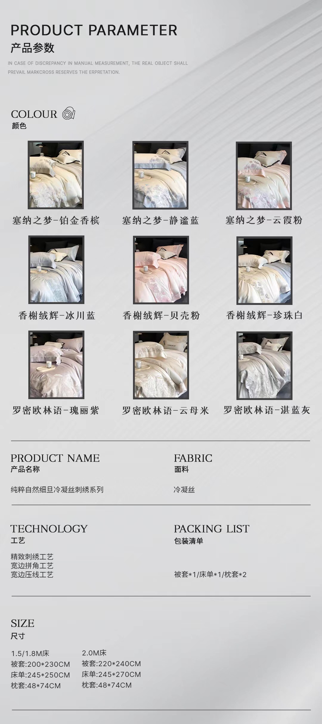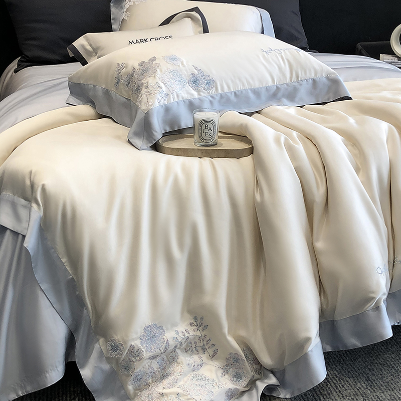 轻奢纯粹自然细旦冷凝丝刺绣四件套 细旦莱赛尔凉感纤维套件