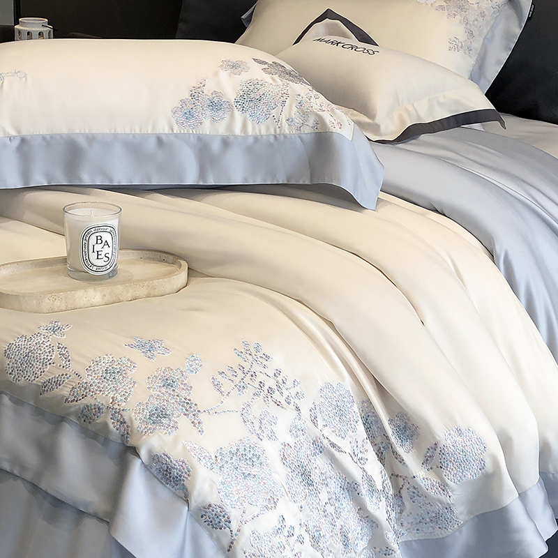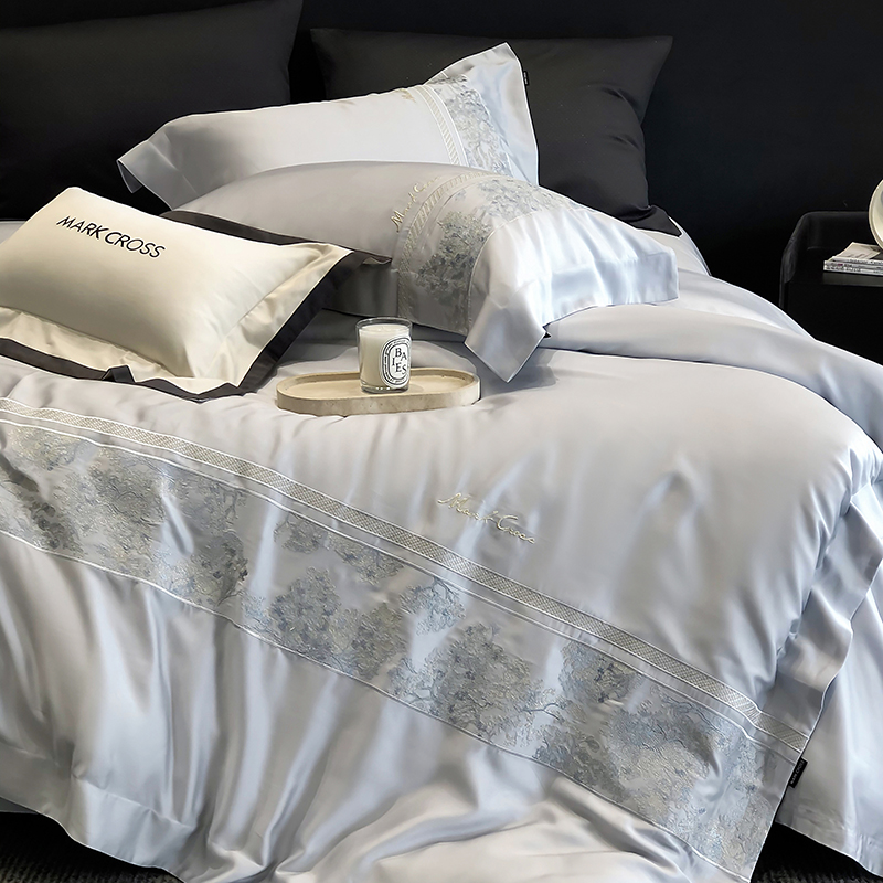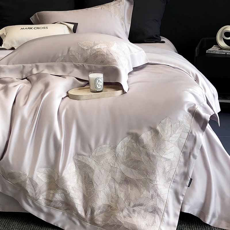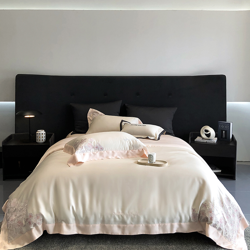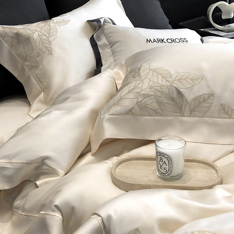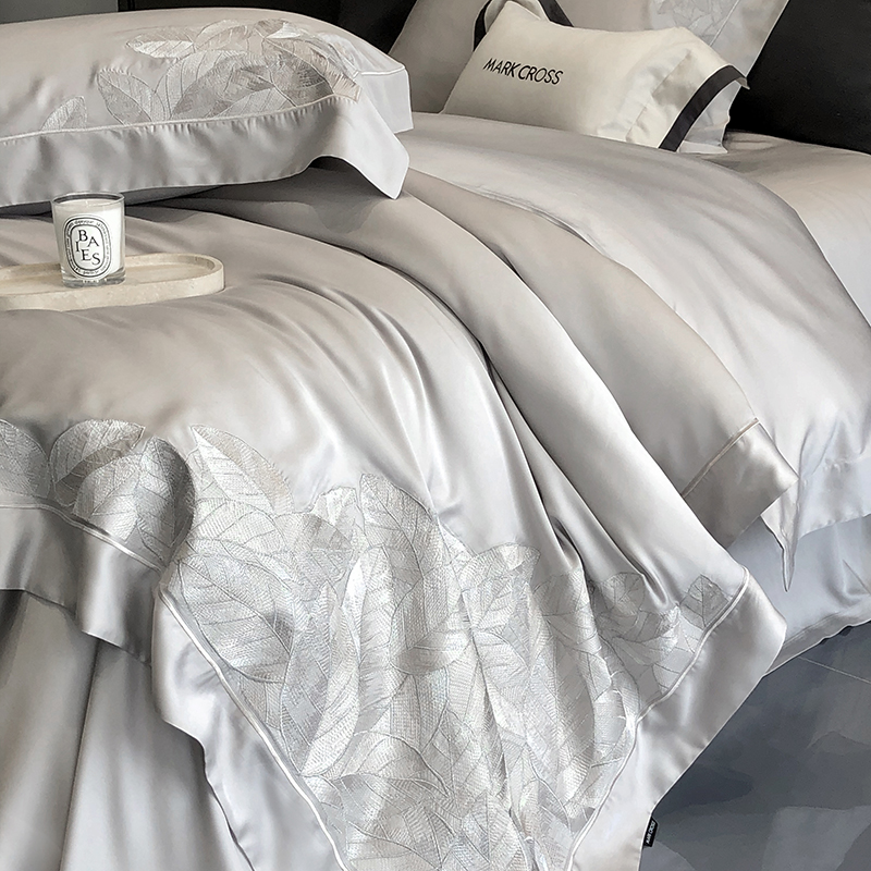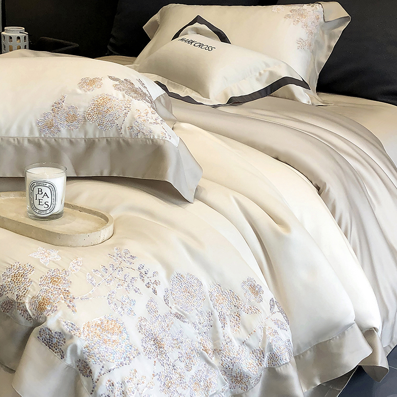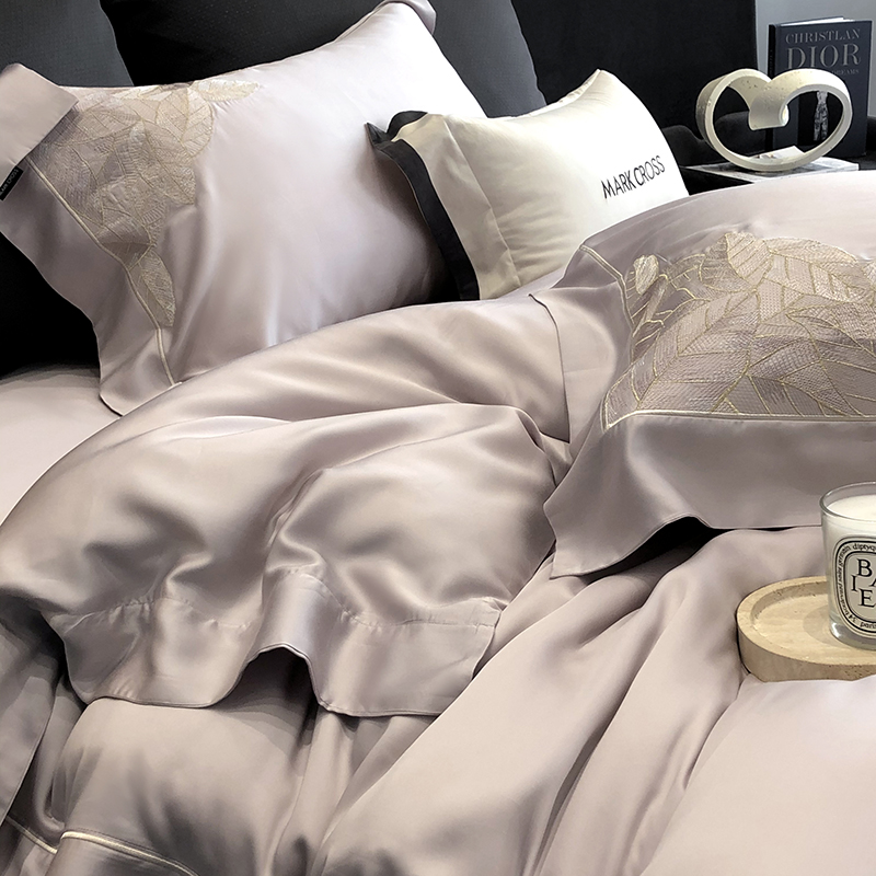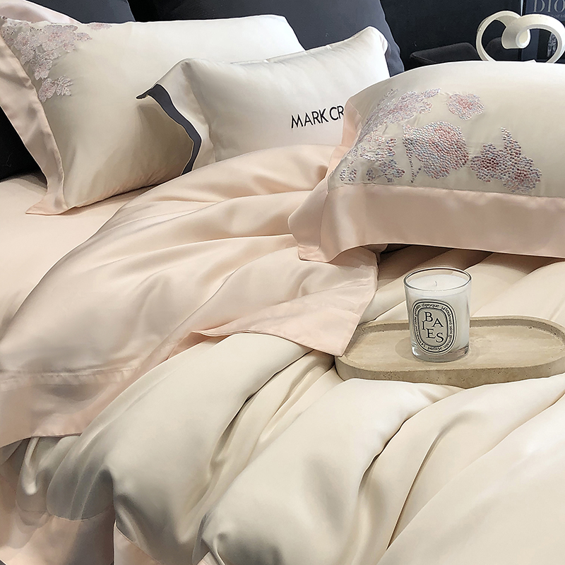 轻奢纯粹自然细旦冷凝丝刺绣四件套 细旦莱赛尔凉感纤维套件