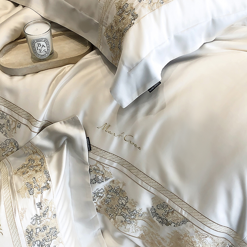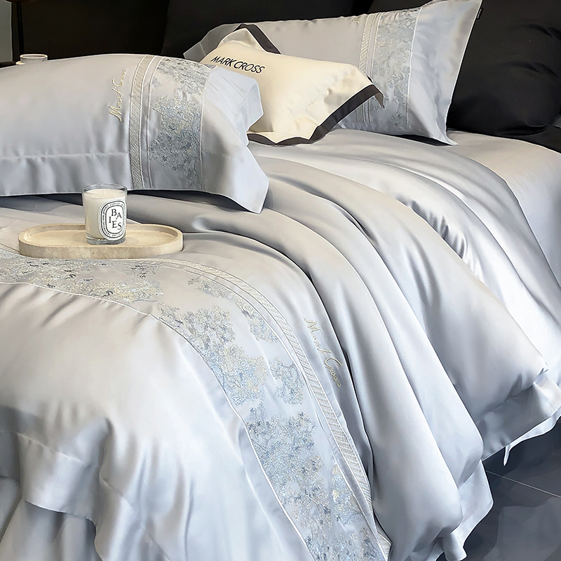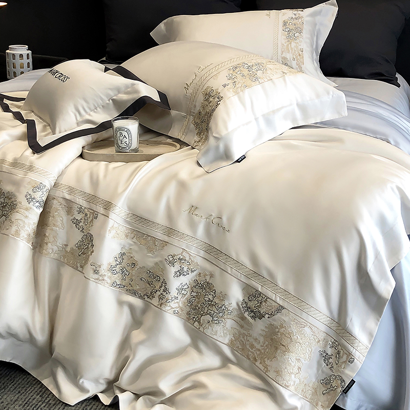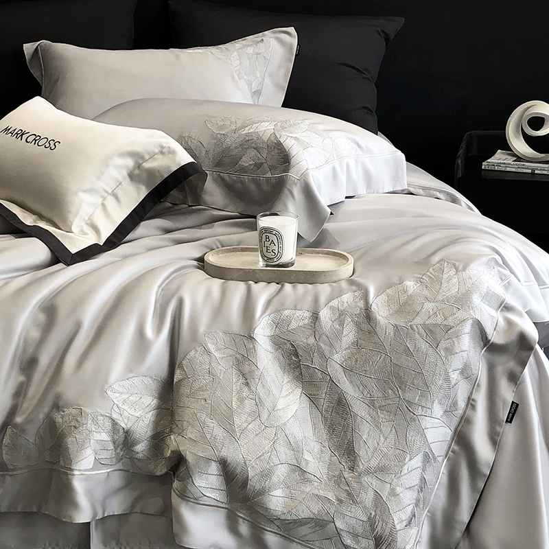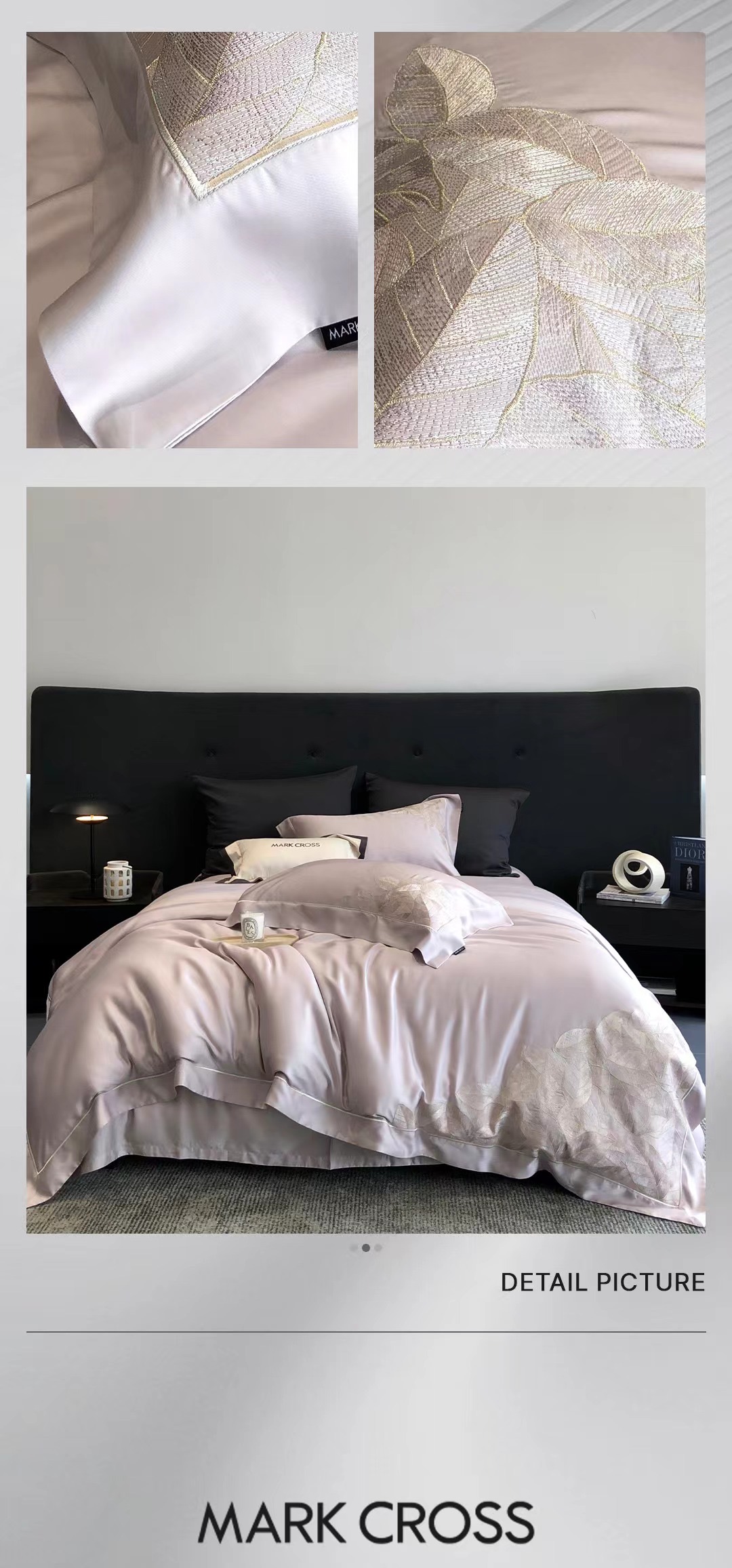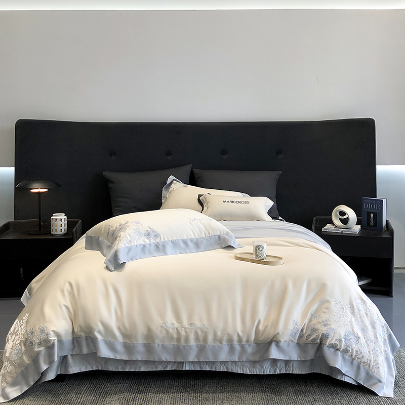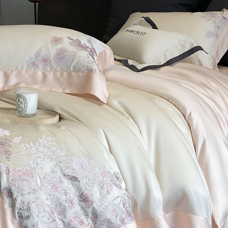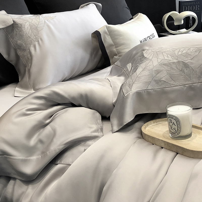 轻奢纯粹自然细旦冷凝丝刺绣四件套 细旦莱赛尔凉感纤维套件
