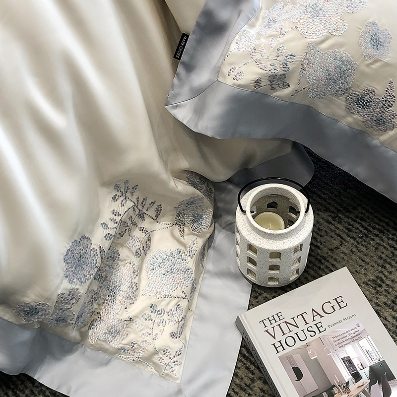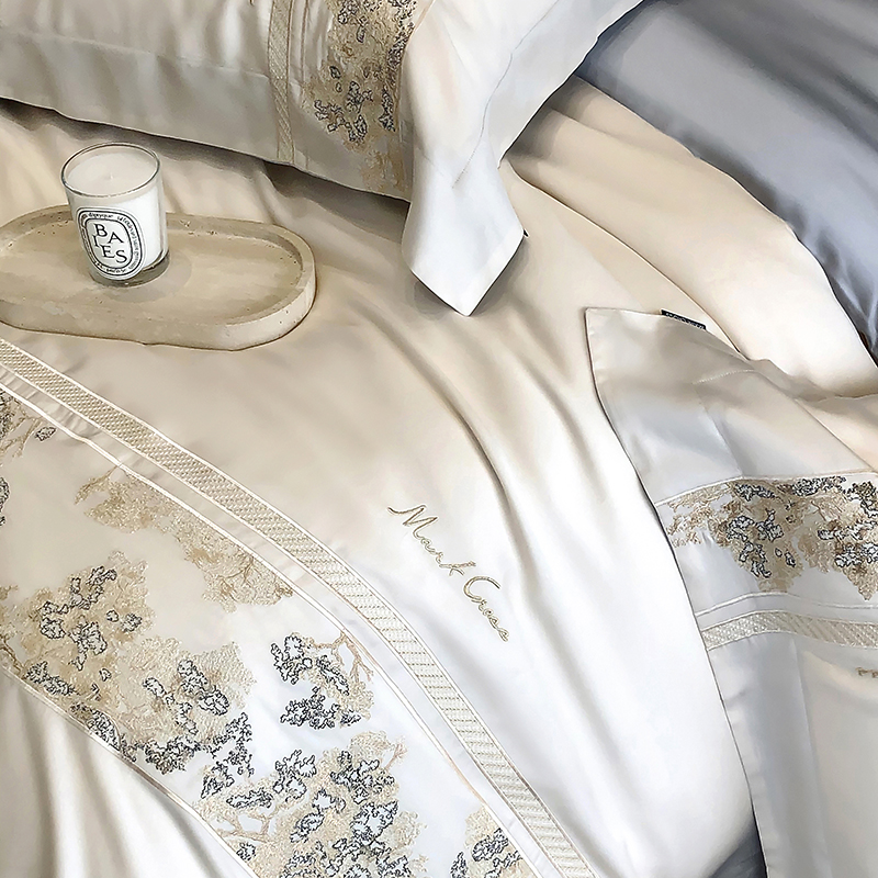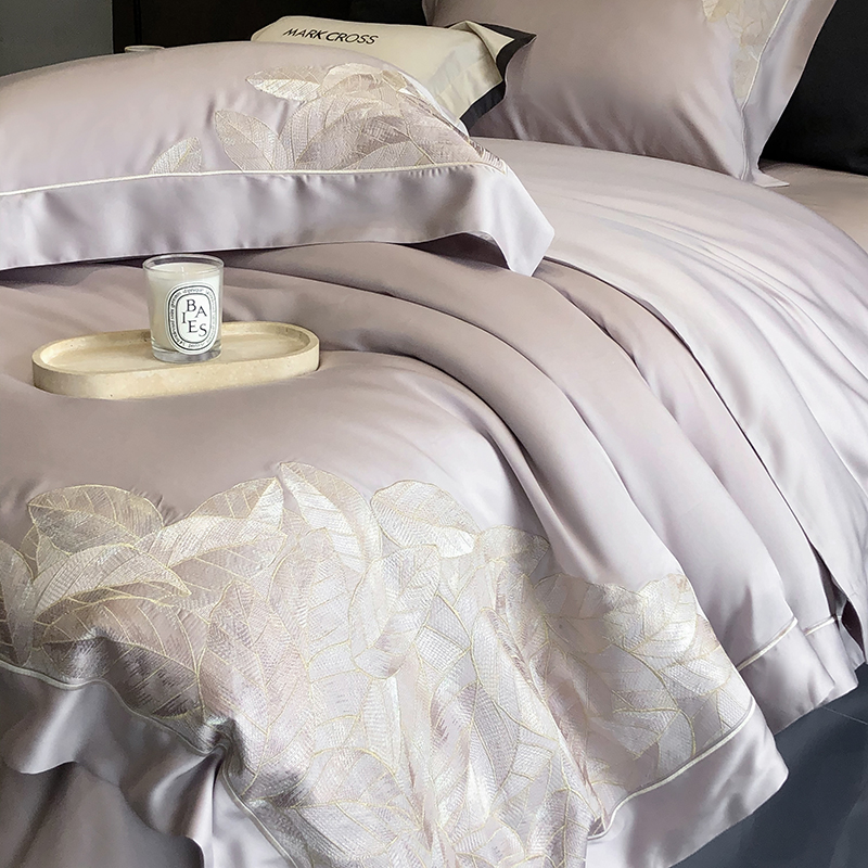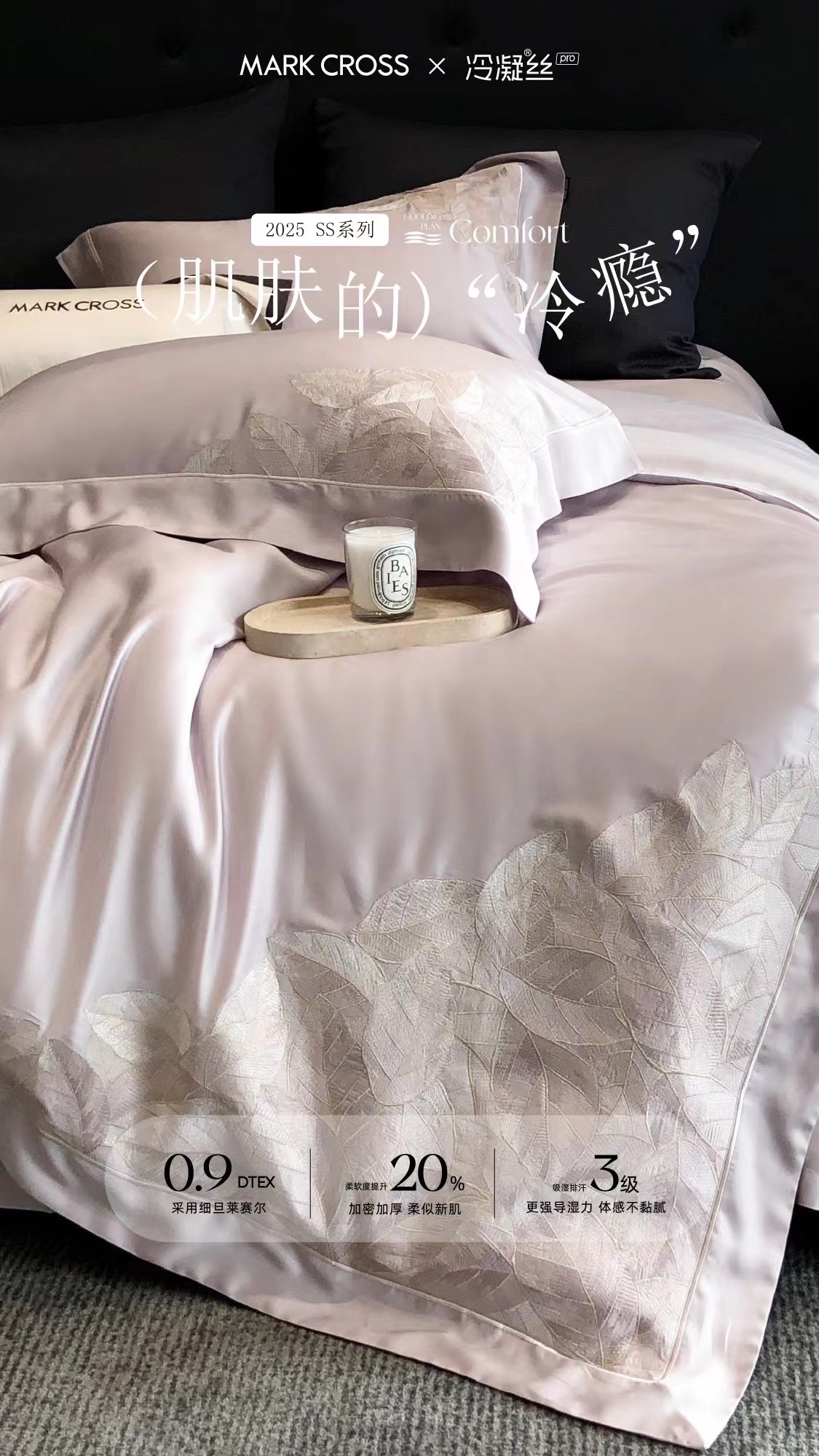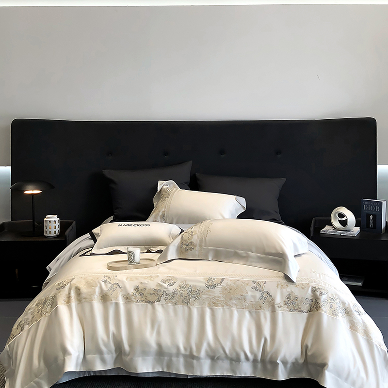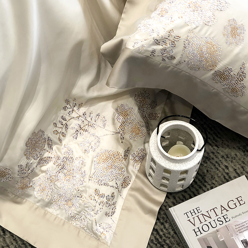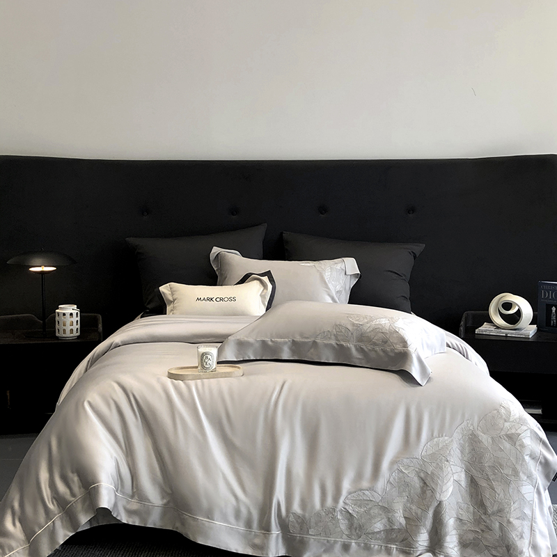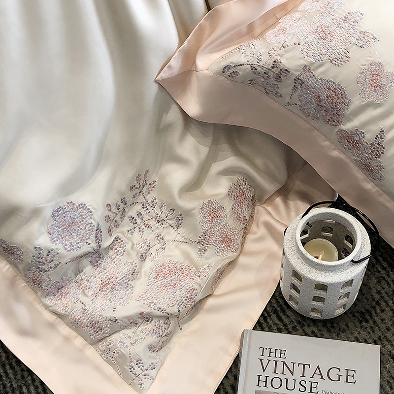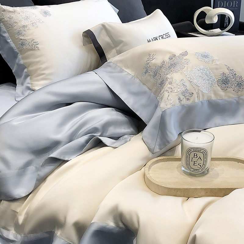 轻奢纯粹自然细旦冷凝丝刺绣四件套 细旦莱赛尔凉感纤维套件