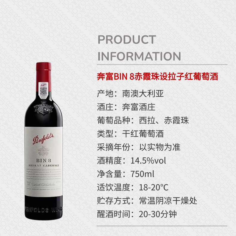 奔富BIN 8赤霞珠设拉子红葡萄酒 商品缩略图0 奔富BIN 8赤霞珠设拉子红葡萄酒 商品缩略图1