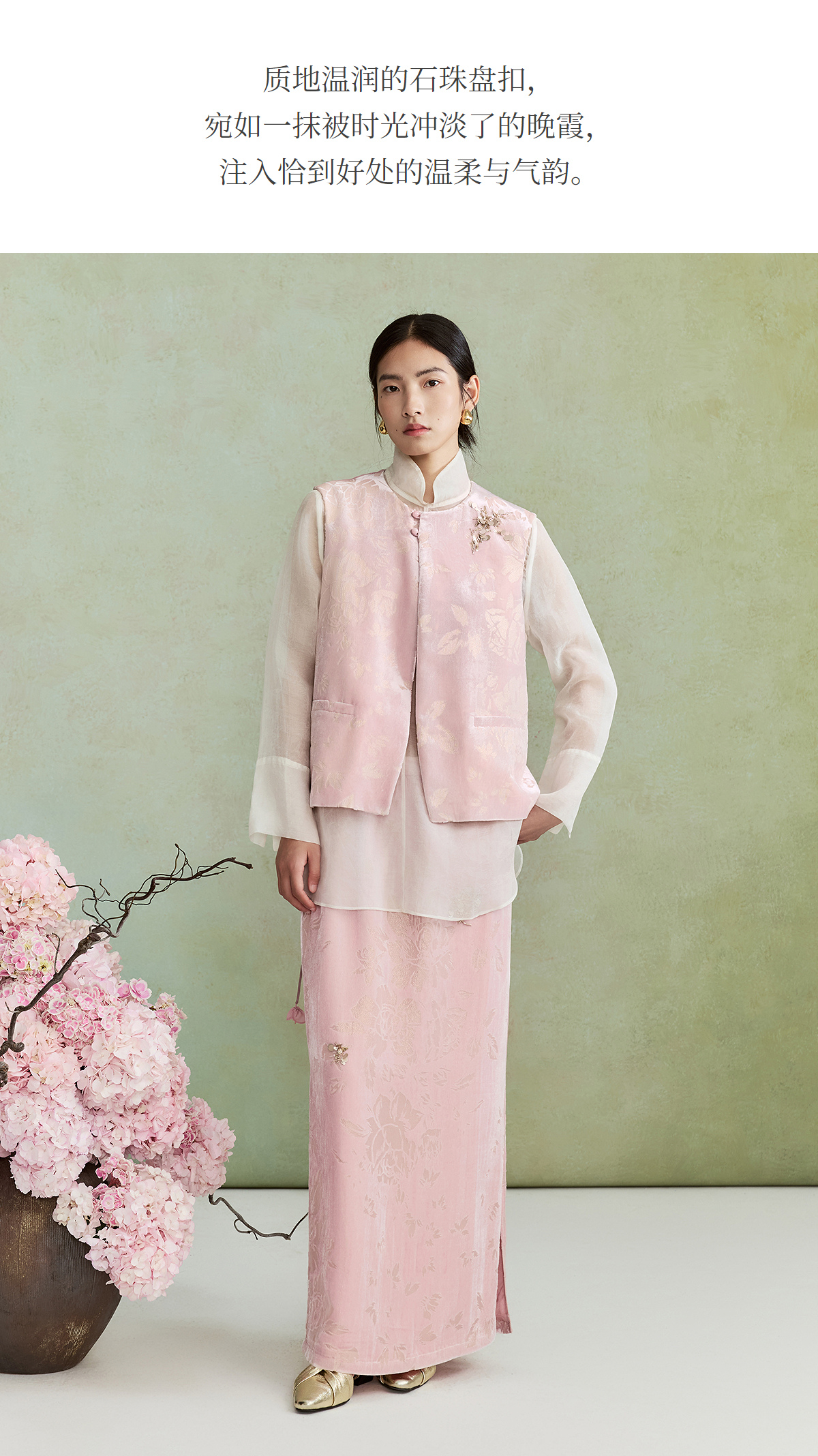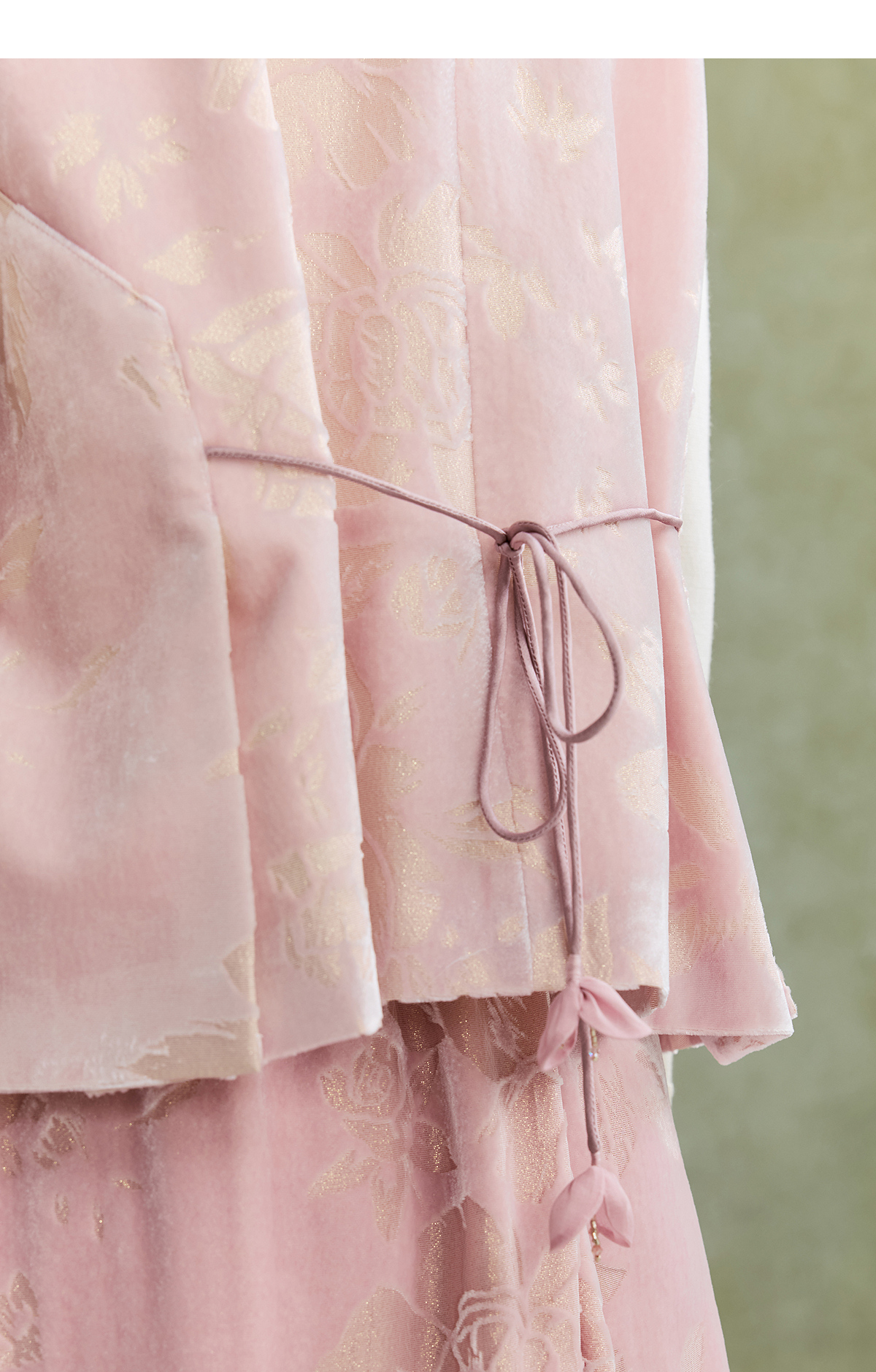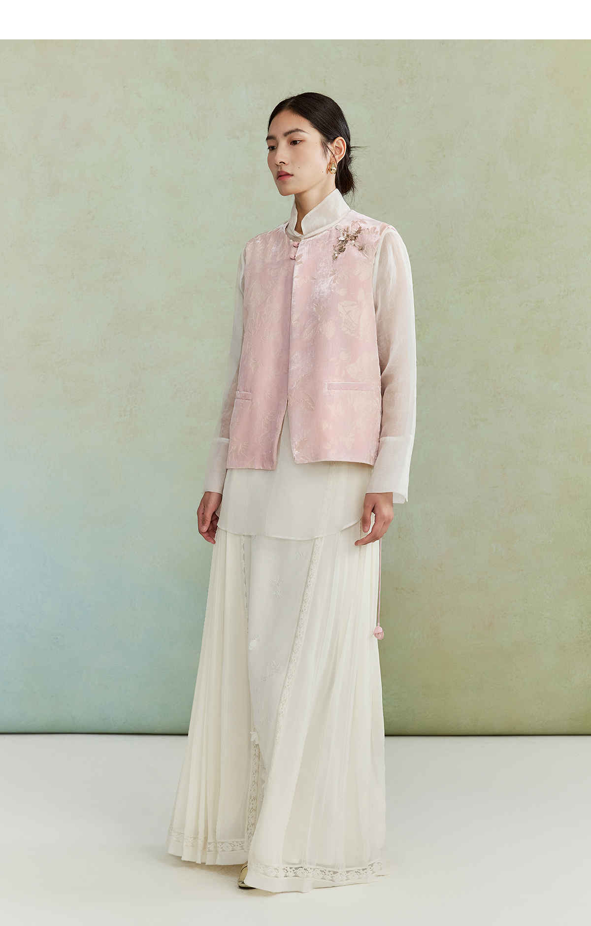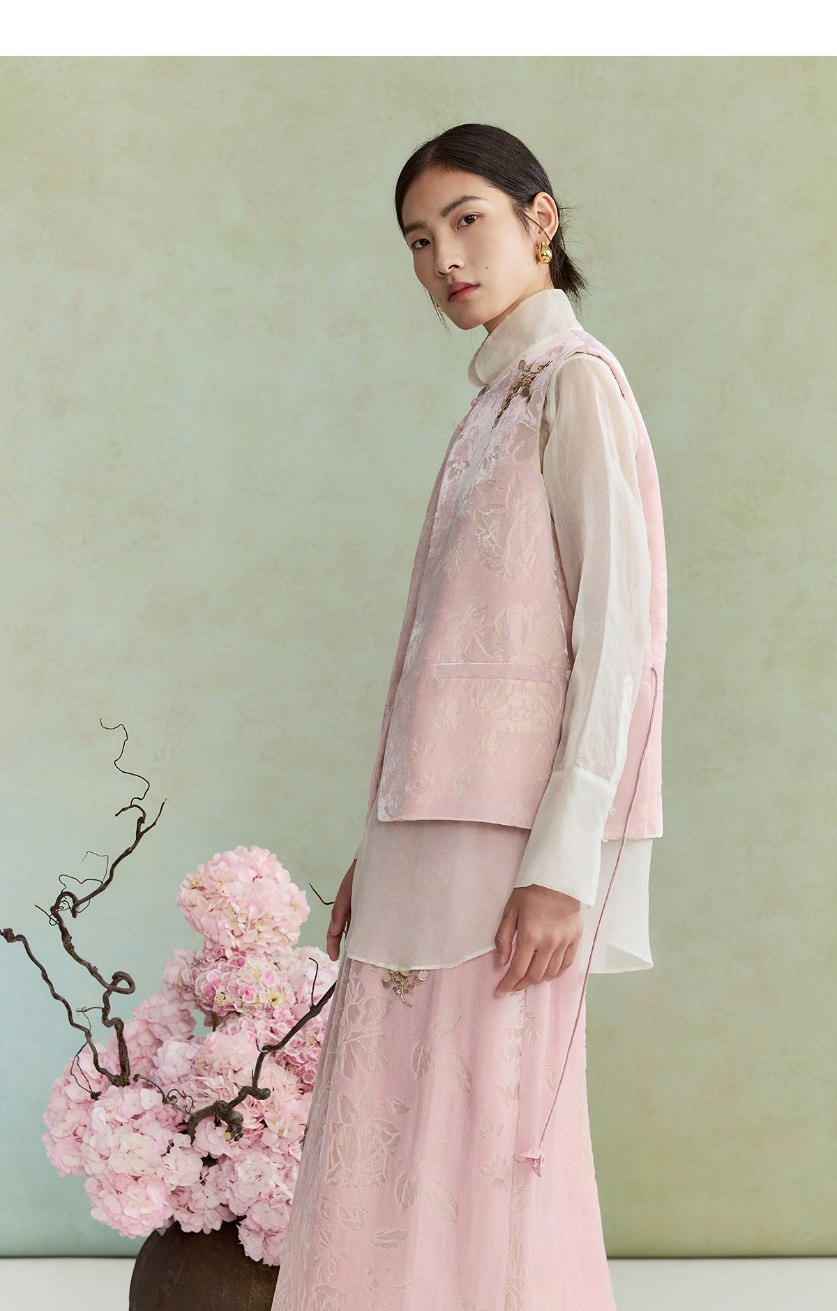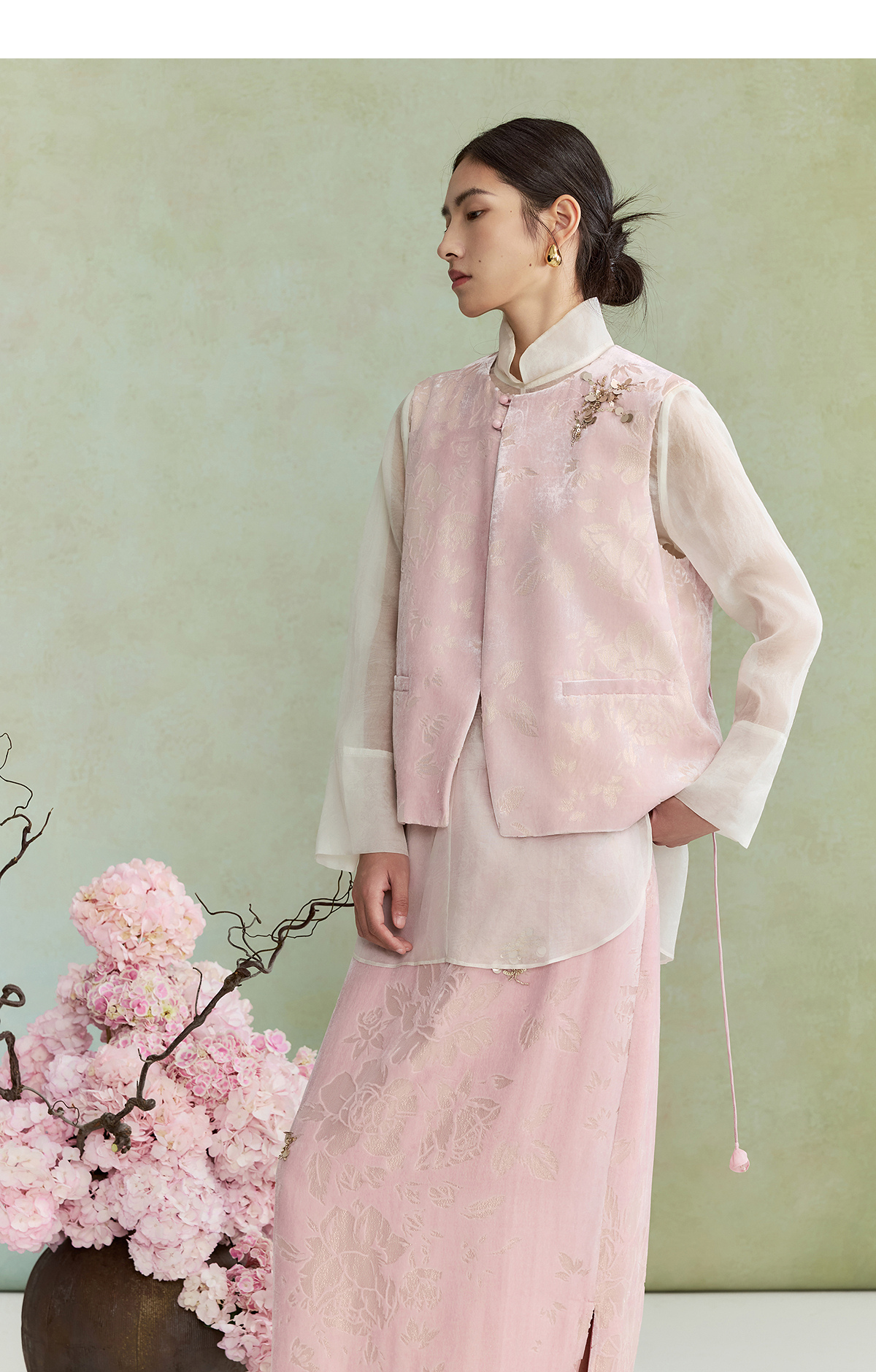 【林栖设计小店】(现货)粉色马甲新中式丝绒烧花钉珠绣花优雅2026早春新款外套女1961039