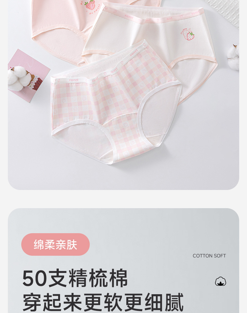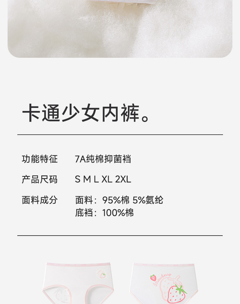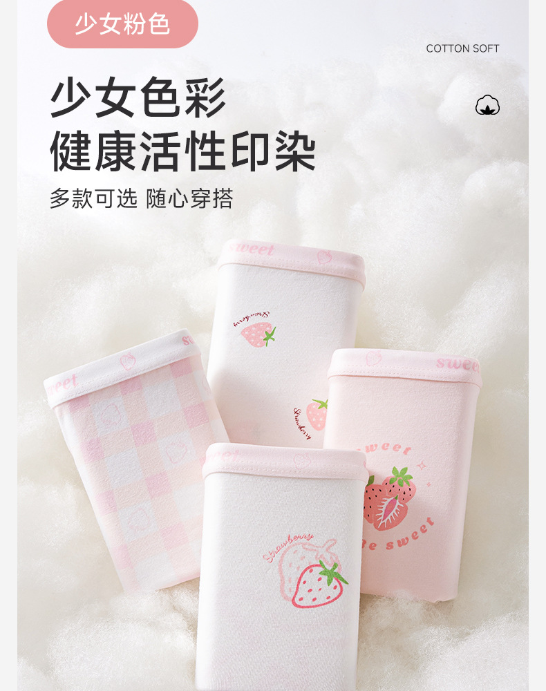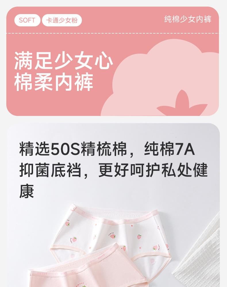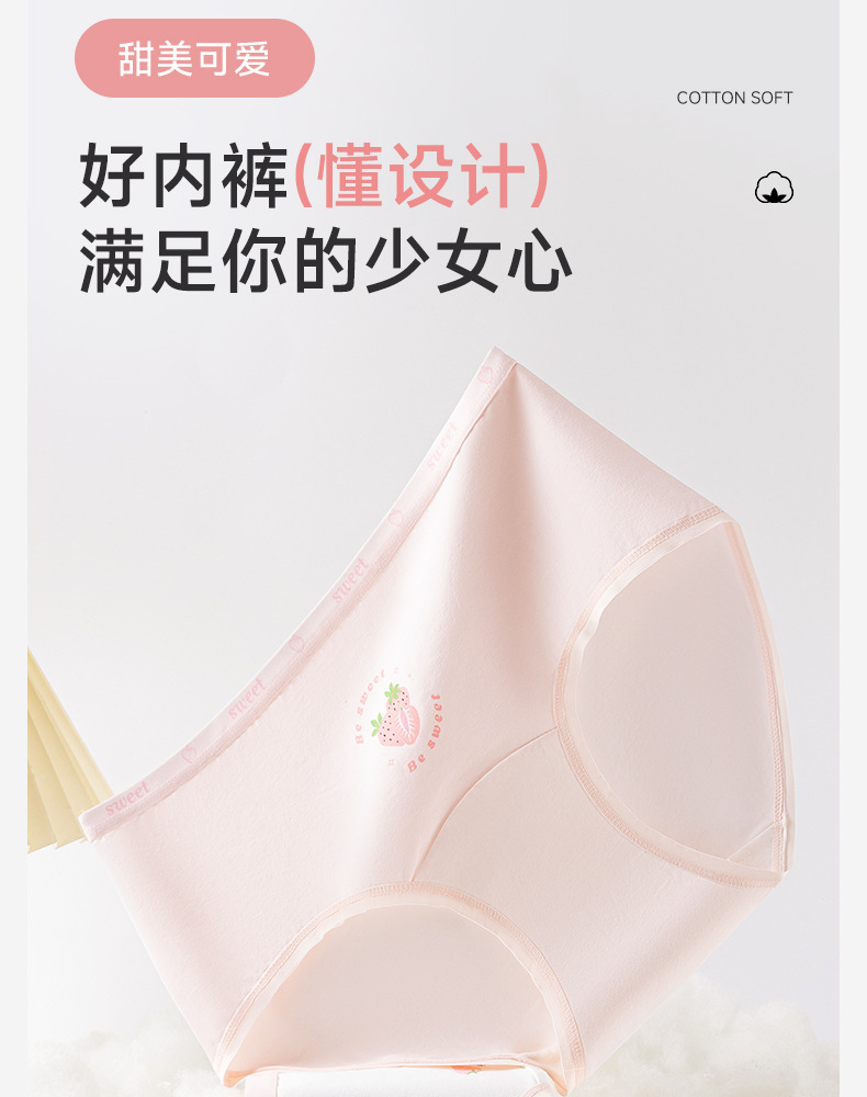 10-18岁5条A类精梳纯棉内裤 初中生7A抗菌全棉裆女生少女三角短裤