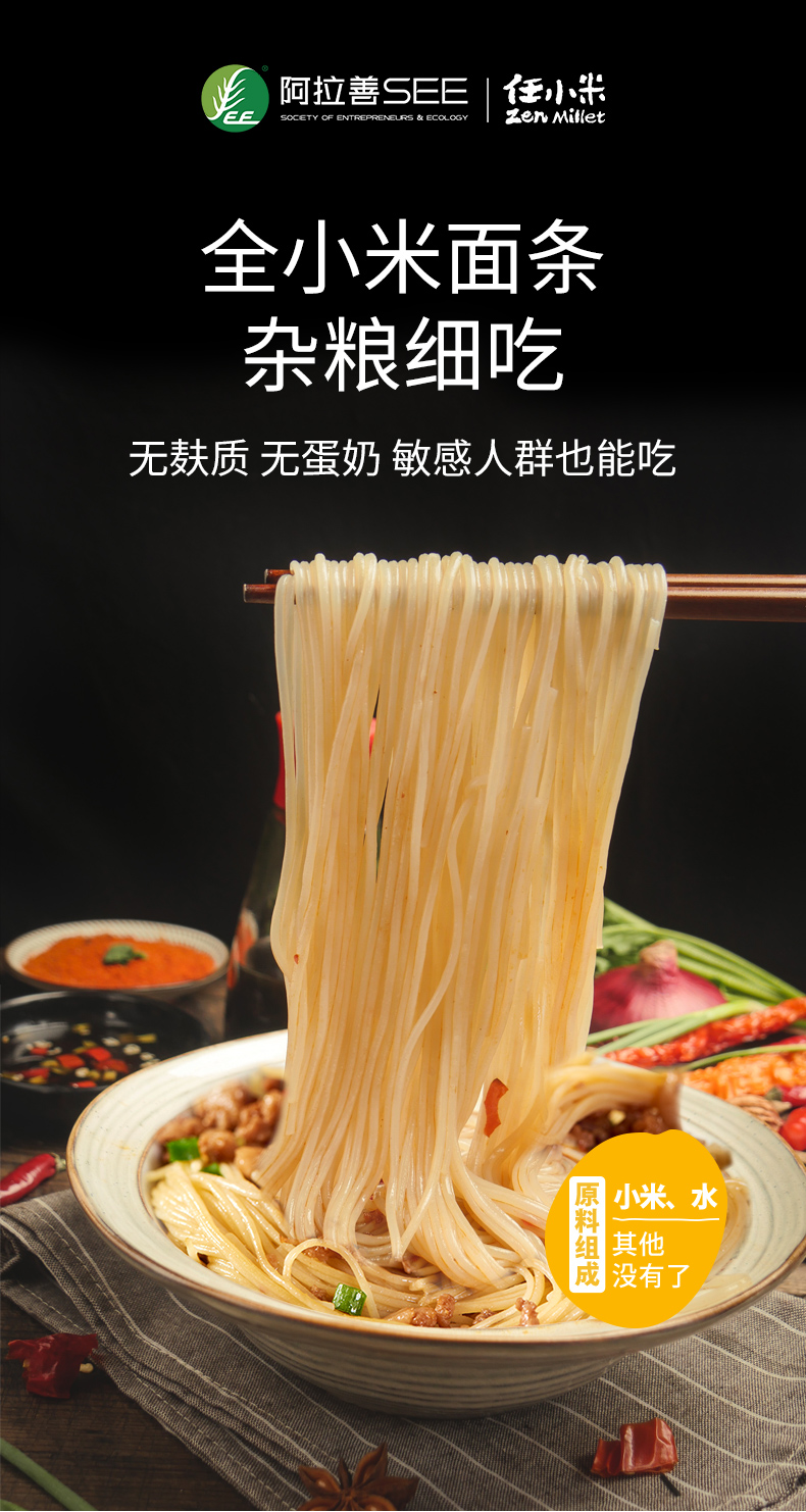 【冯站长精选】任小米早餐粗粮杂粮主食品无添加细面粗面速食无麸质纯小米面条2包