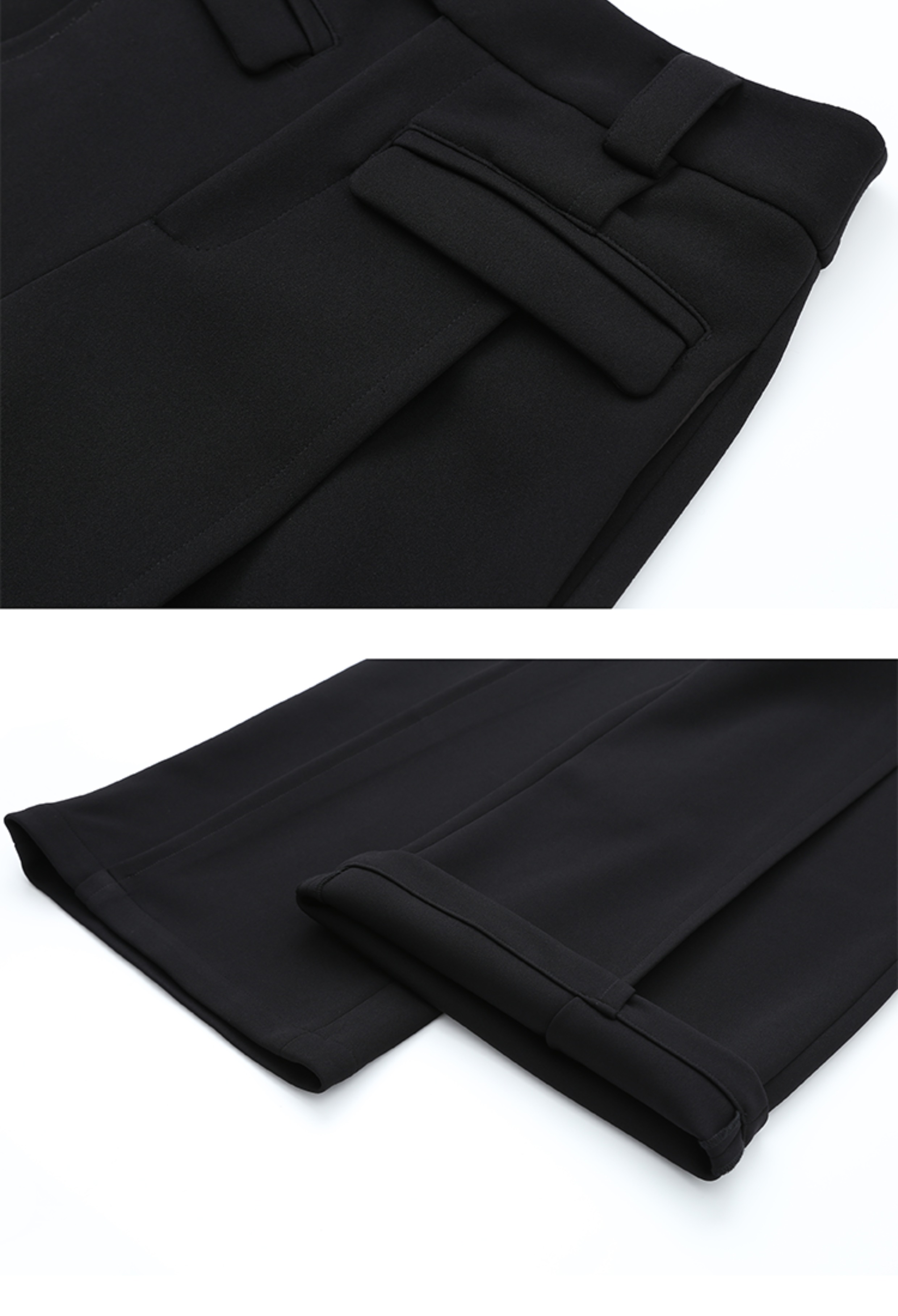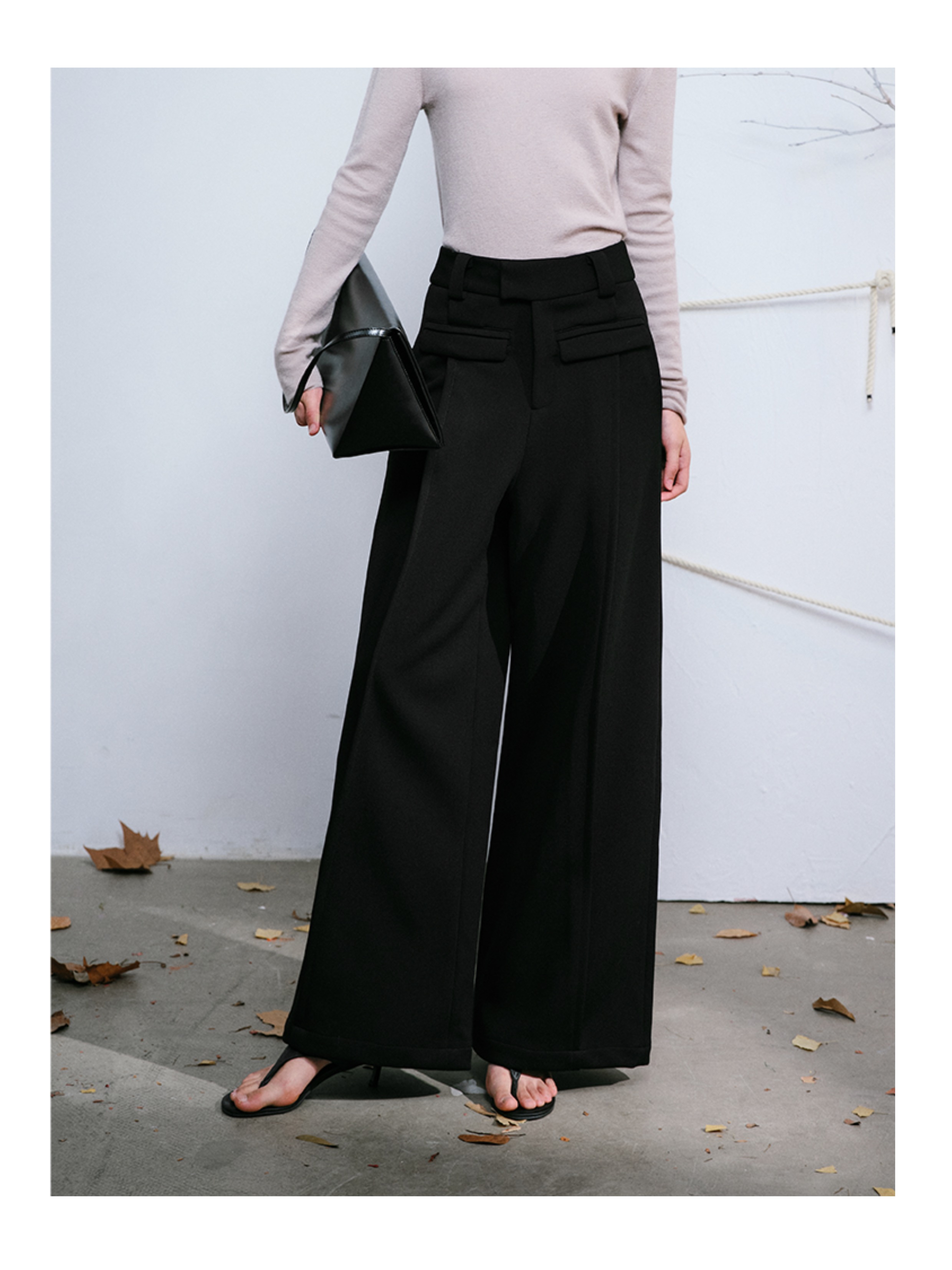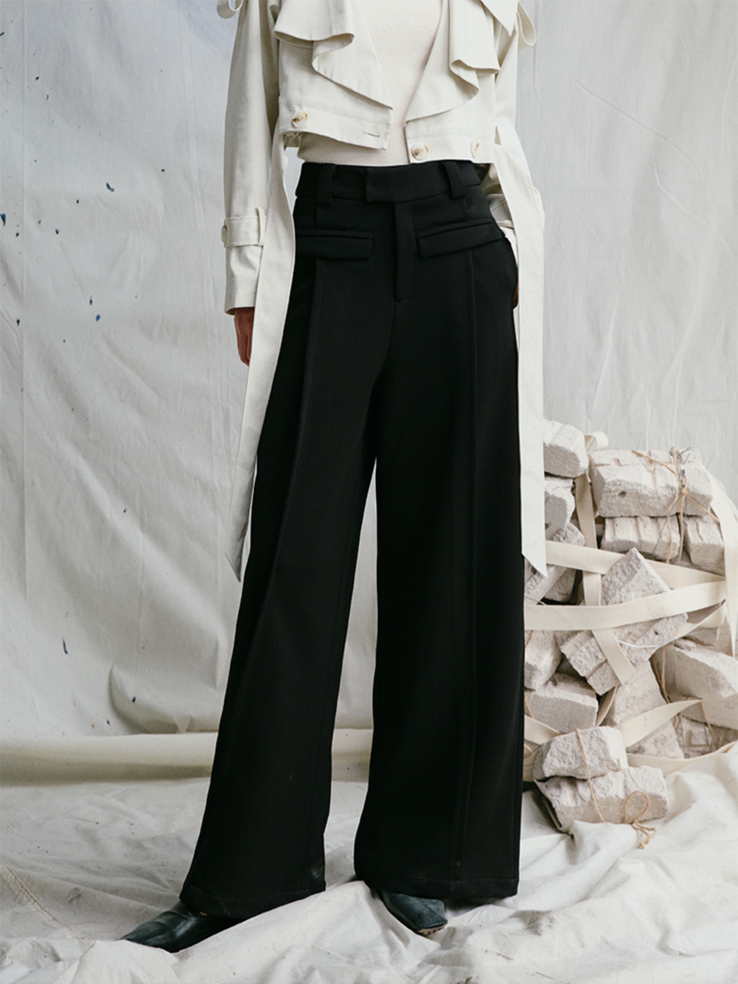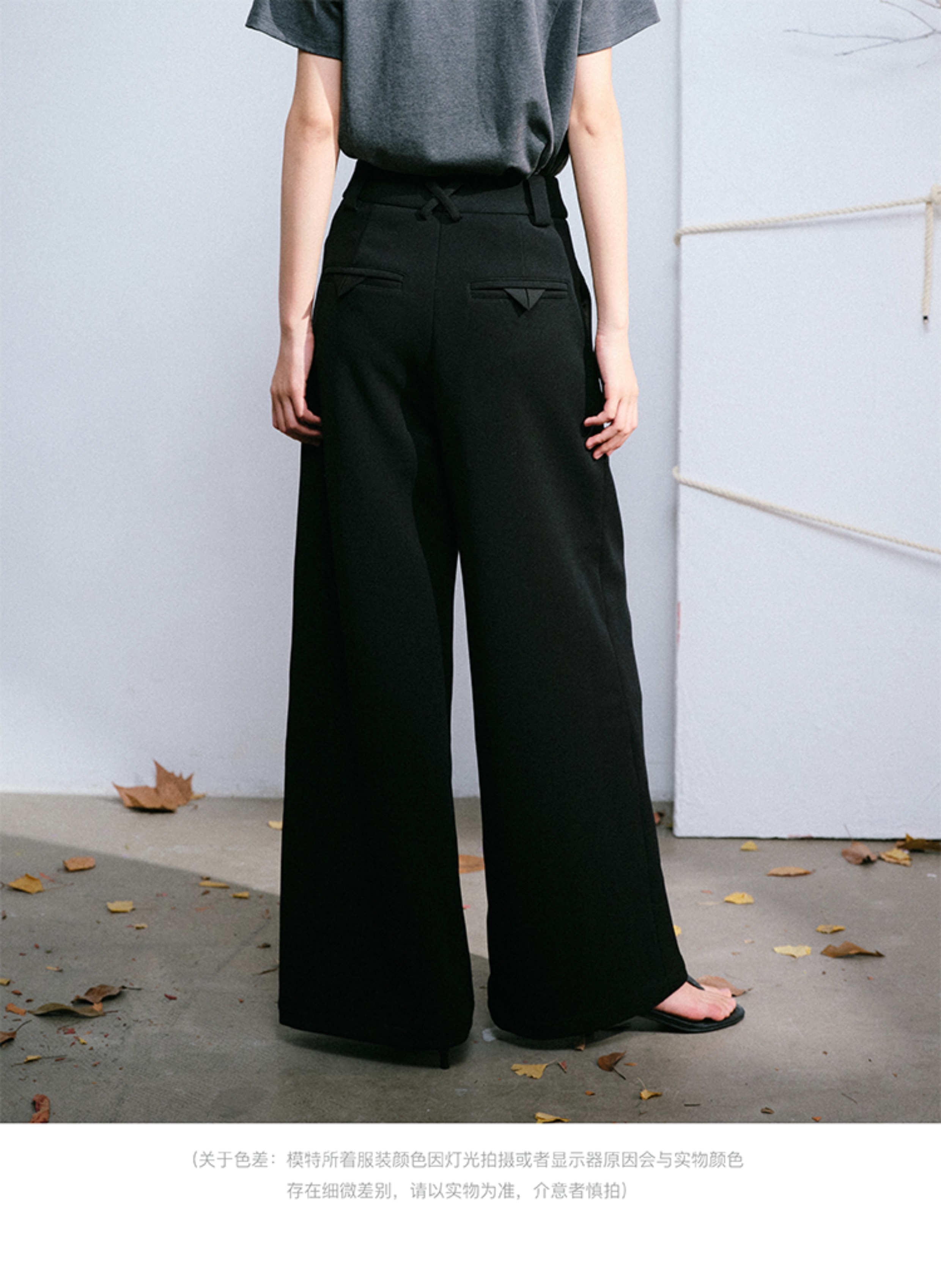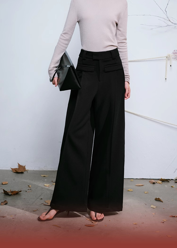 LIYIHAN 日本进口面料24秋乔其纱高腰直筒阔腿黑色西装裤子抽褶