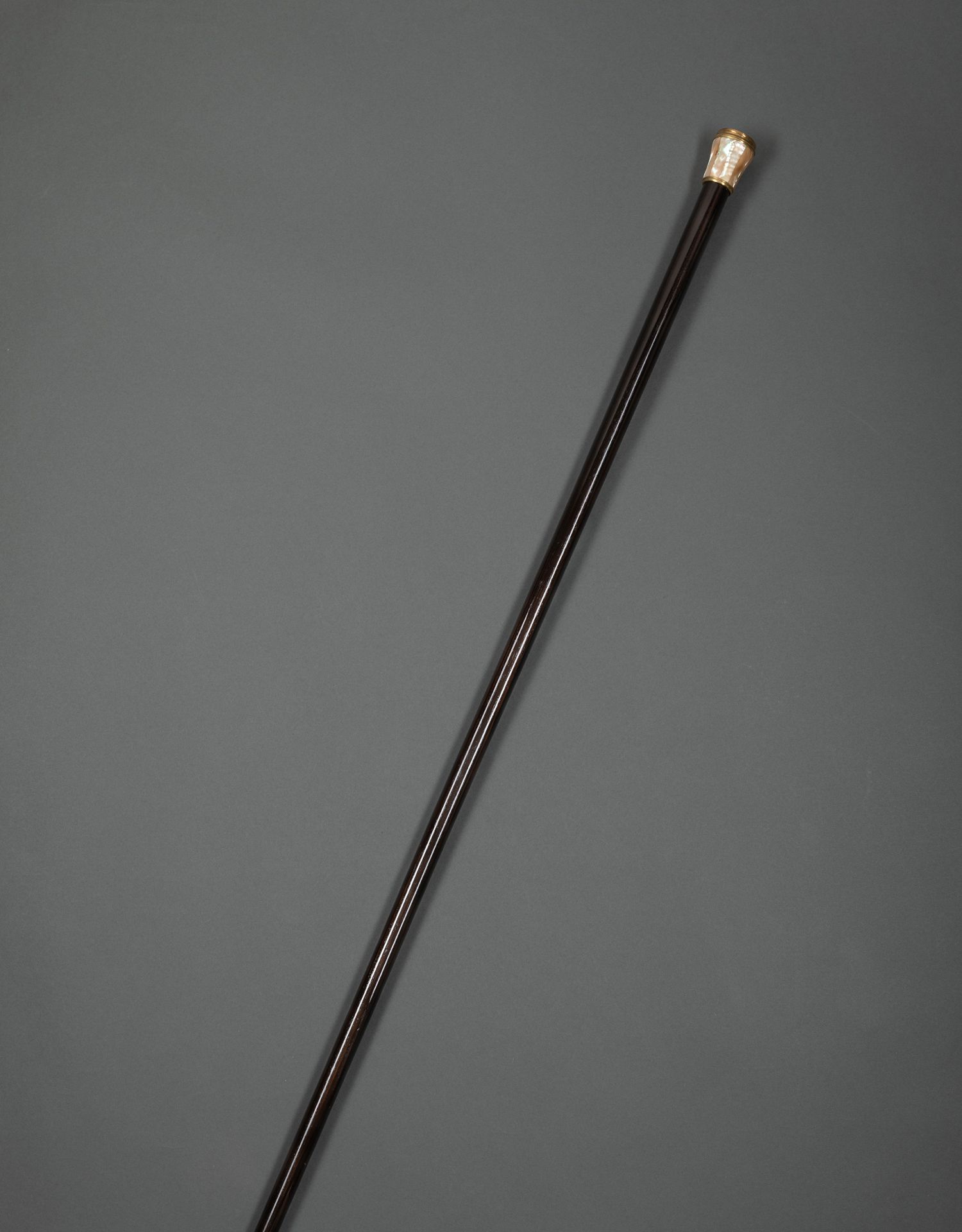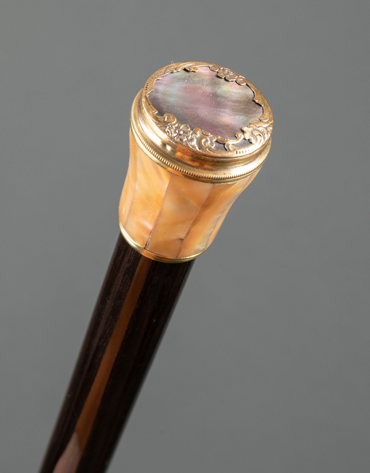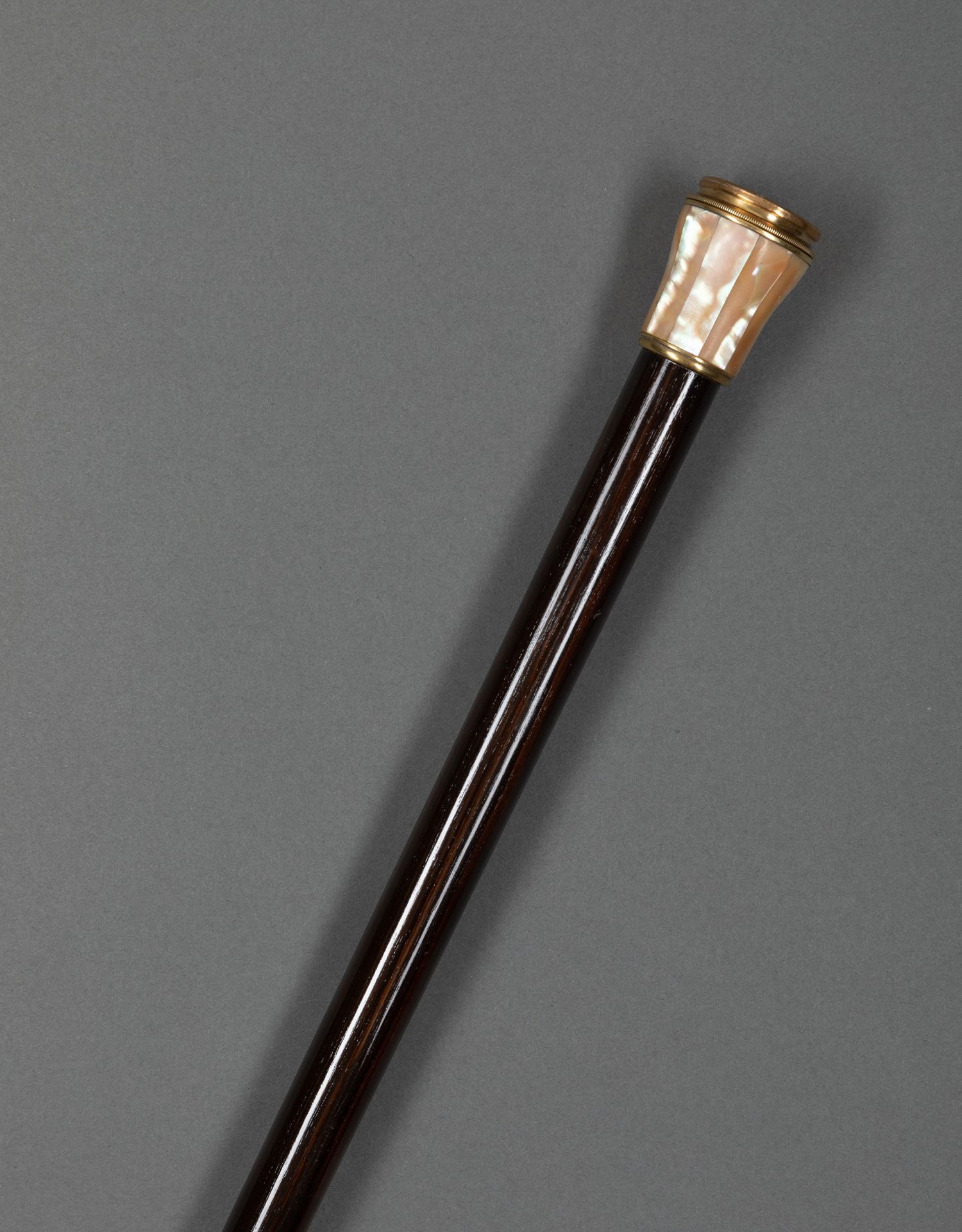 独角鹿西洋古董法国黄金藤蔓浮雕镶嵌母贝杖柄红木杖身古董手杖