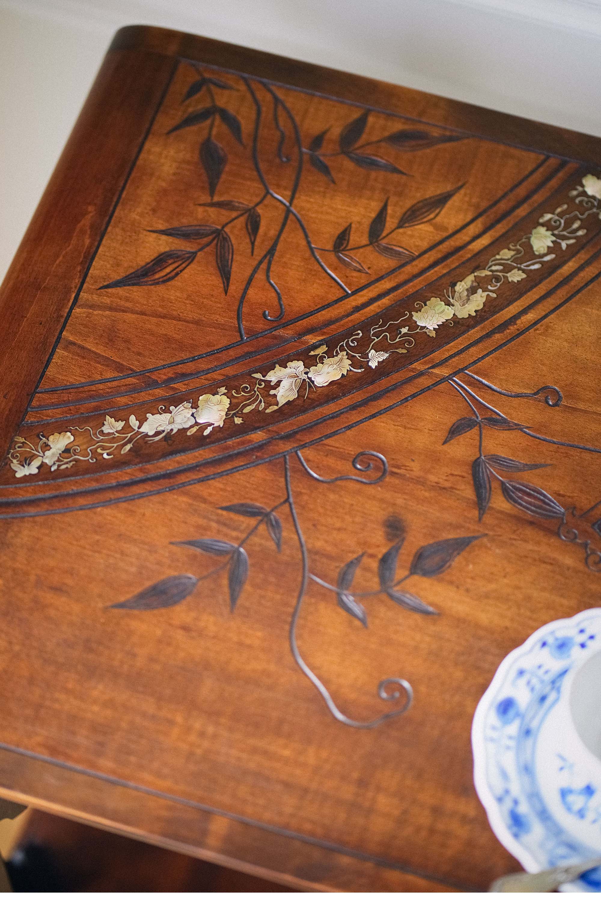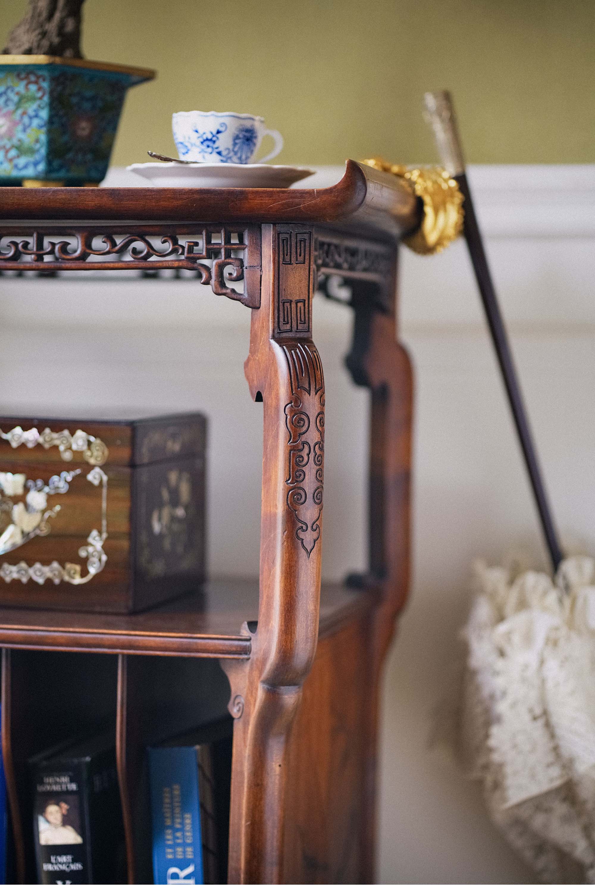 【已售】独角鹿西洋古董 19世纪法国出品VIARDOT东方风格蟠龙造型铜鎏金精雕嵌母贝三层边几/边柜